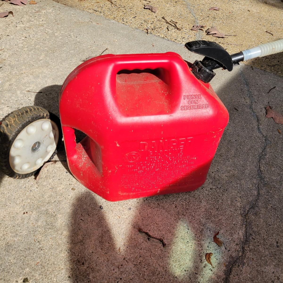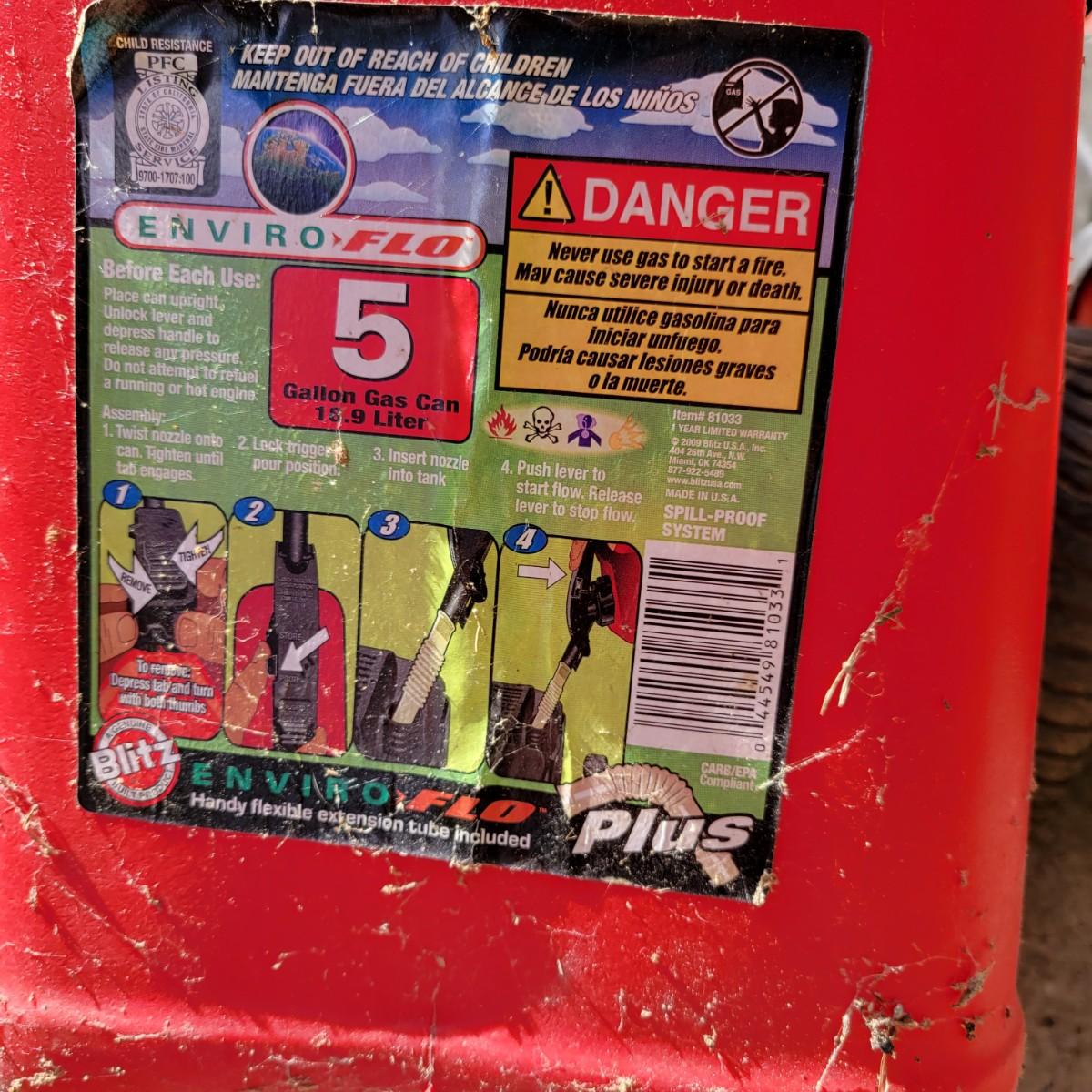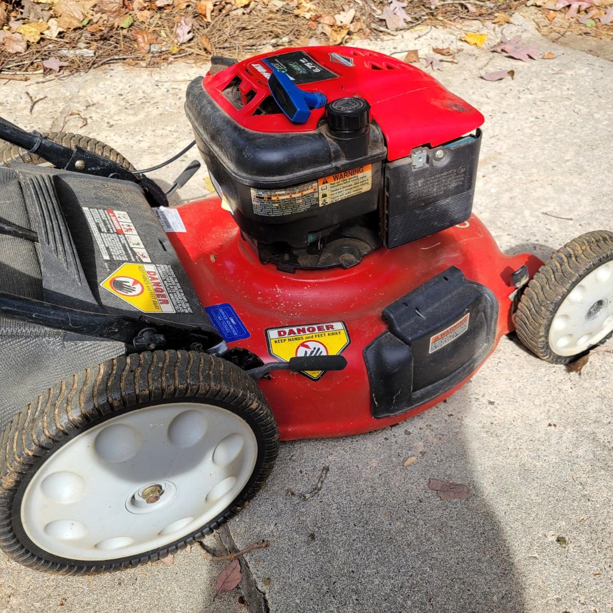 A Troy-Bilt push mower in good condition that turned over easily when tested. This is a 21" mulch, bag and side discharge mower with 6.75 hp Briggs & Stratton engine. This lot also includes a 5gal enviro flo gas can that still has some liquid in it. Mower measures approximately 22.5" x 60" x 40". Local pickup only