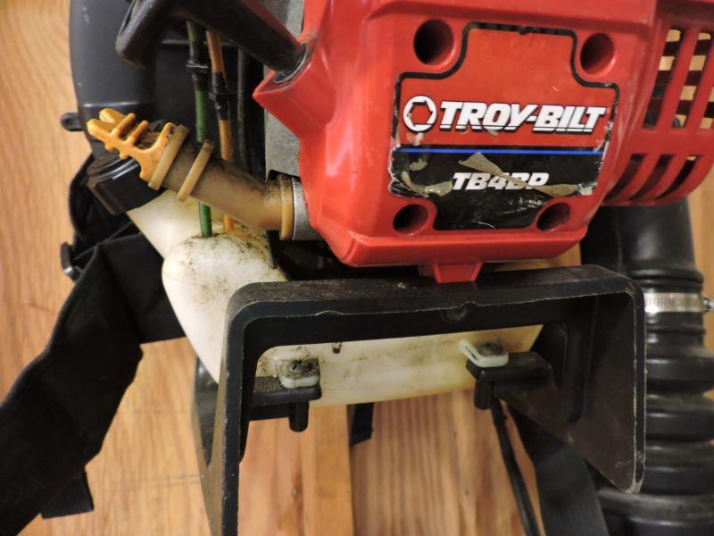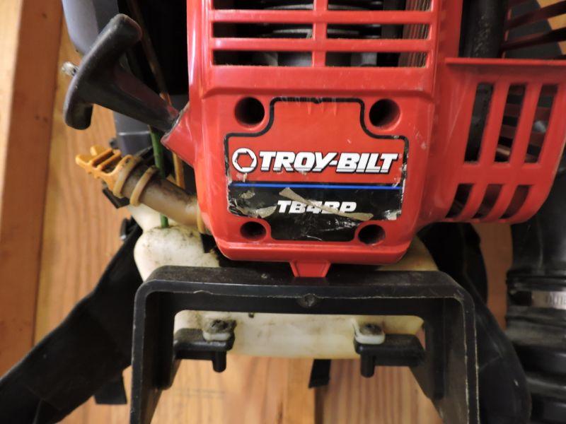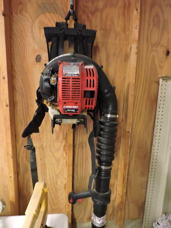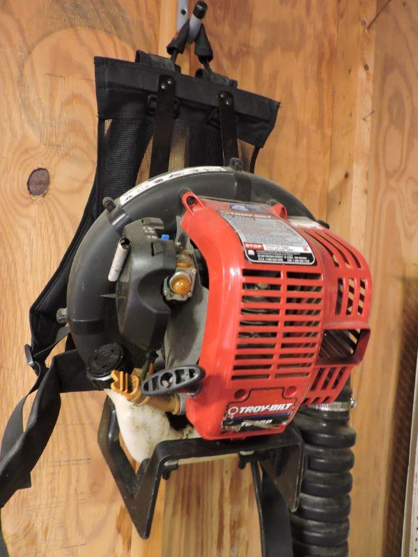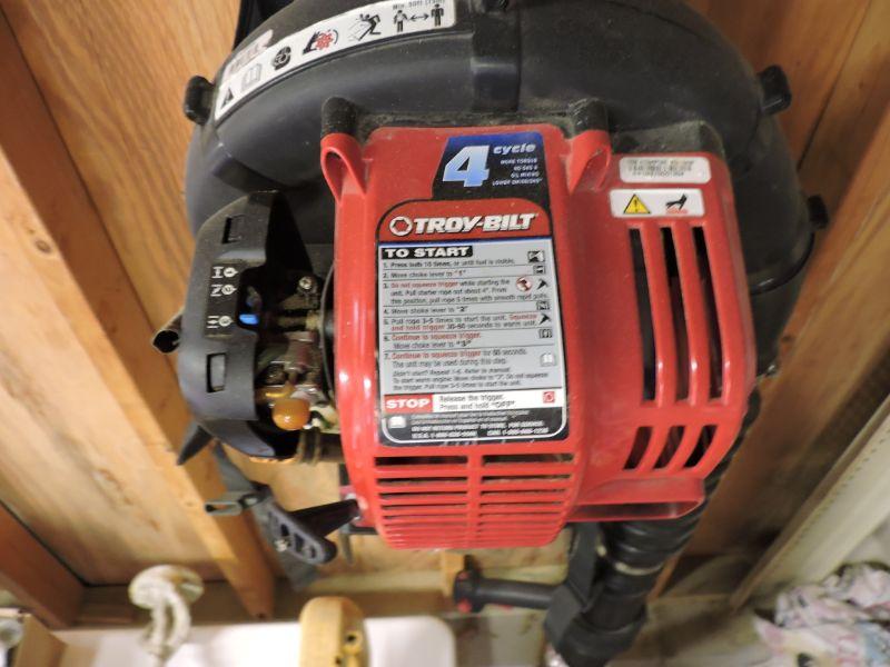 Troy-Bilt TB4BP 32cc 4-Stroke Gas Powered 150 MPH Back Pack Blower. Please read Terms and Conditions before placing a bid. Pick up is Friday, October 25th between 4 and 7, and Saturday, October 26th between 9 and 1. Please bring boxes, tools, and muscle to help move your items. Props included in photos are not included in listing. All measurements are approximate.