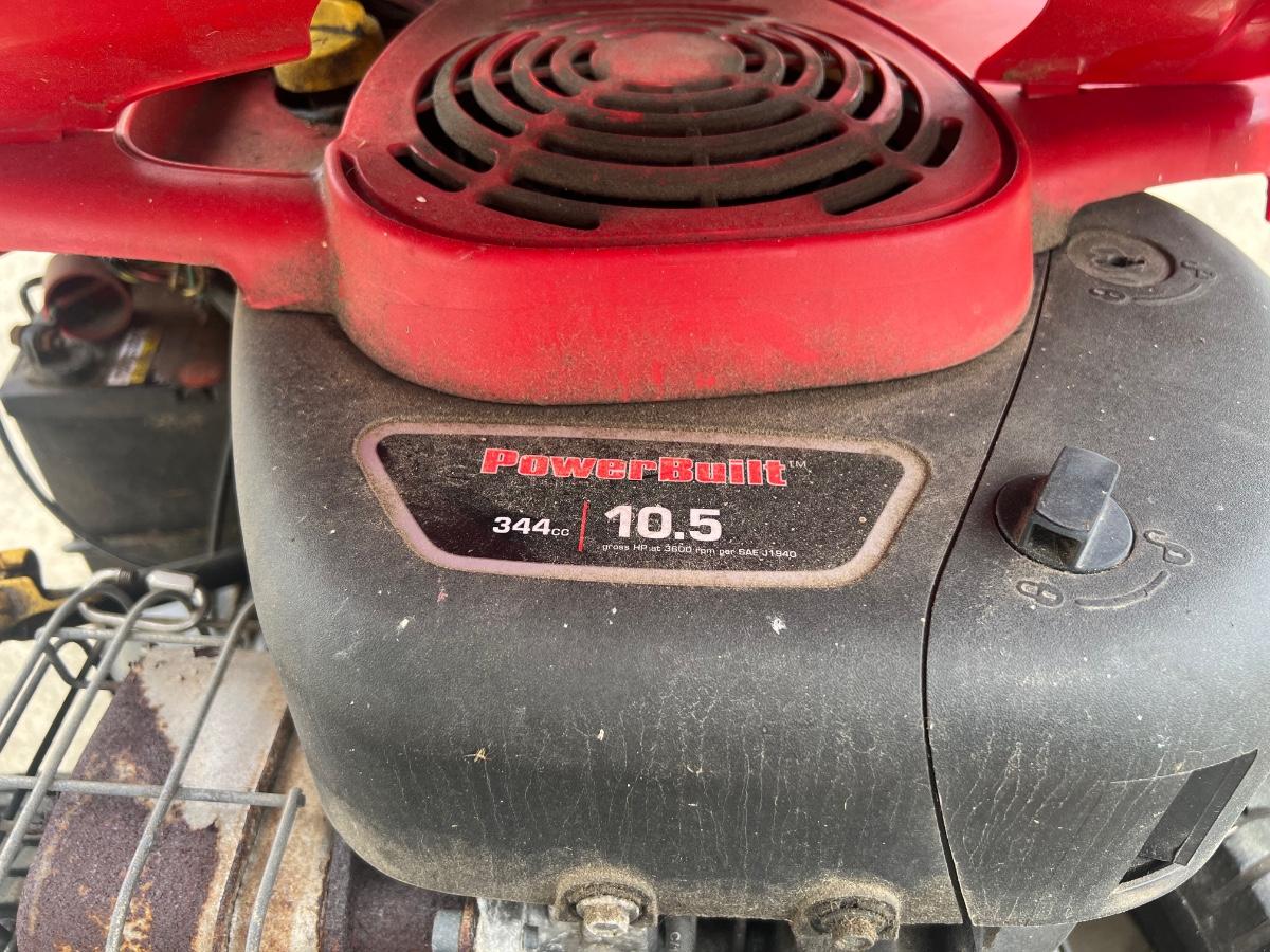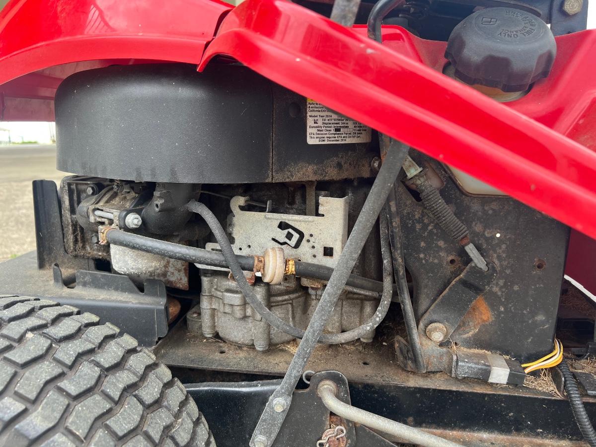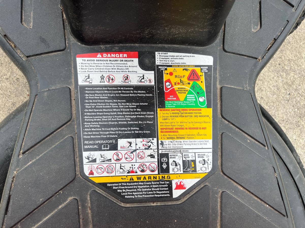Motor starts and runs good. Blades engage. Battery needed to be jumped, may need charging or new battery. All tires hold air. AS-IS.