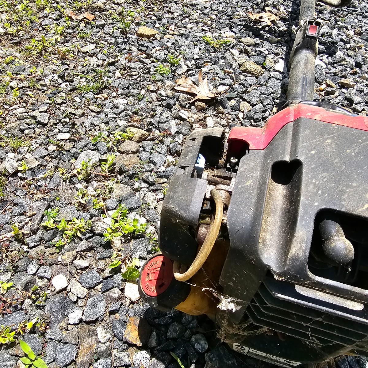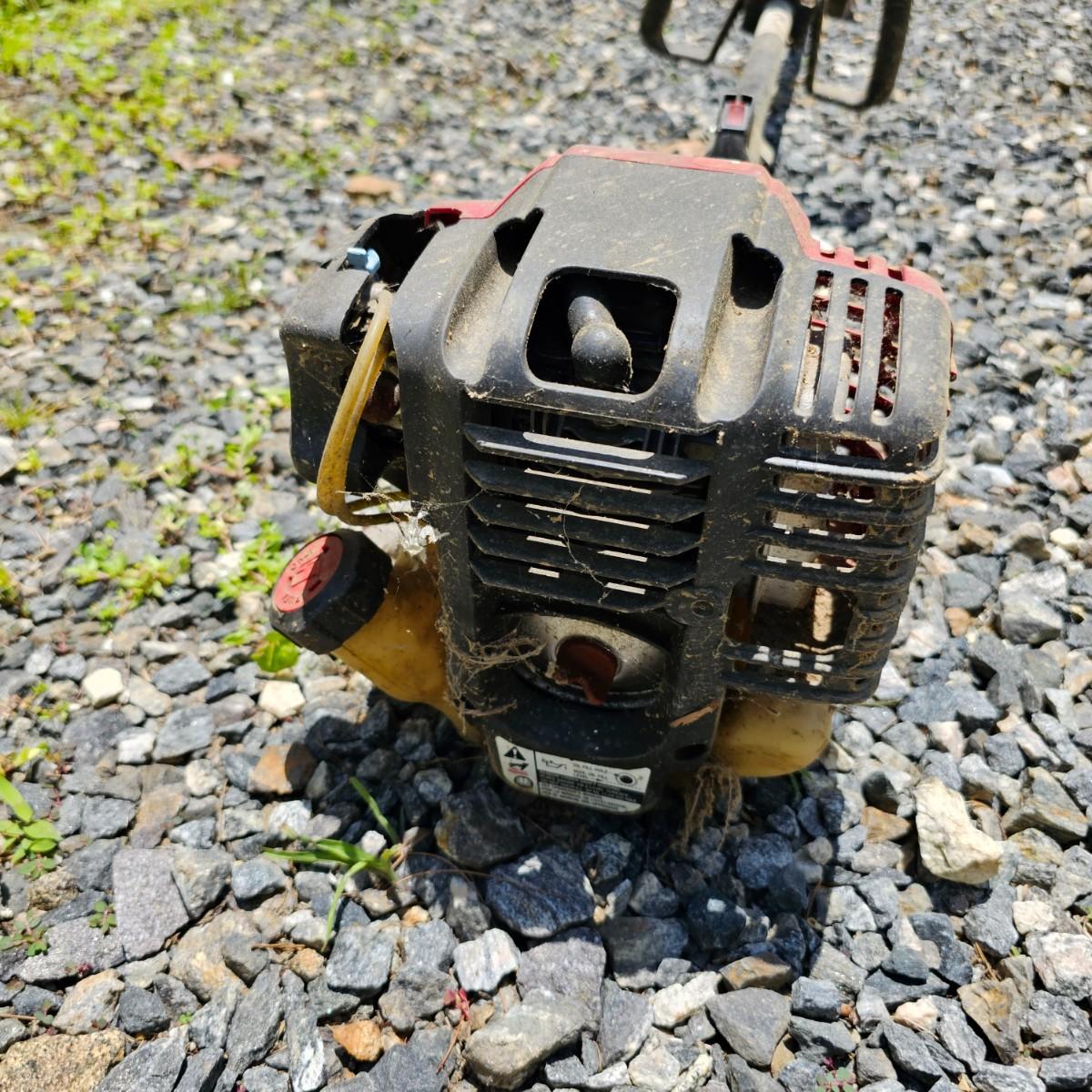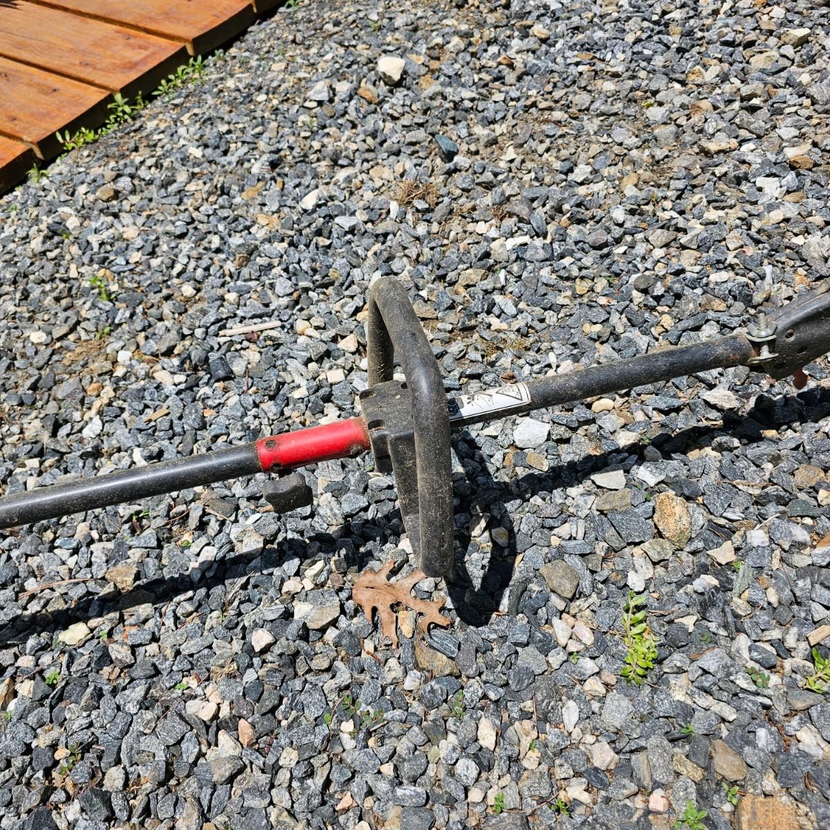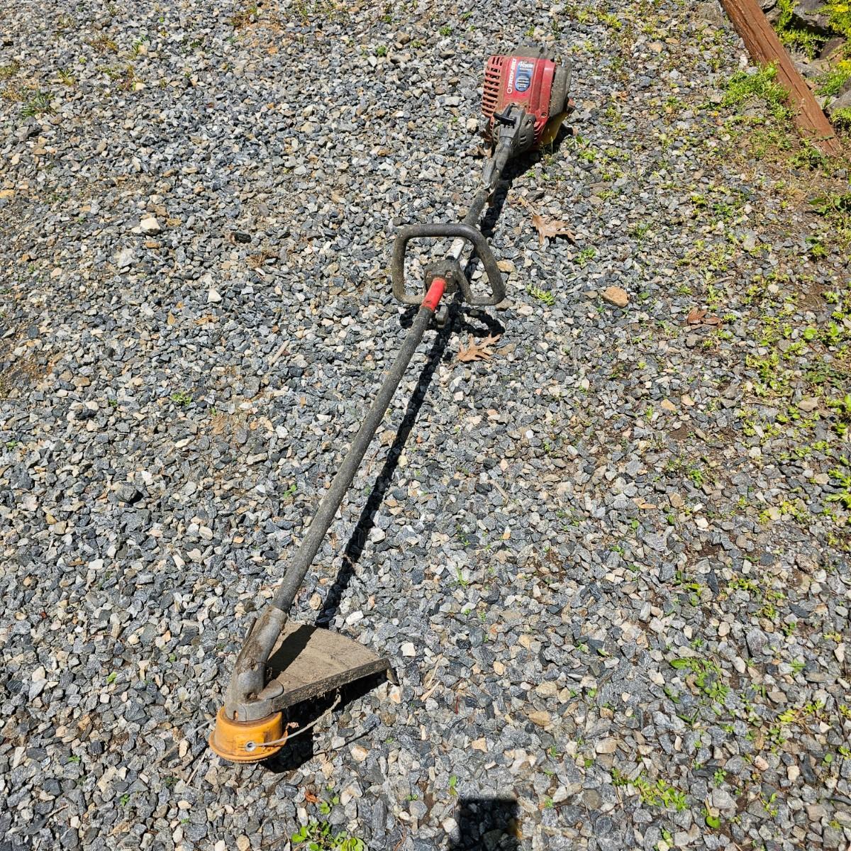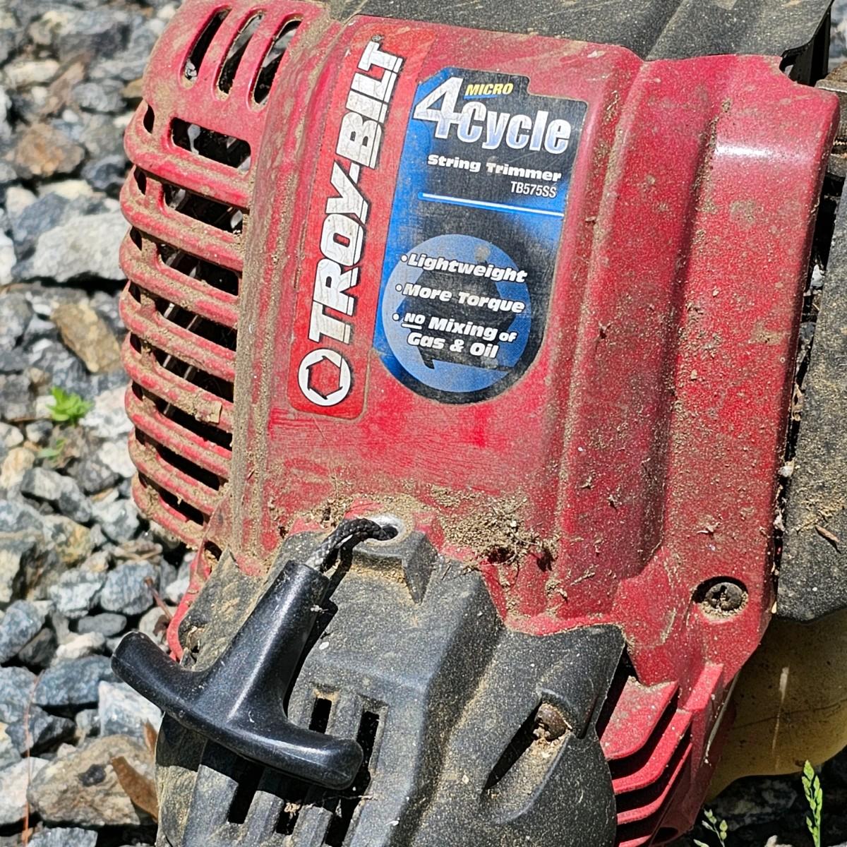 A four-cycle engine on this Troy-Bilt trimmer. Straight shaft, 16" cut. Trimmer measures 71" long. Motor pulls smooth, but unable to test fully. 30cc engine. See photos for details. Local pickup only.