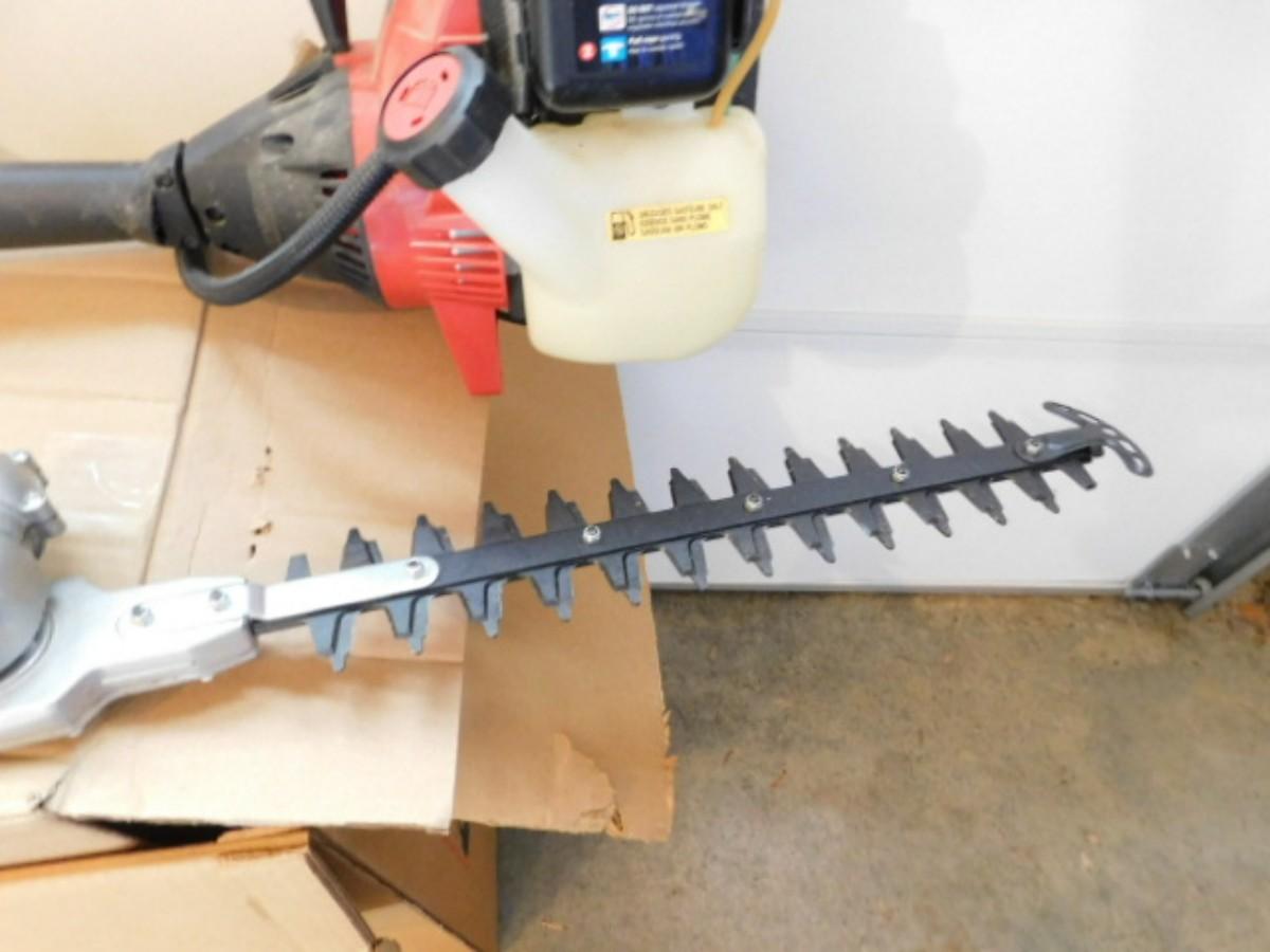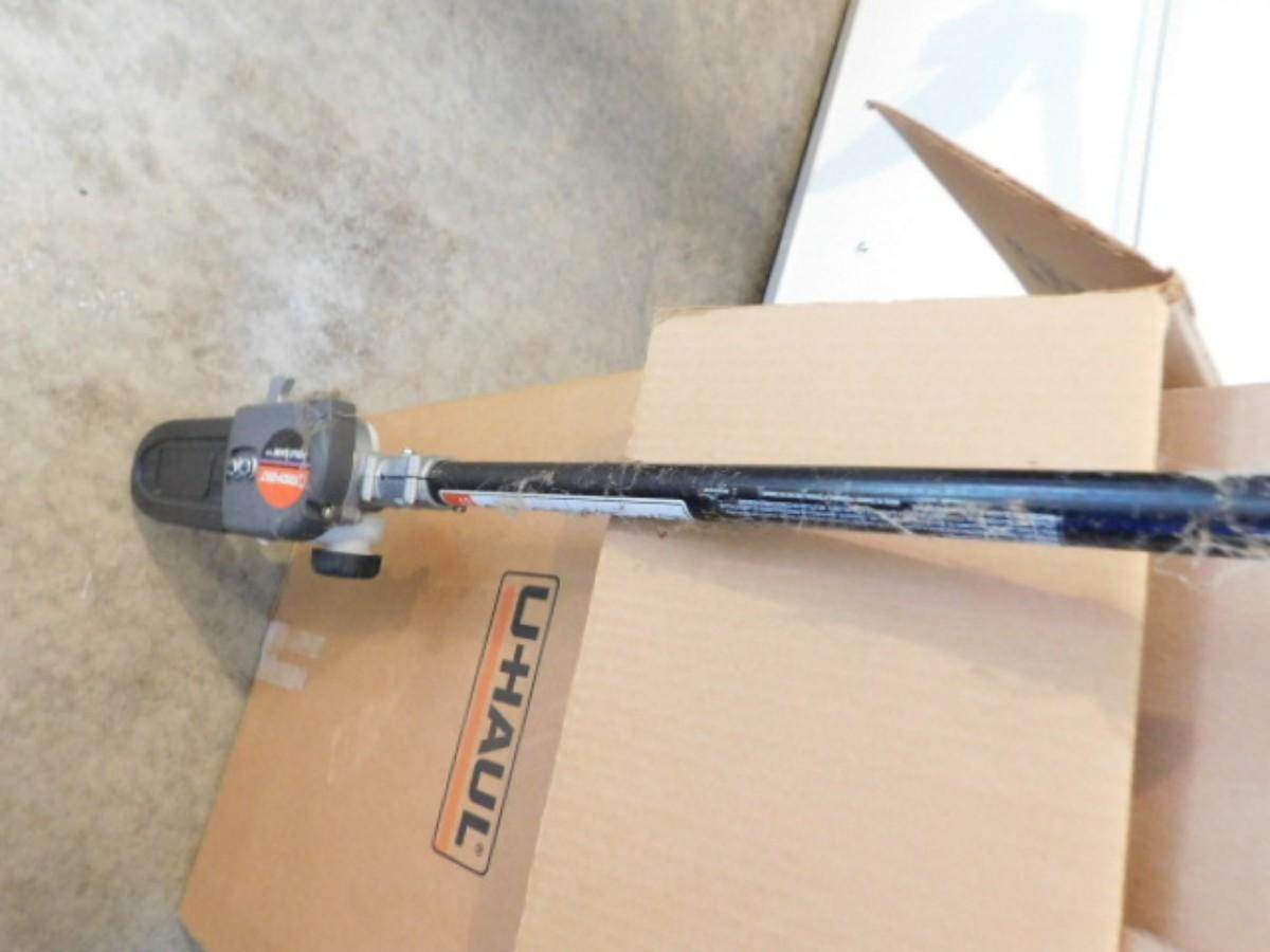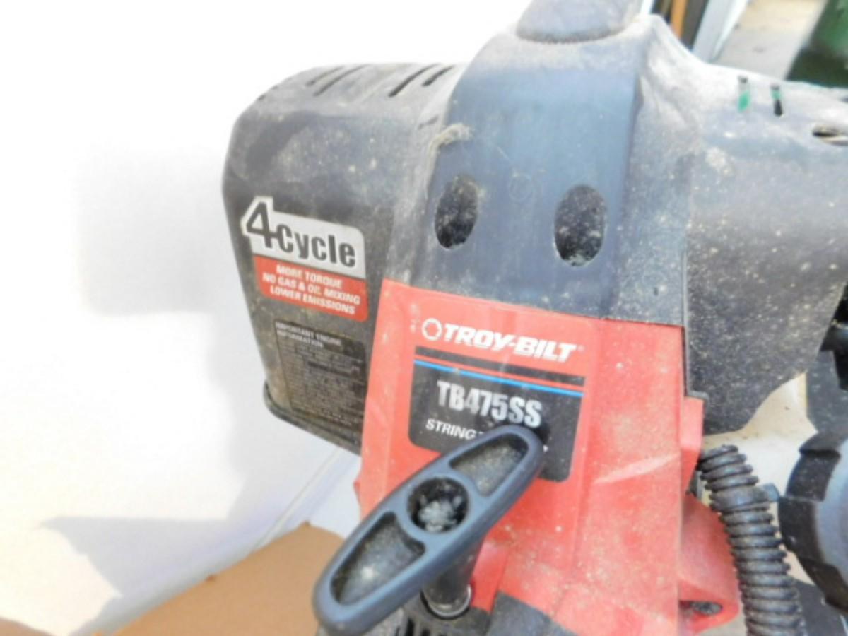 Troy-Built TB475SS Gas Powered Weed Eater with Hedge Trimmer and Chain Saw Attachments. Pulls easily. May need some tuning