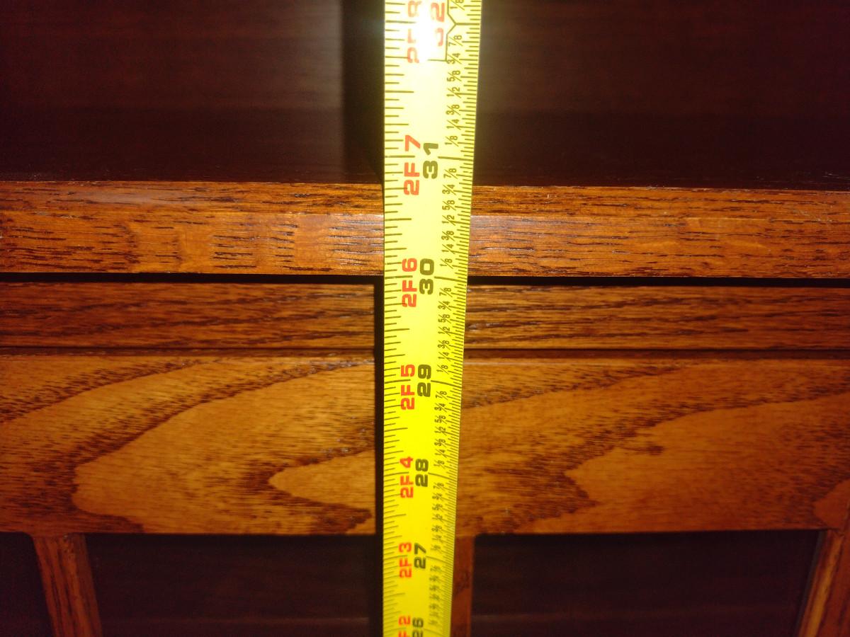 Troyer's Hilltop Media Stand with Storage- Approx 60" Long x 18 1/2" x 31" Tall (Center Unit) The media stand matches the other two tower storage cabinets. Purchasing all three pieces make a large wall unit media center and storage cabinet item. We have the back, top connecting piece, and middle shelves to complete the unit if you end up getting all three pieces on this sale.