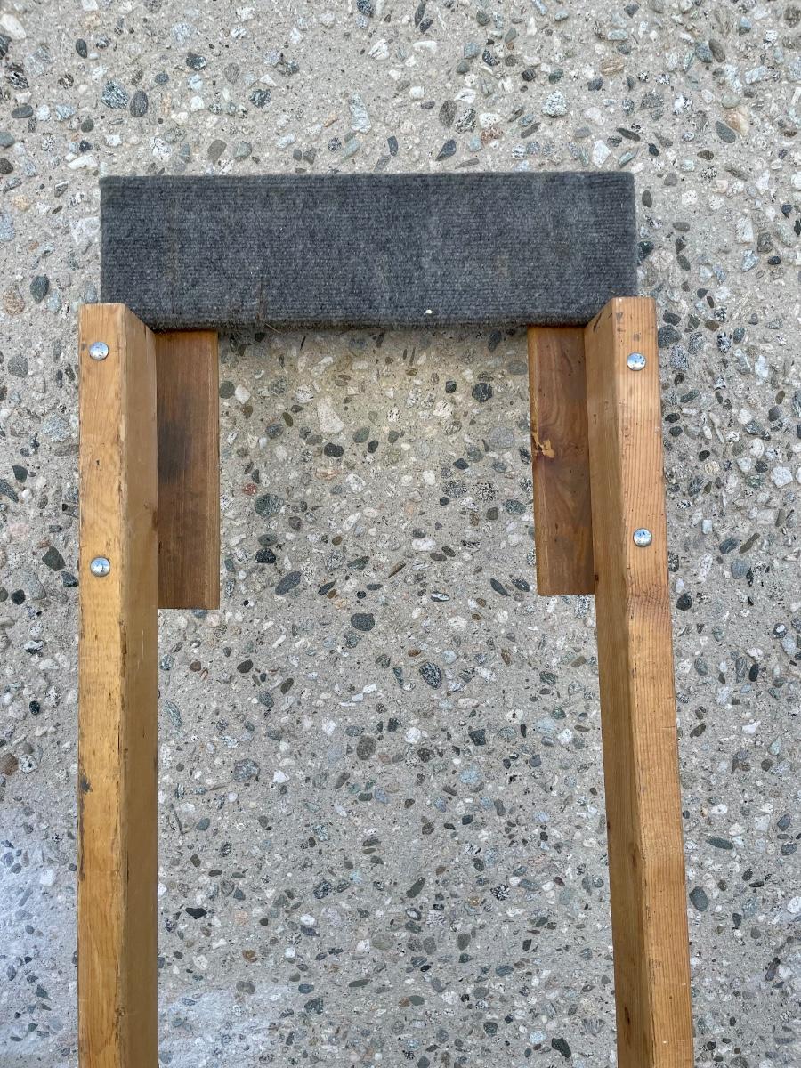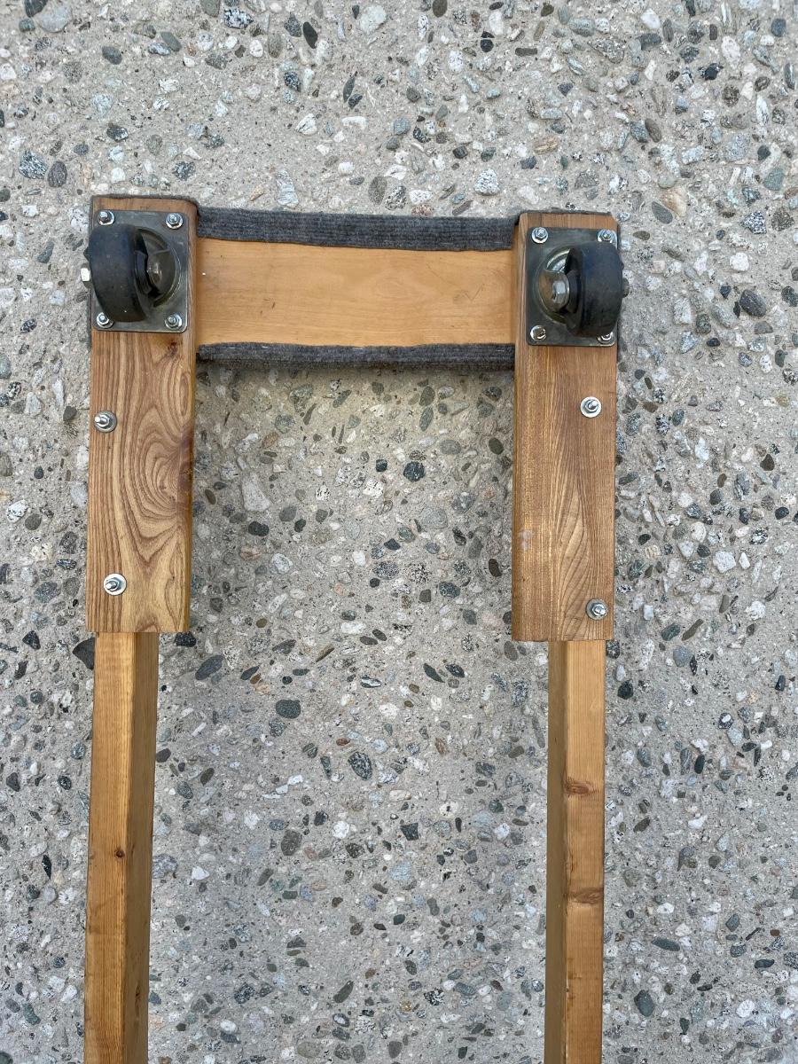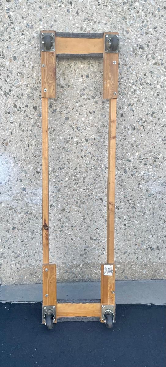 Custom-made extra long furniture dolly. Standard 30" x 18" 4-wheel dolly cut in half and extend to 72" long using bolted-on 2'x4" boards. Great for moving larger items like dressers or cabinets.