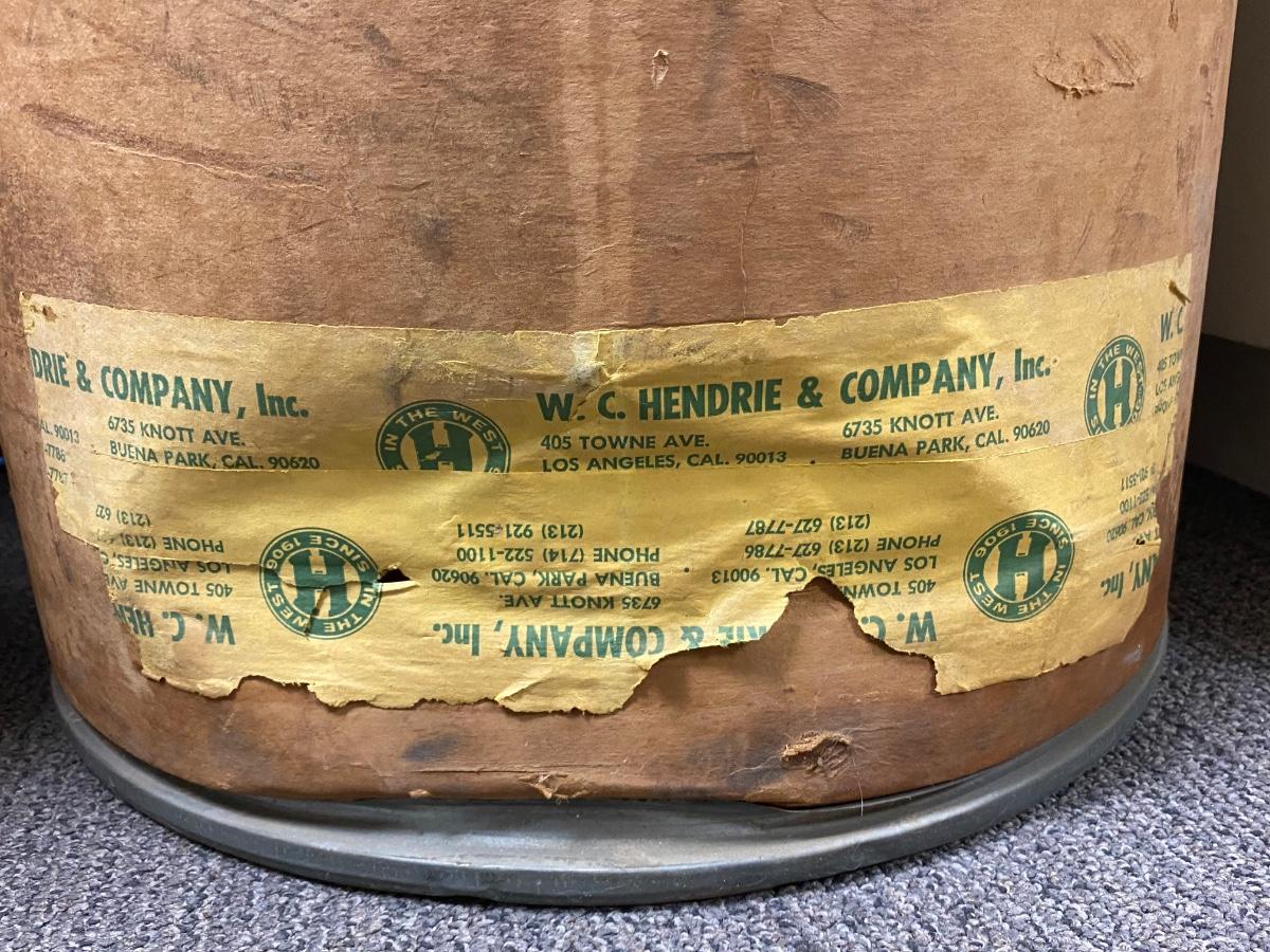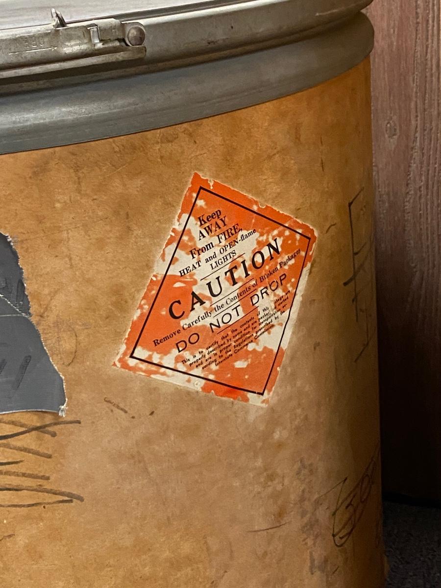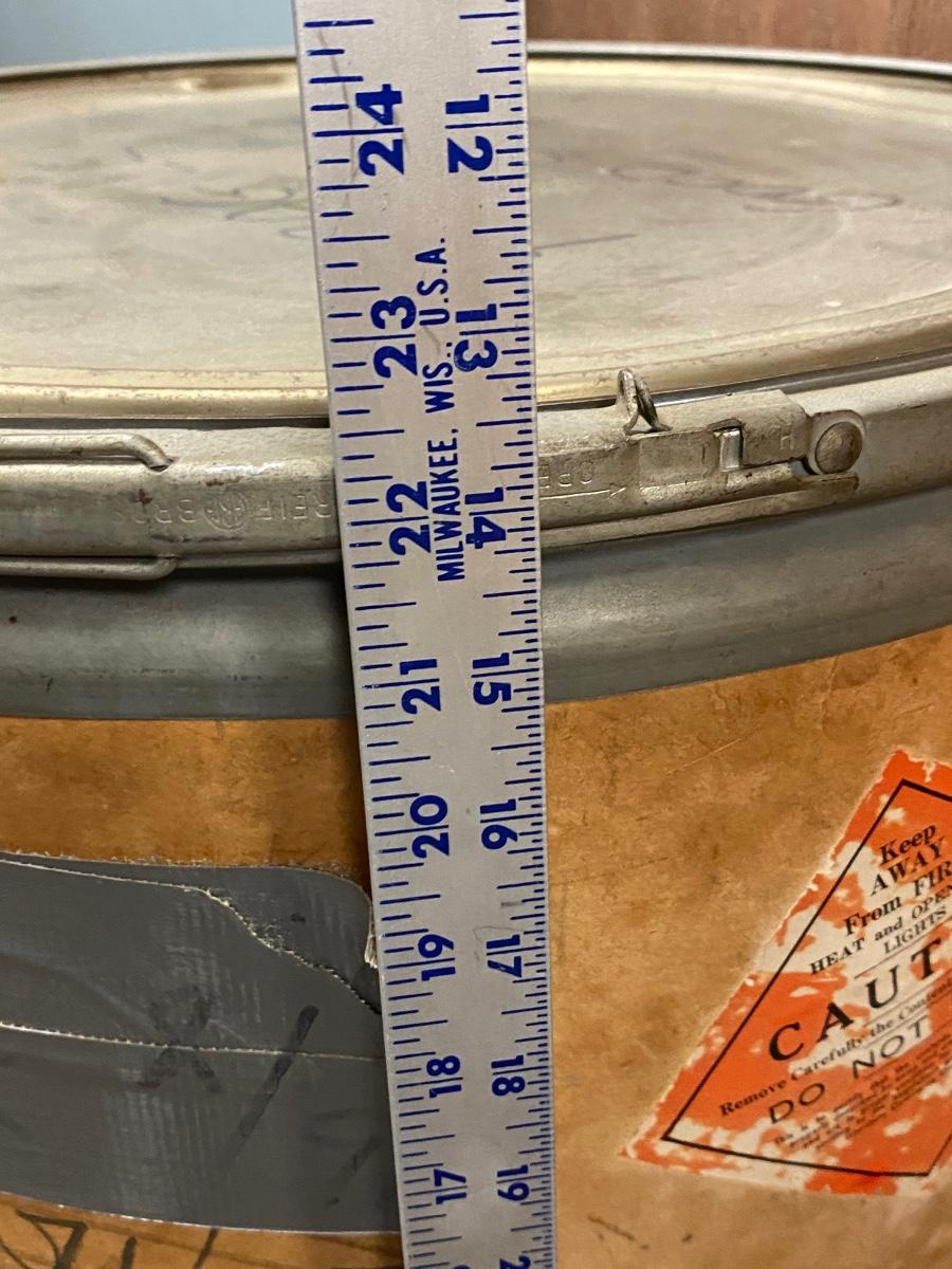 Vintage Storage Barrels Drums. In fair condition. Not sure how to open so don't know what the inside looks like. Original company info still on them but hard to read. Have been written on by past owners, someone used them for packing china dishes at one time.