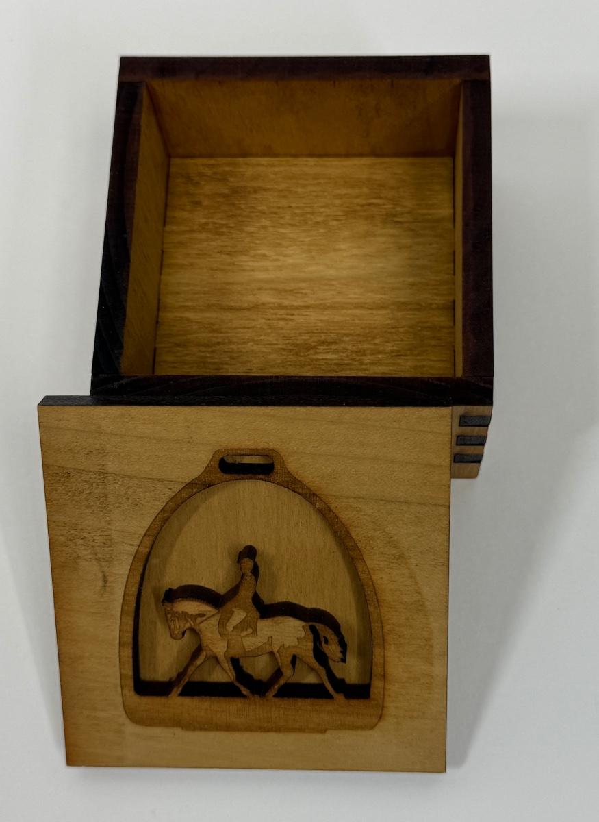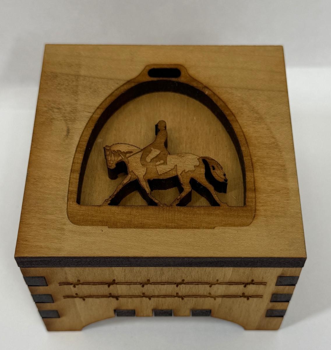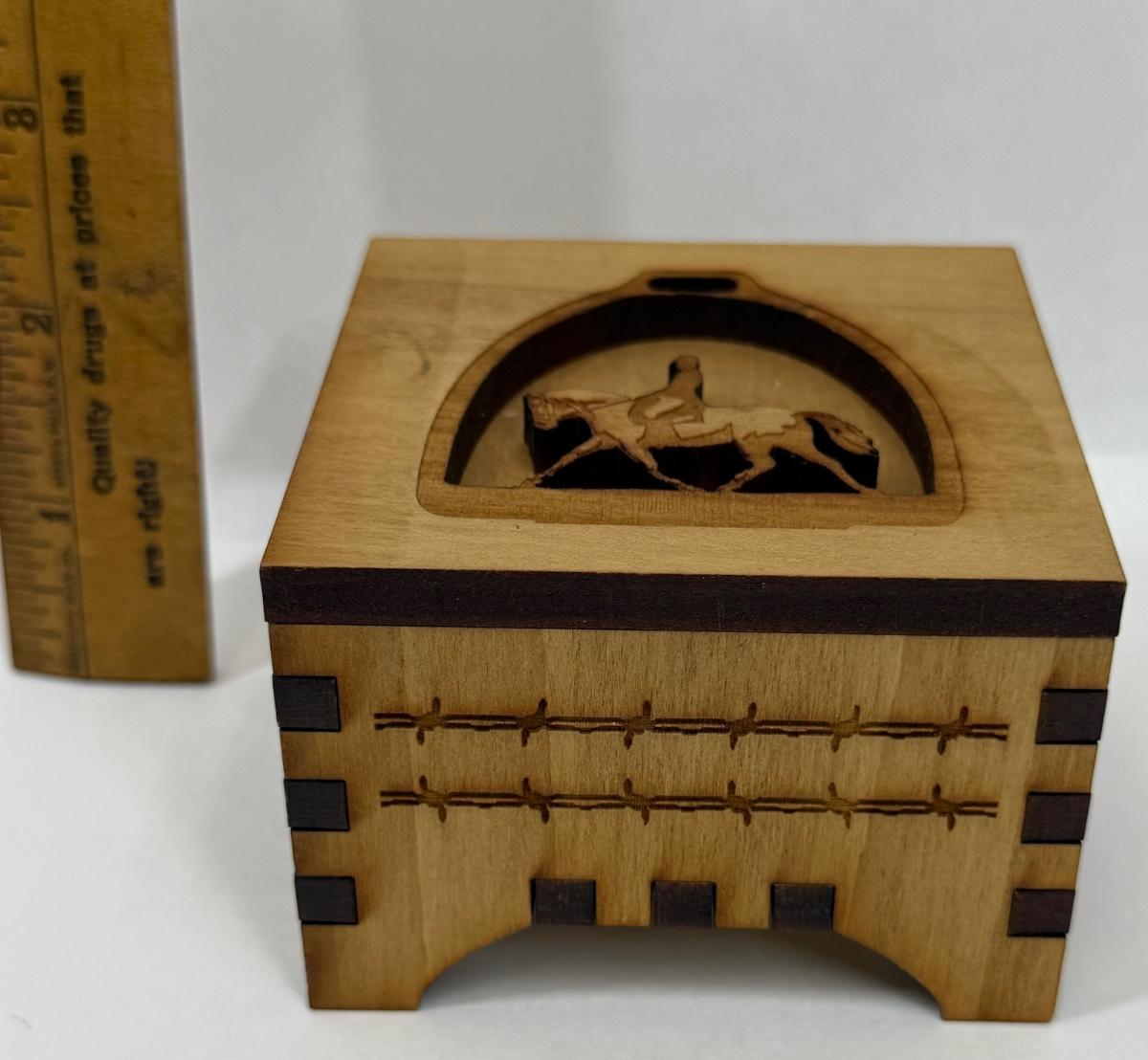 Decorative Carved Design Cut-out Wooden Box Horse & Rider Image