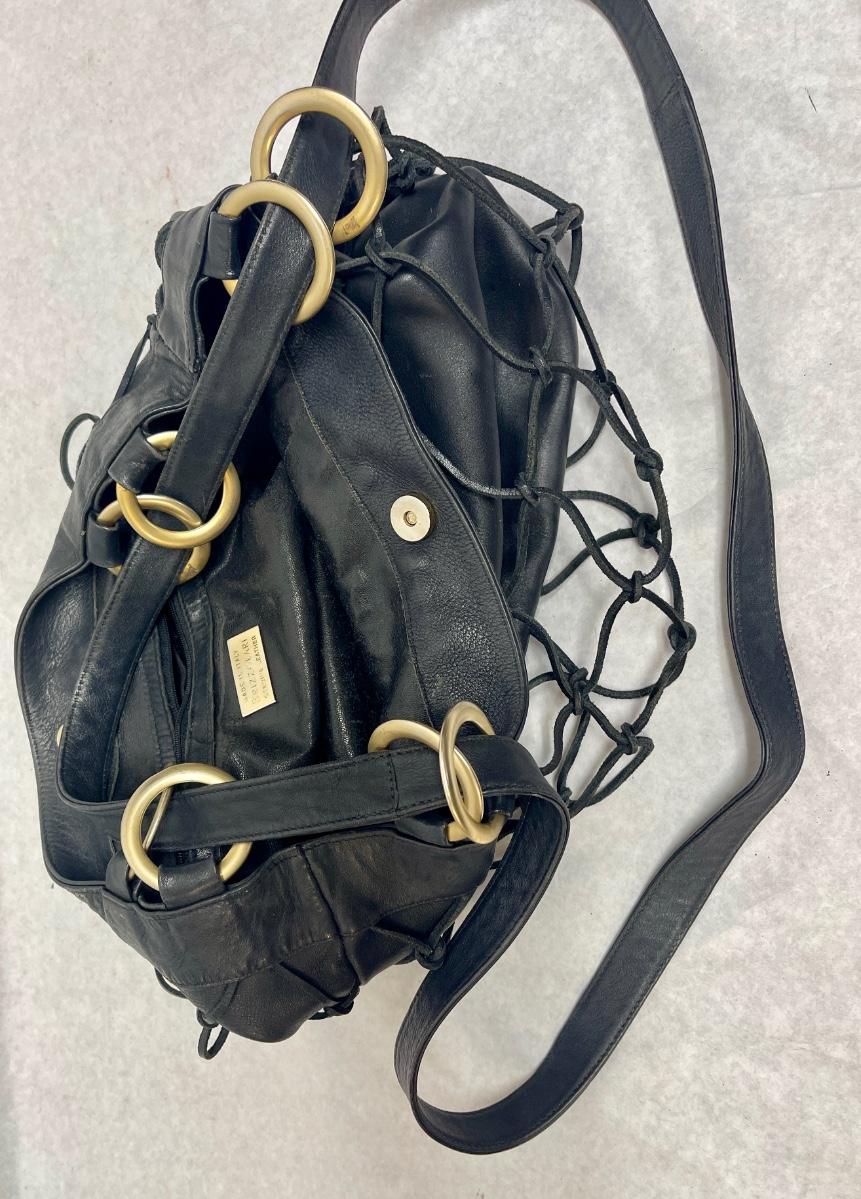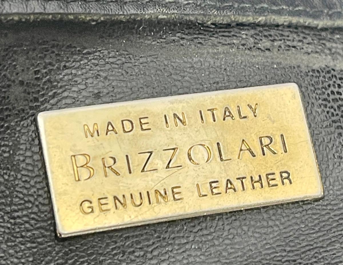 Oversized Black Brizzolari Genuine Leather Purse with Shoulder Strap