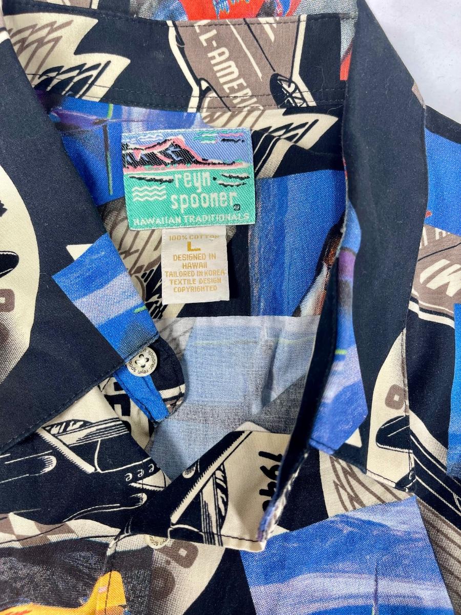 Reyn Spooner Hawaiian Vintage-style Aircraft Motif Sport Shirt