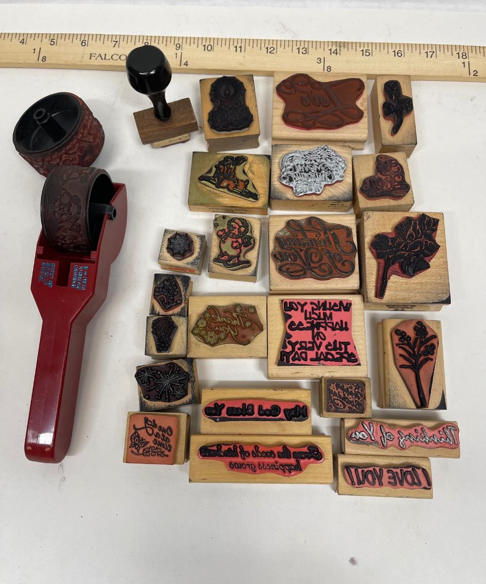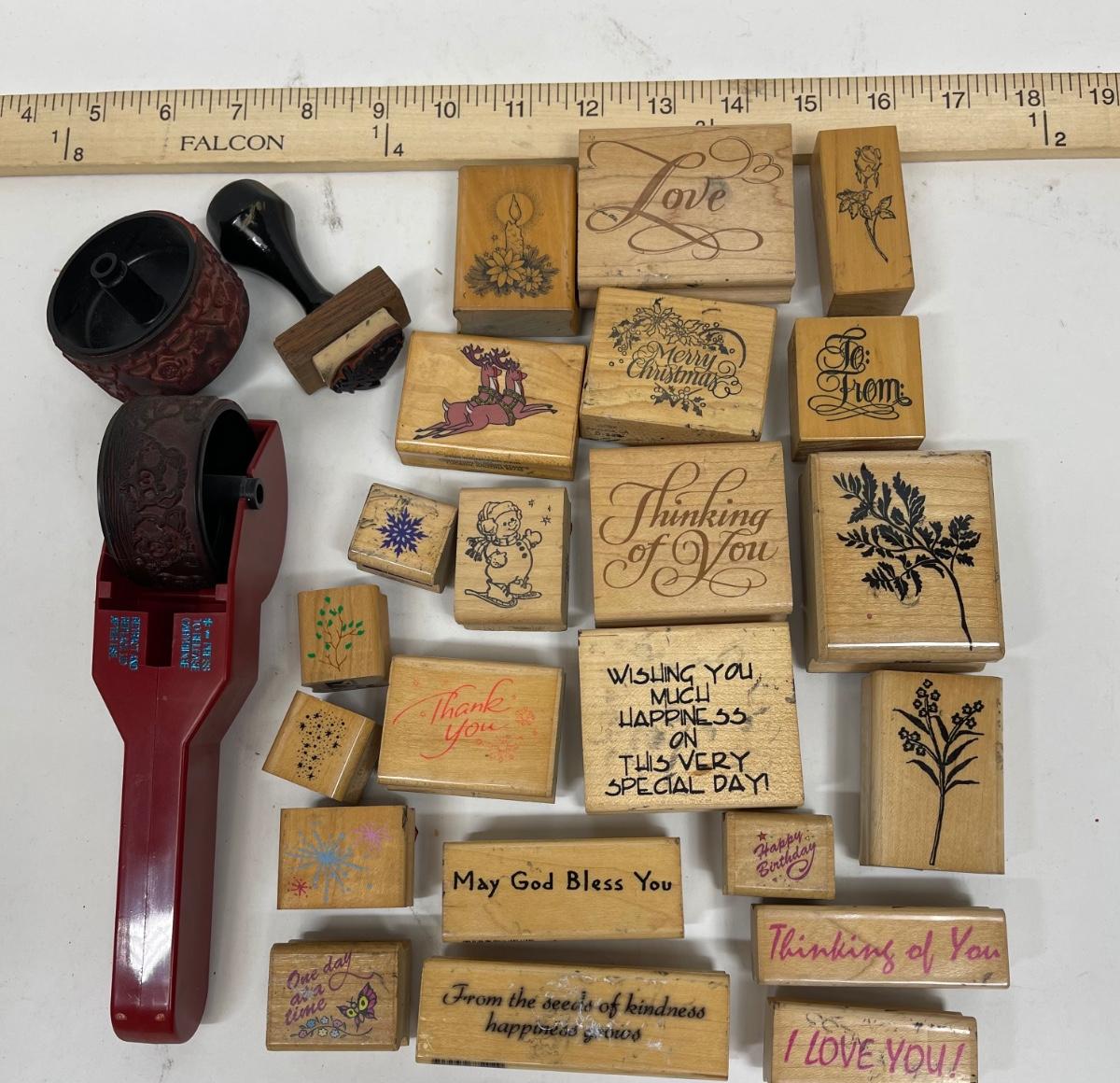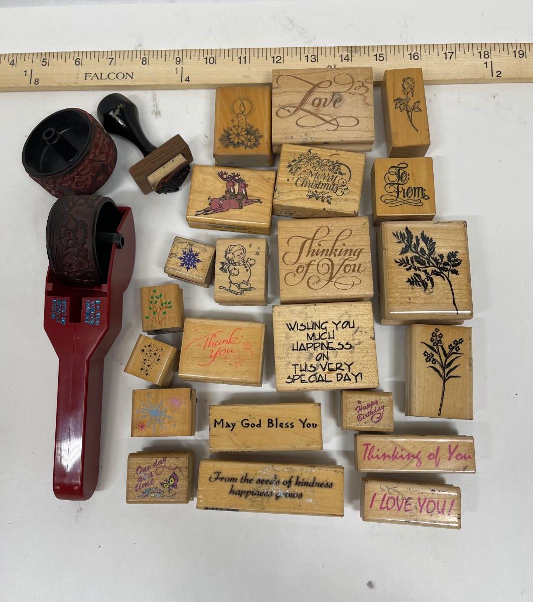 Wooden Rubber Stamp Lot - sayings, greetings, plants, Christmas, etc
