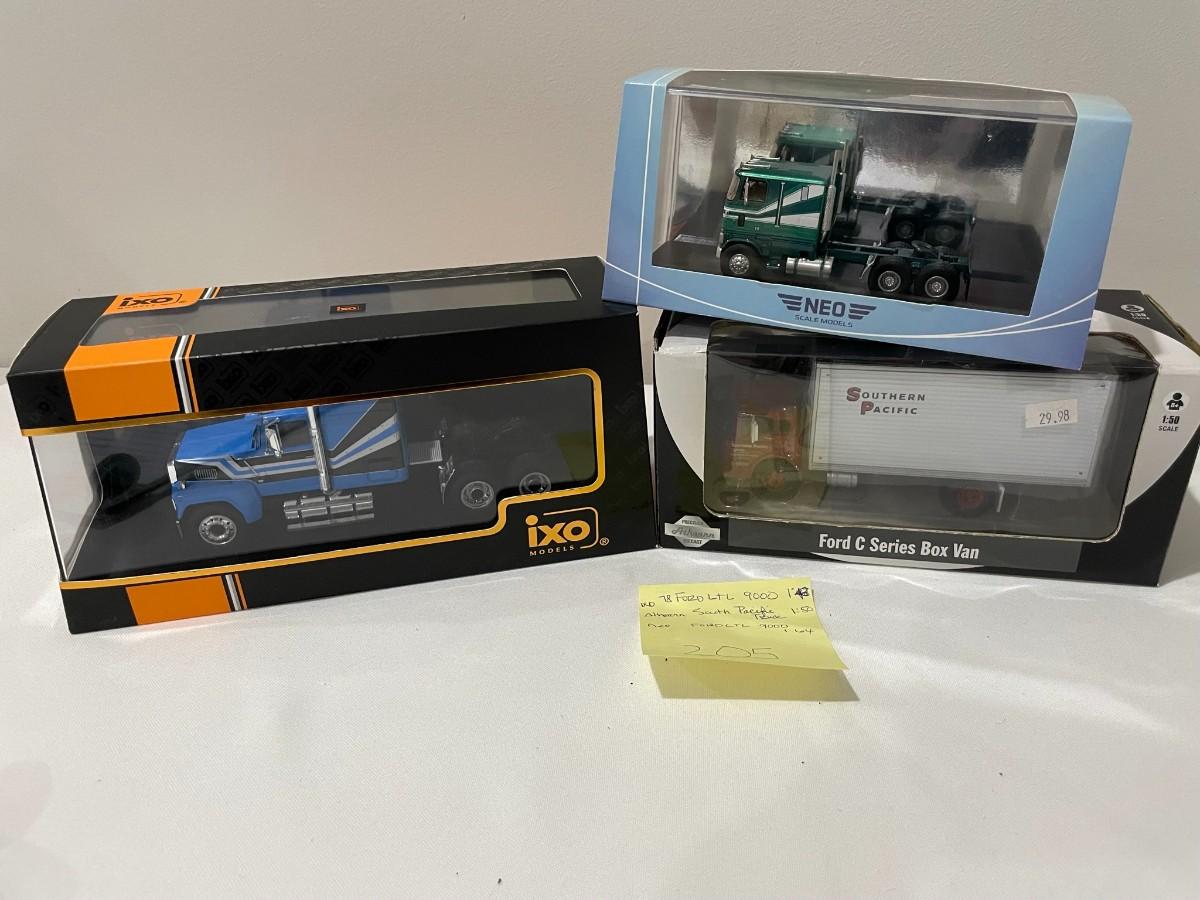New in Box - 78 Ford LTL 9000 1:43 Scale, South Pacific Box Truck 1:50 Scale, Ford CTL 9000 1:64 Scale