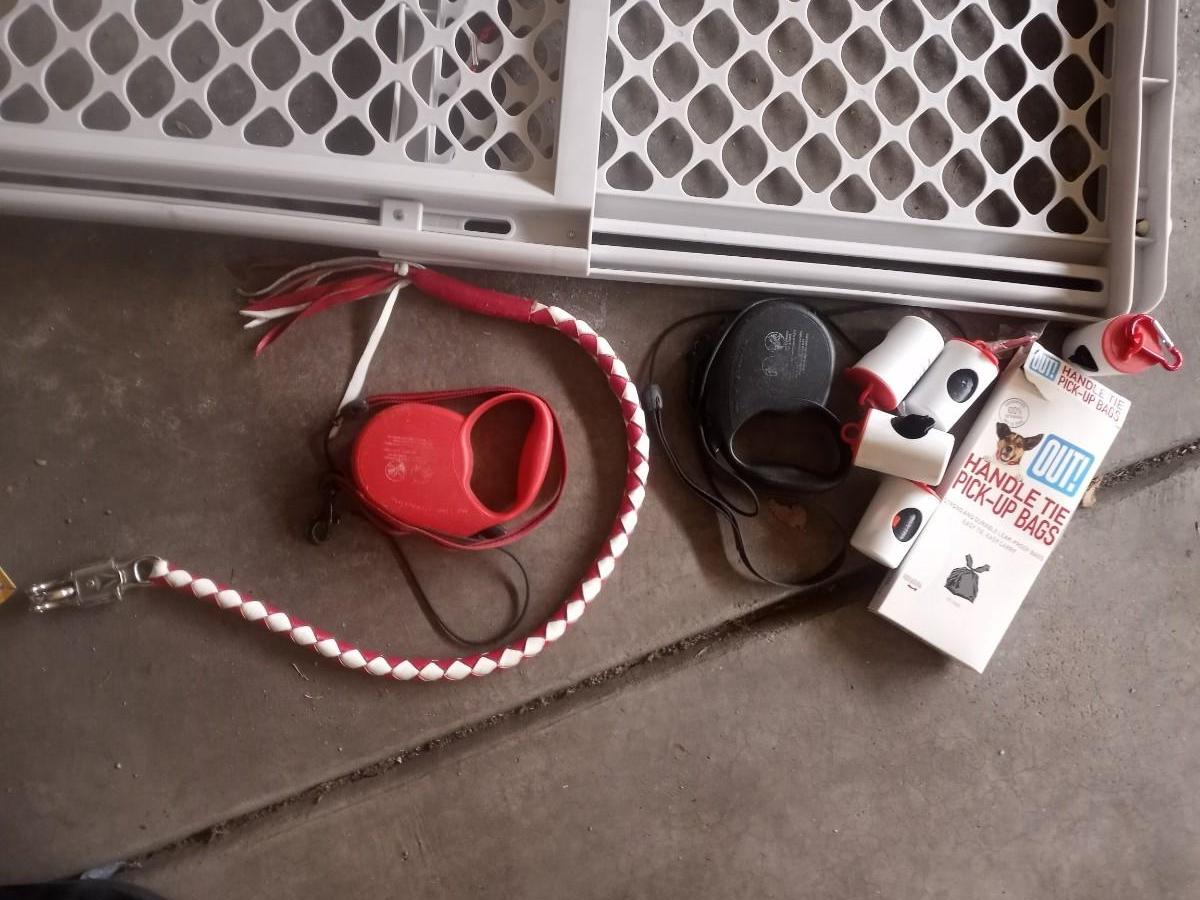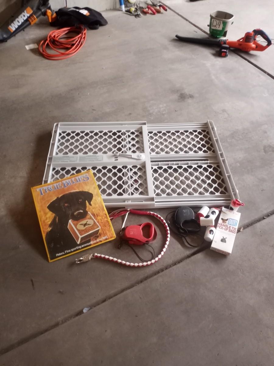 DOG TIN SIGN 13X16-DOG/BABY GATE-DOG LEASHES AND BAGS