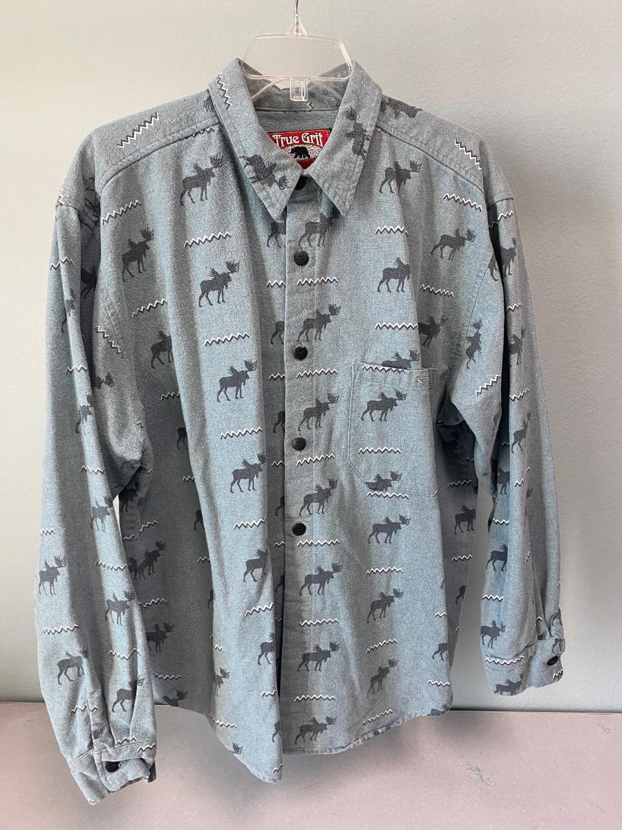 True Grit Moose Pattern Flannel Long Sleeve Shirt Medium. In good condition.