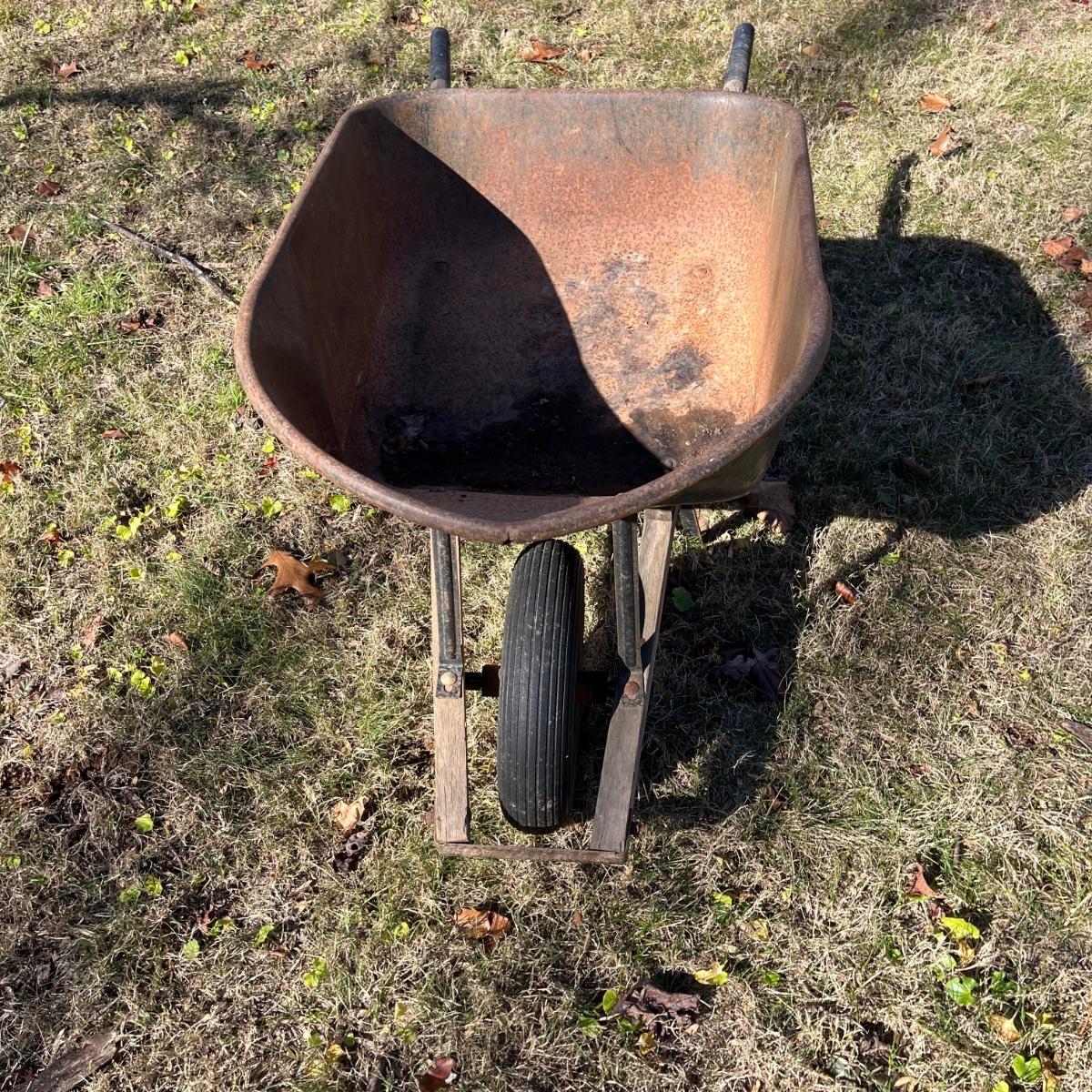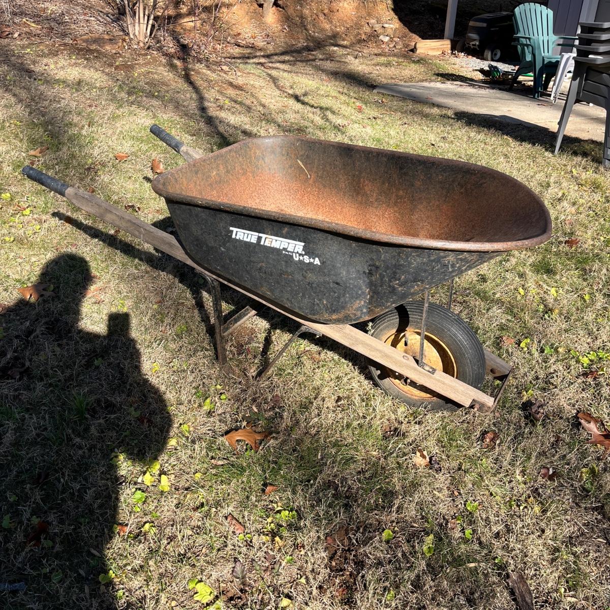 Lot includes a True Temper 6 cubic foot metal wheelbarrow. Please see photos for condition.