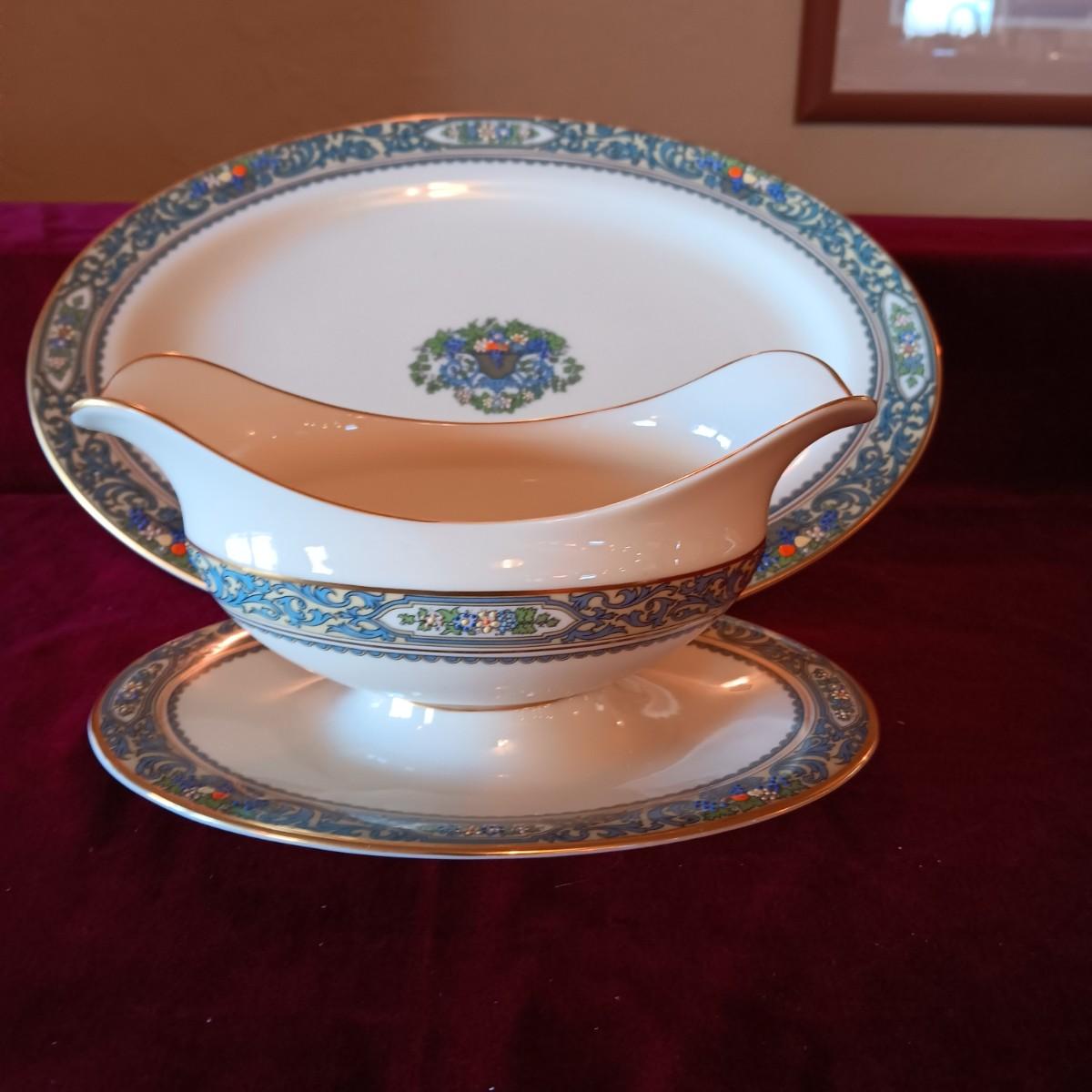 TRULY STUNNING LENOX PRESIDENTIAL COLLECTION "AUTUMN" PLATTER AND GRAVY BOAT