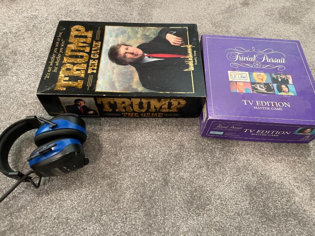 Trump and Trivial Pursuit games with headphones