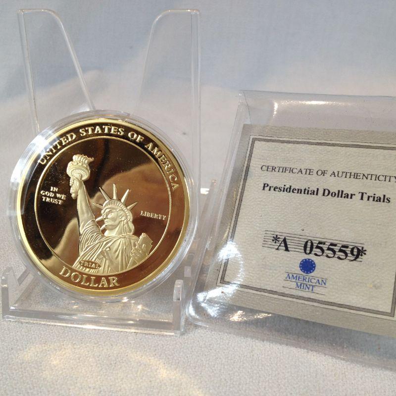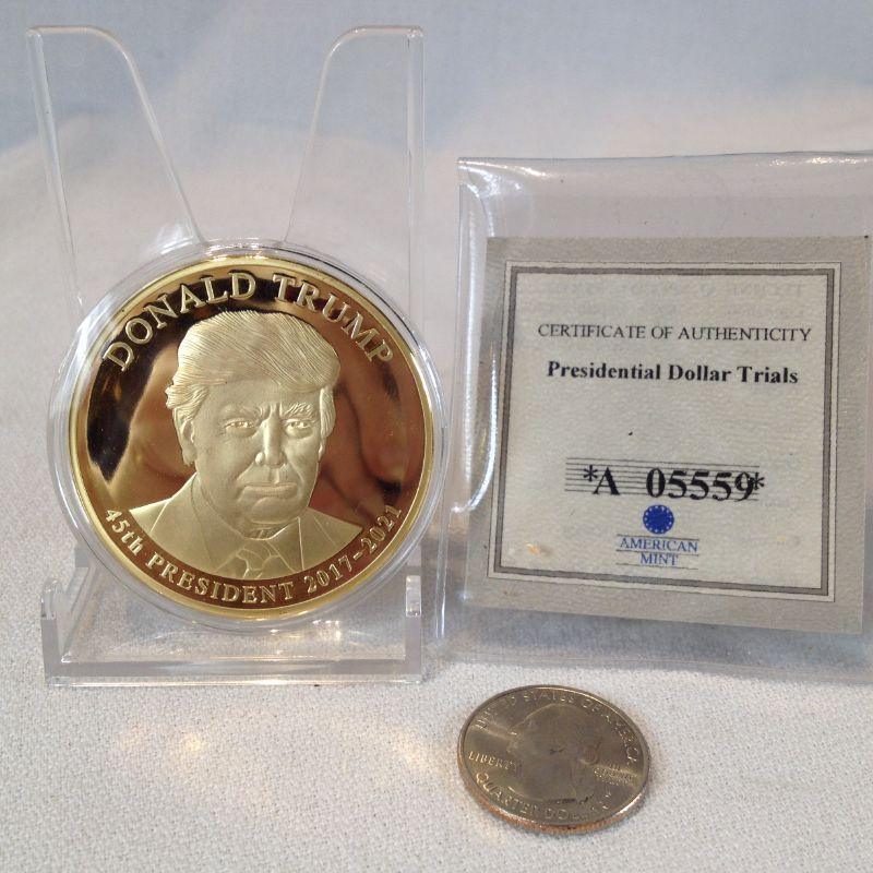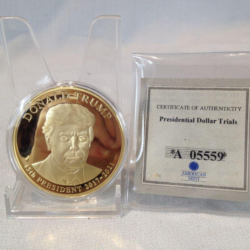 This lot is for an Uncirculated Trump Commerative Coin. The coin is in a plastic coin case and was inside a plastic envelope with the Certificate of Authenticity. Might become quite a collectible.