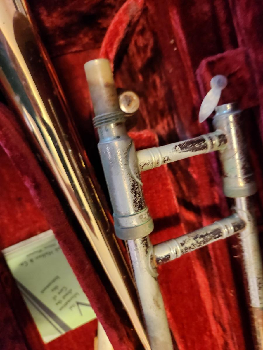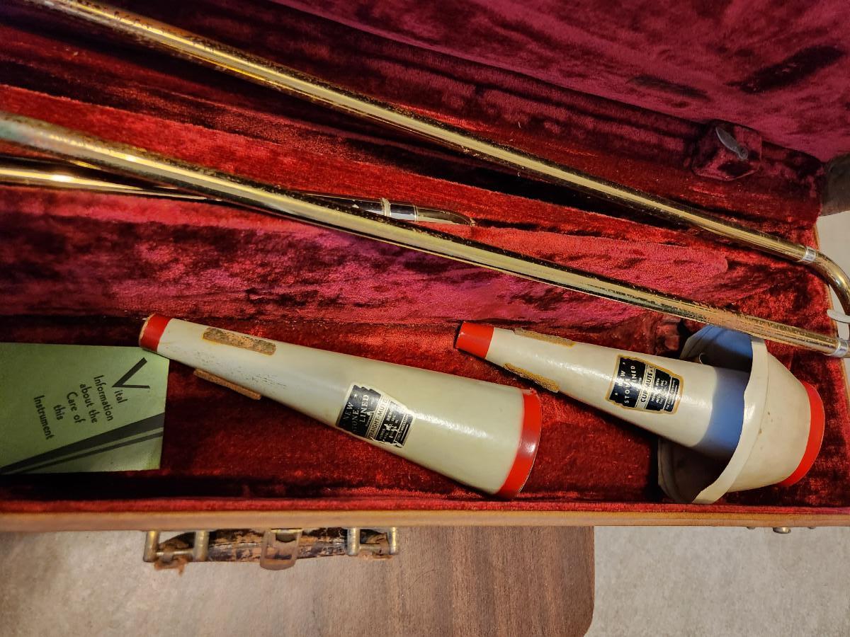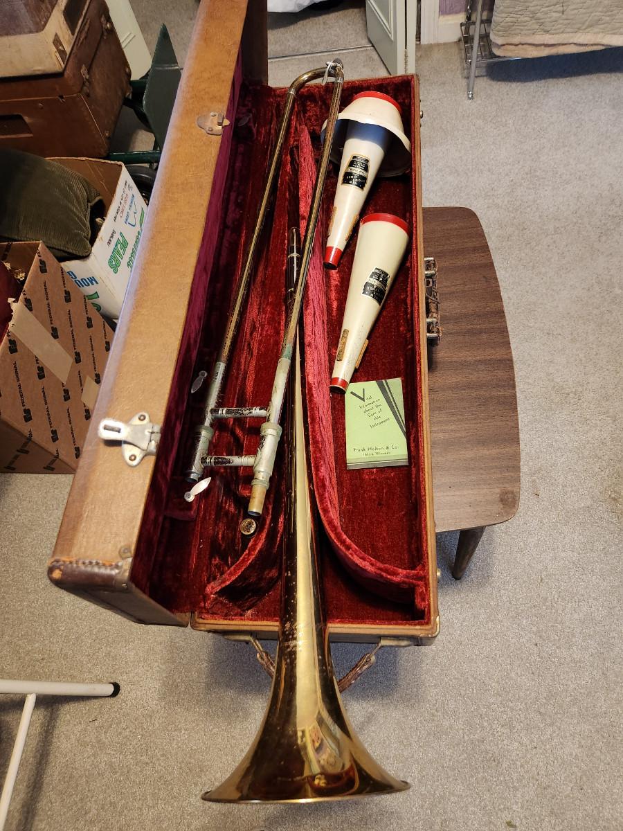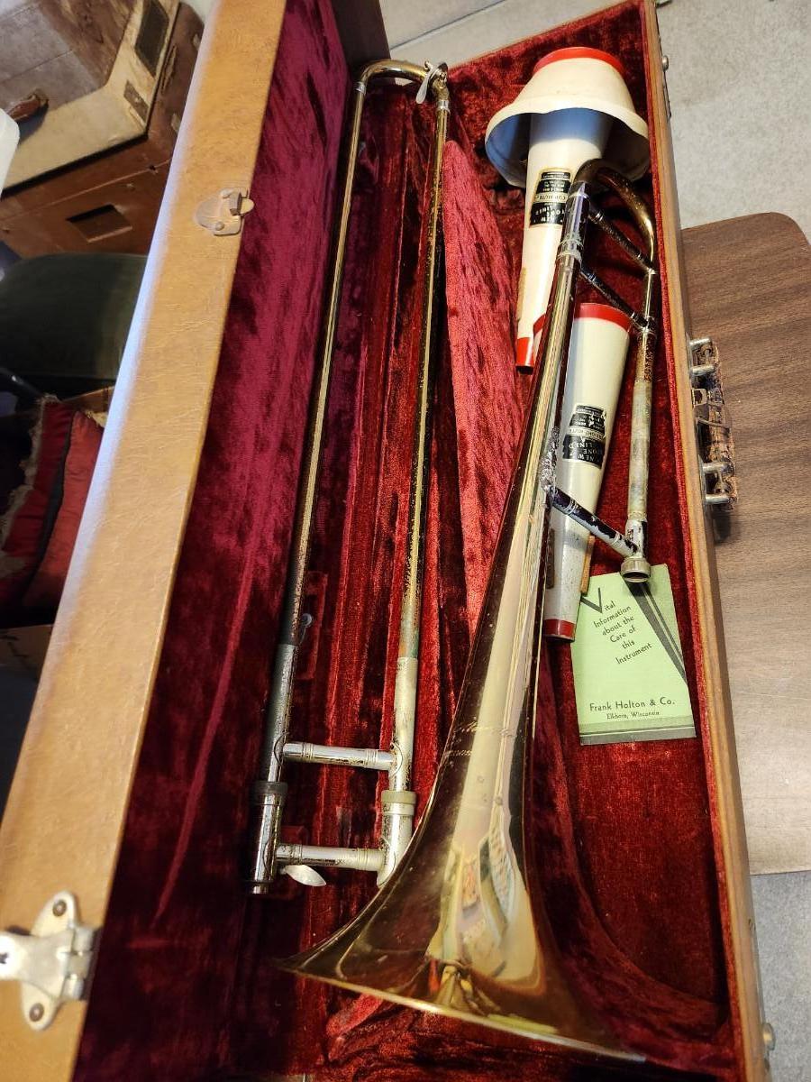 This auction lot is for a Frank Holton & Company Trumpet. This wonderfully unique musical instrument has seen a few blue notes. The previous owner was in a touring Jazz Band. It has been stored for at least 40 years. This trumpet was manufactured by the Frank Holton Company of Elkhorn, WI. It was made in 1940s. This item needs to be cleaned and refurbished but will be a gem once restored. Comes with case and muffles as seen in the pictures. NOTE: The starting price is the reserve price. THIS ITEM IS NOT AVAILABLE FOR SHIPPING - LOCAL PICK-UP ONLY!