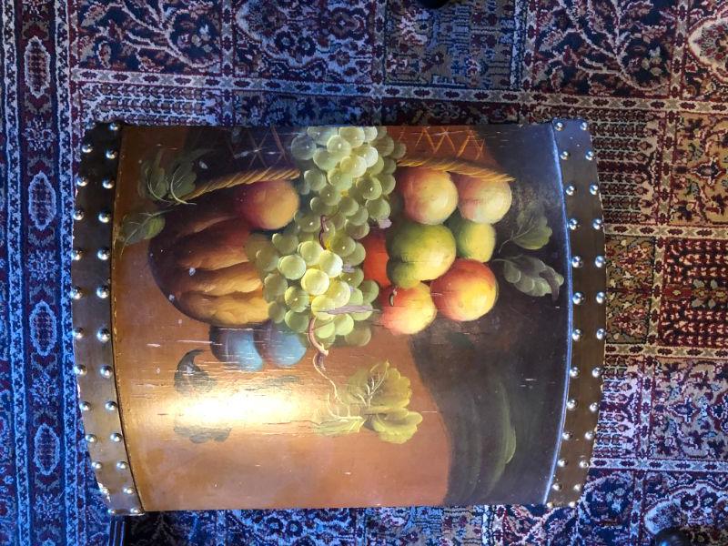 EXCELLENT CONDITION TRUNK, WITH VIBRANT COLORS PAINTED FRUIT.