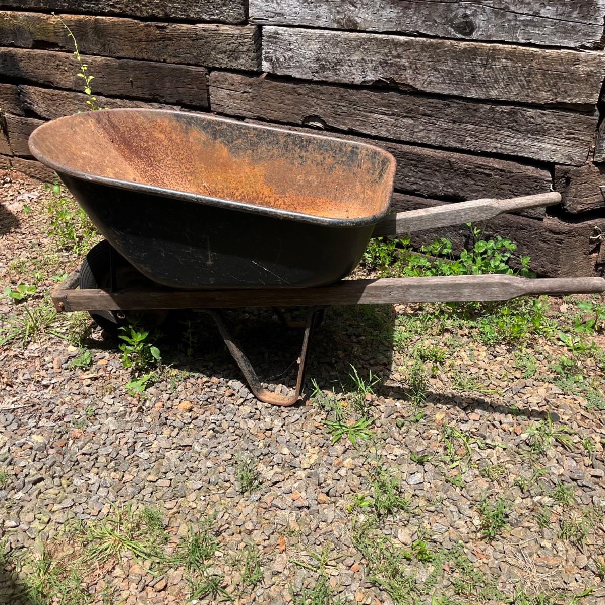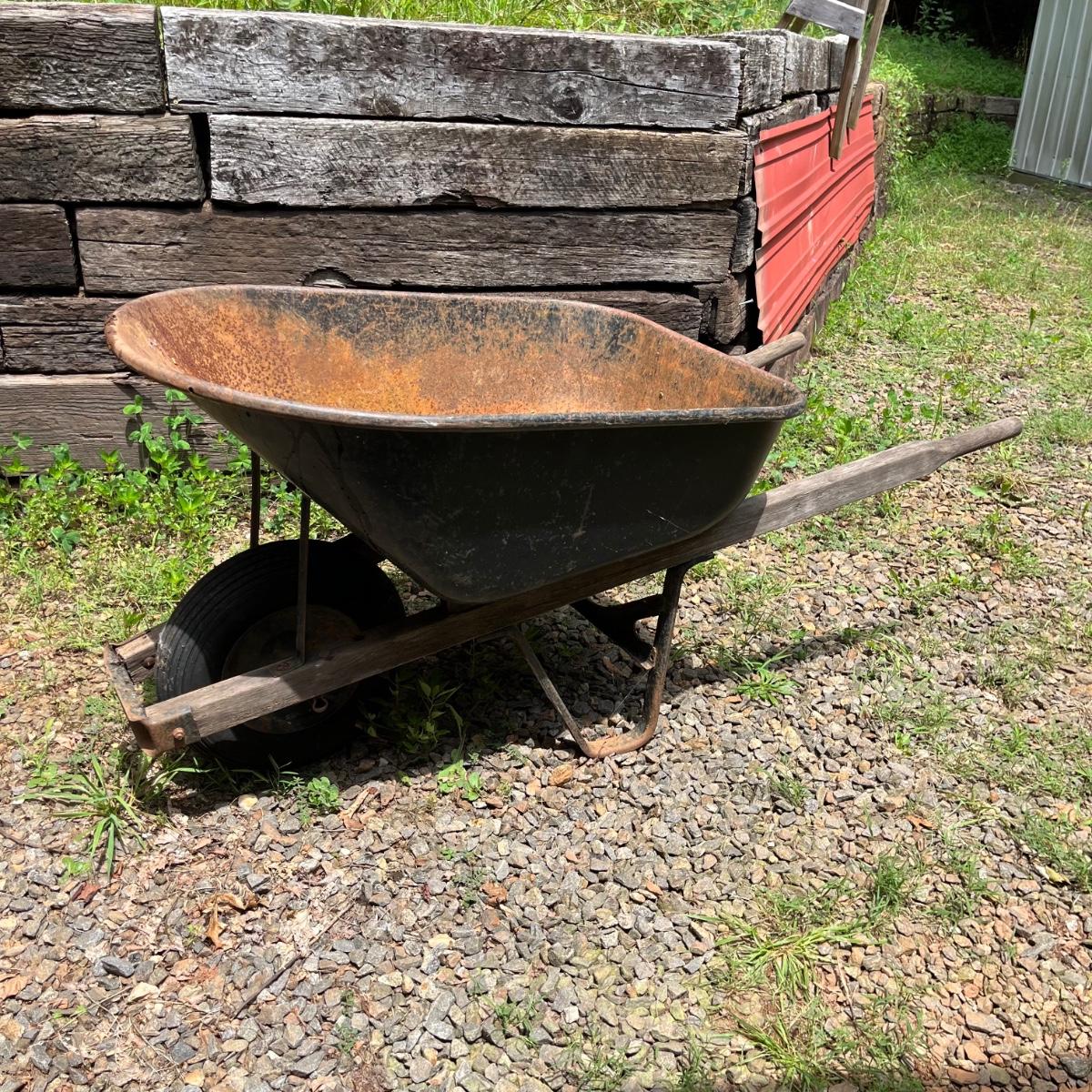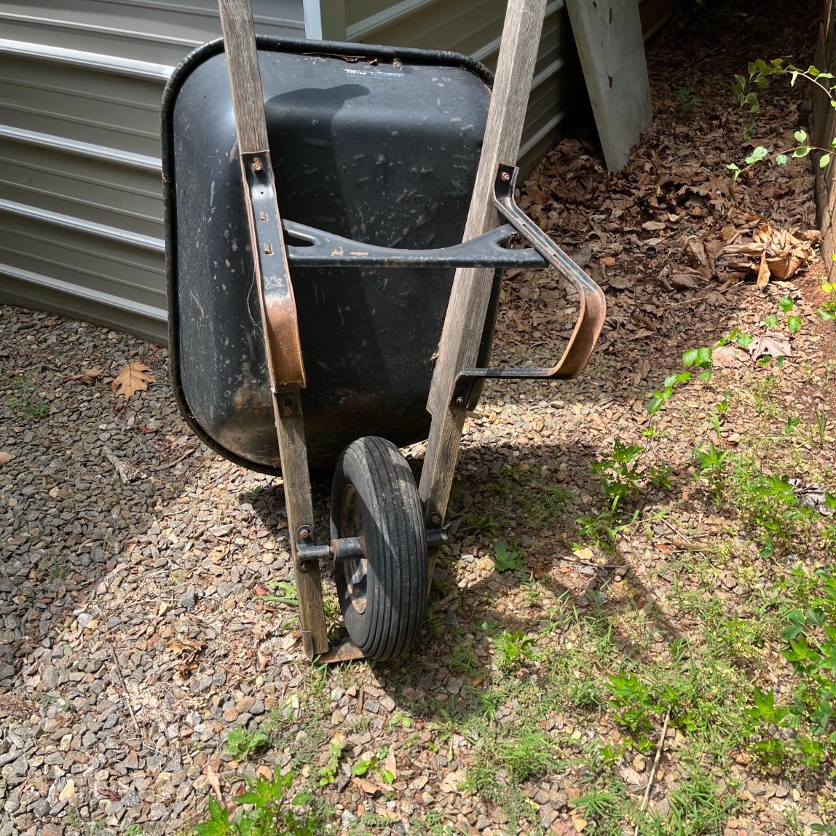 Lot includes a metal Tru-Temper 6 cubic foot wheelbarrow. Wheelbarrow has surface rust but is solid.