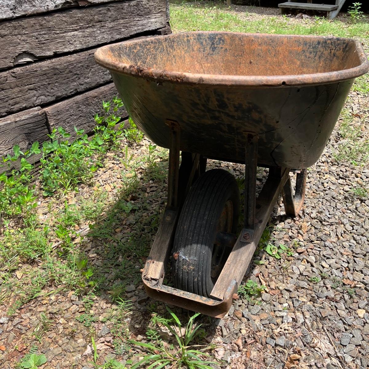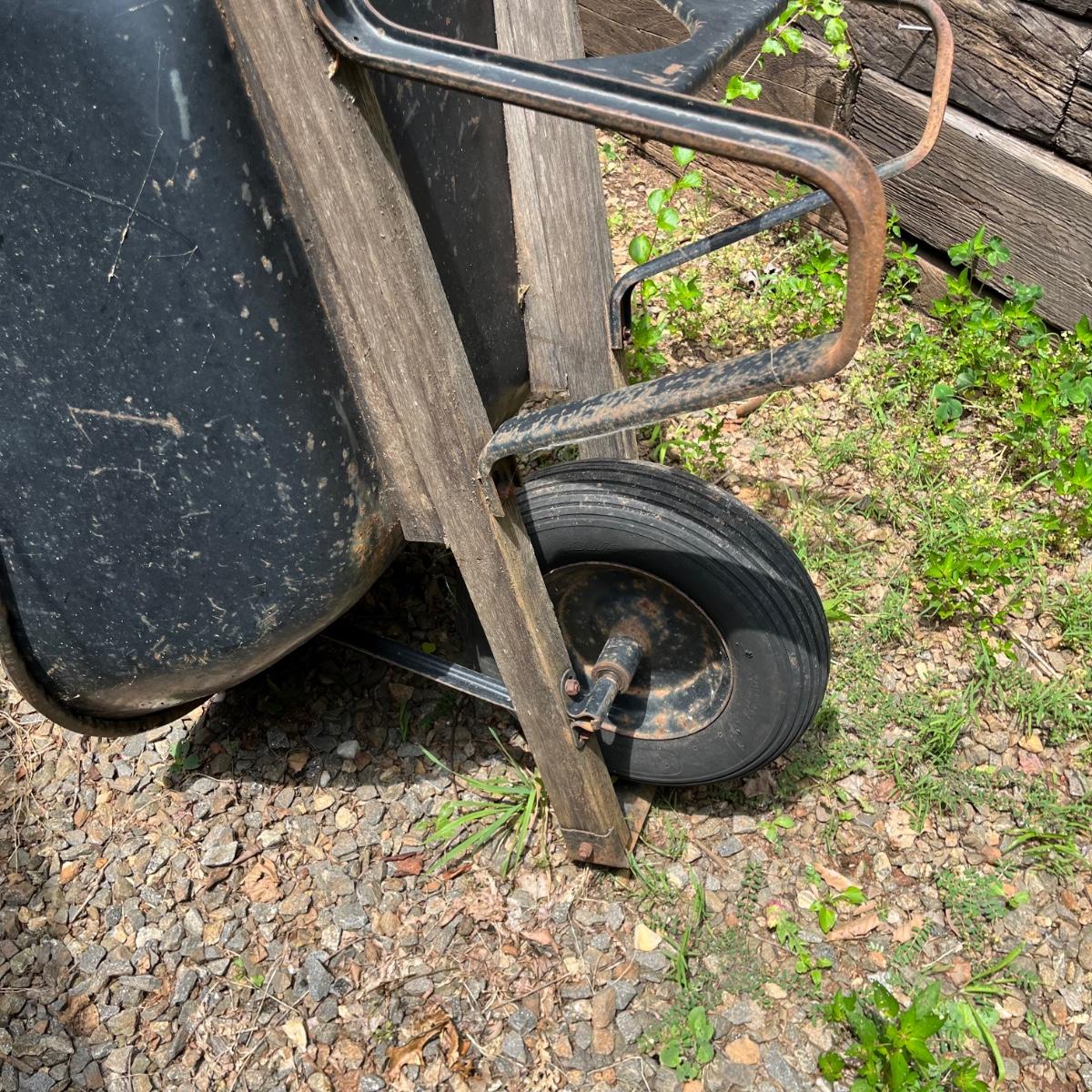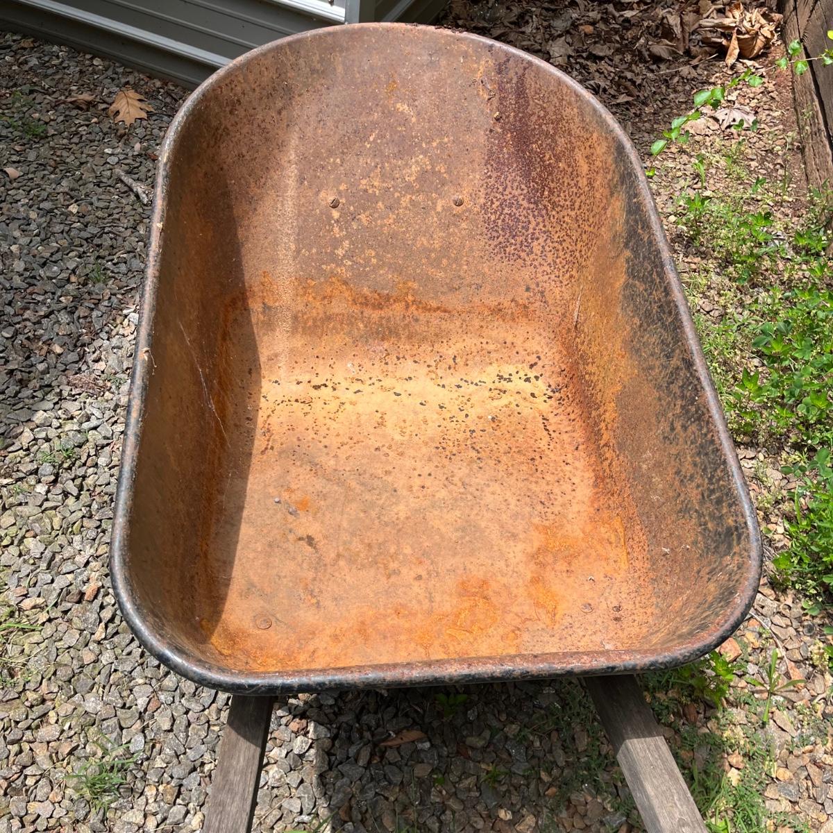 Lot includes a metal Tru-Temper 6 cubic foot wheelbarrow. Wheelbarrow has surface rust but is solid.