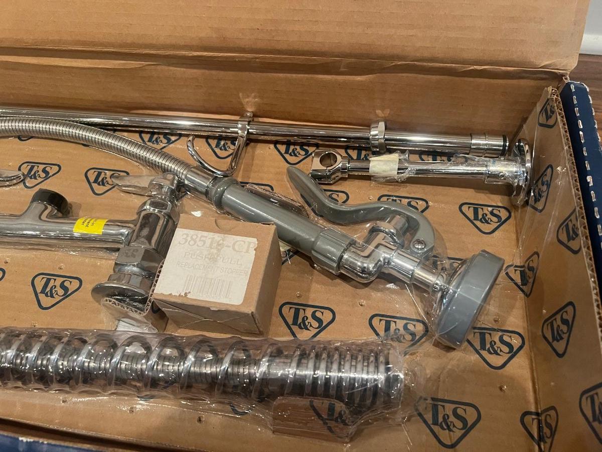 T&S B-0123-B Deck Mounted commercial faucet. Comes with all parts pictured. New.
