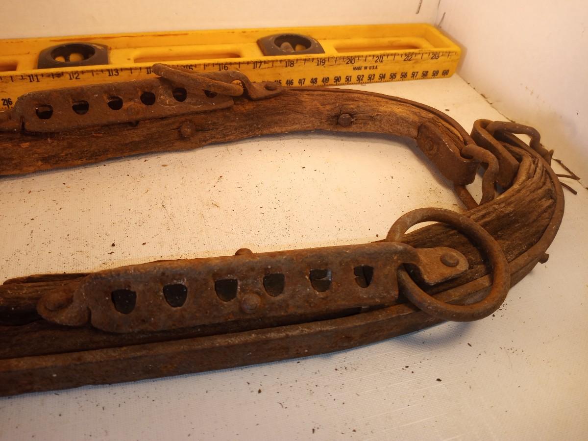 ts2876 - Vntg Pair 24” Primitive Horse Hames Collar Harness Cast Iron Wood Western