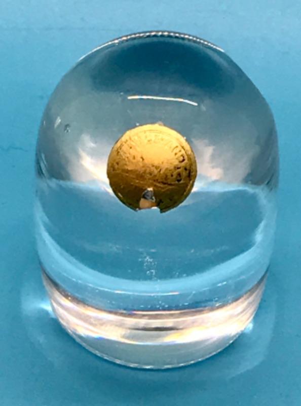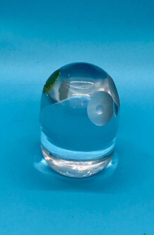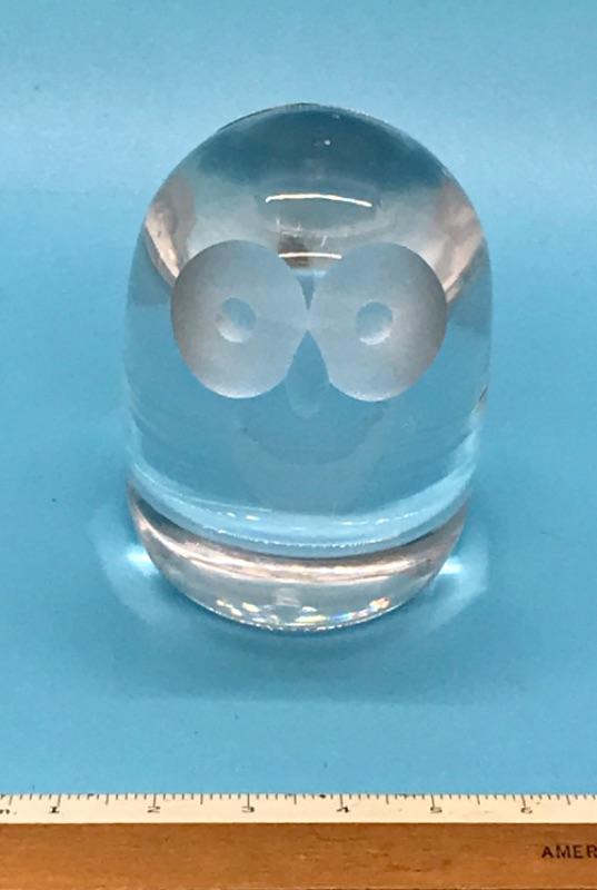 Vintage crystal owl paperweight figurine. Etched eyes. Has original sticker still attached on the back, but its hard to read. About 4" size.