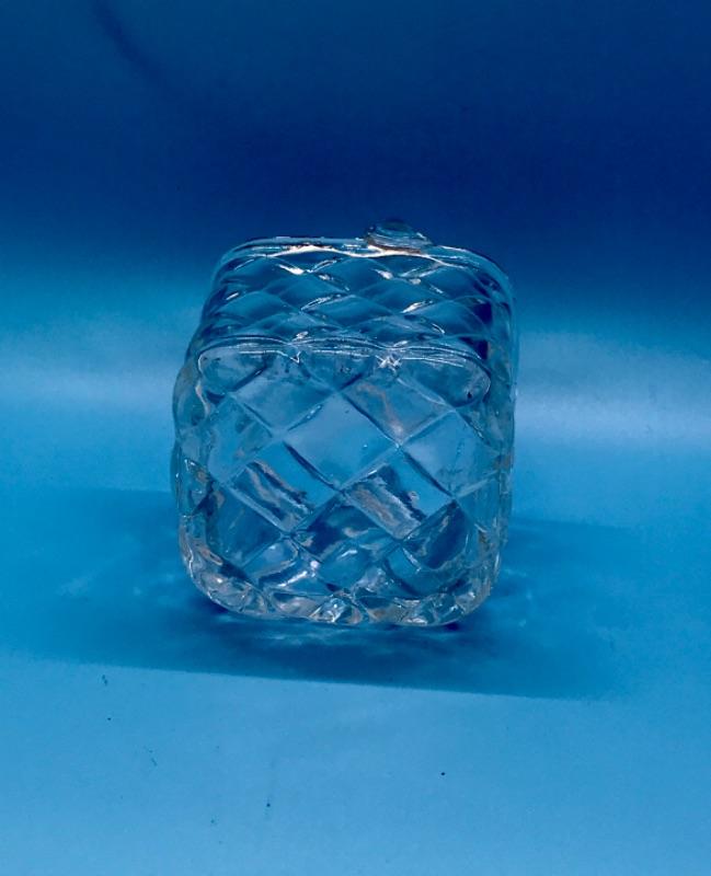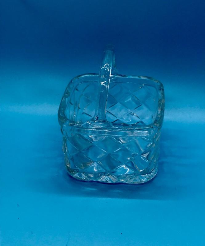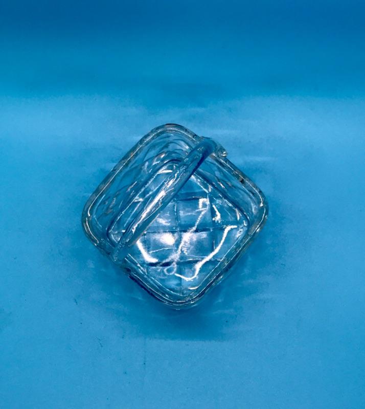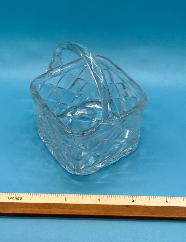 Small glass basket trinket dish. About 3" size. Good Condition.