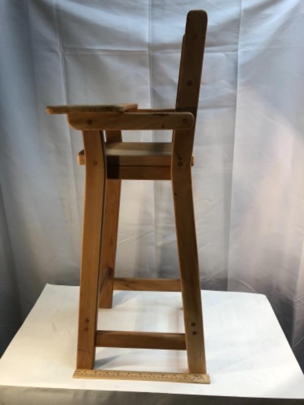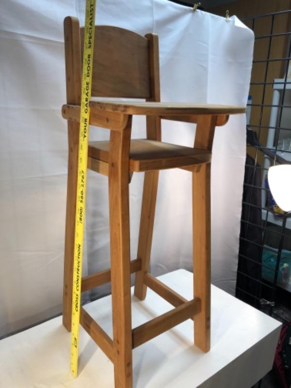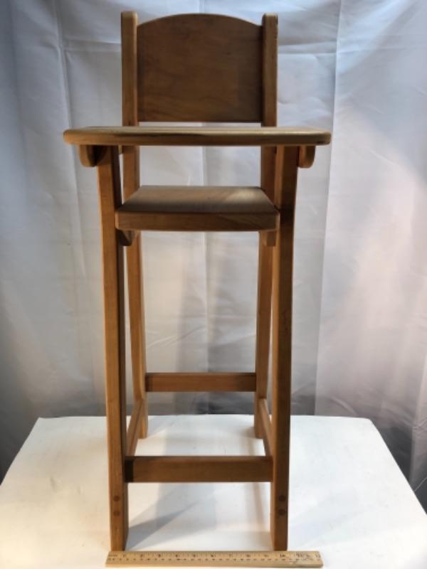 Doll size wood high chair. Great for decor, display or for child's imagination. Almost 36"