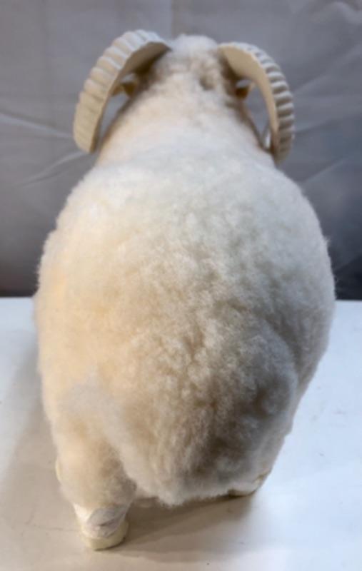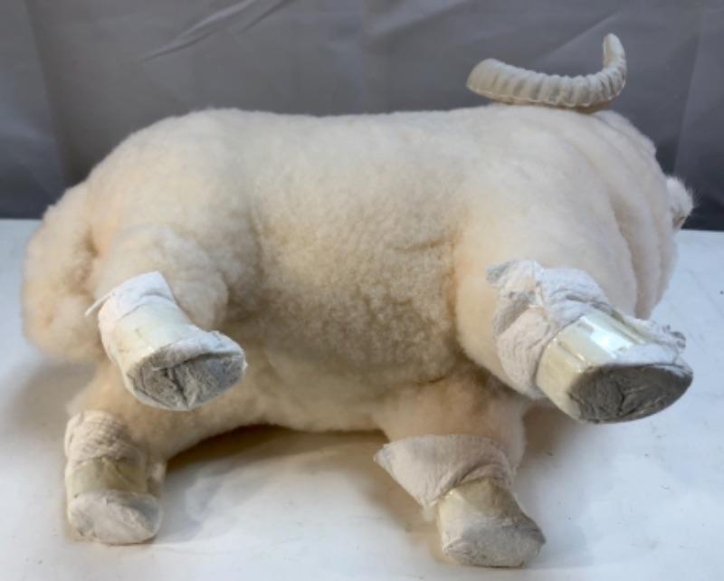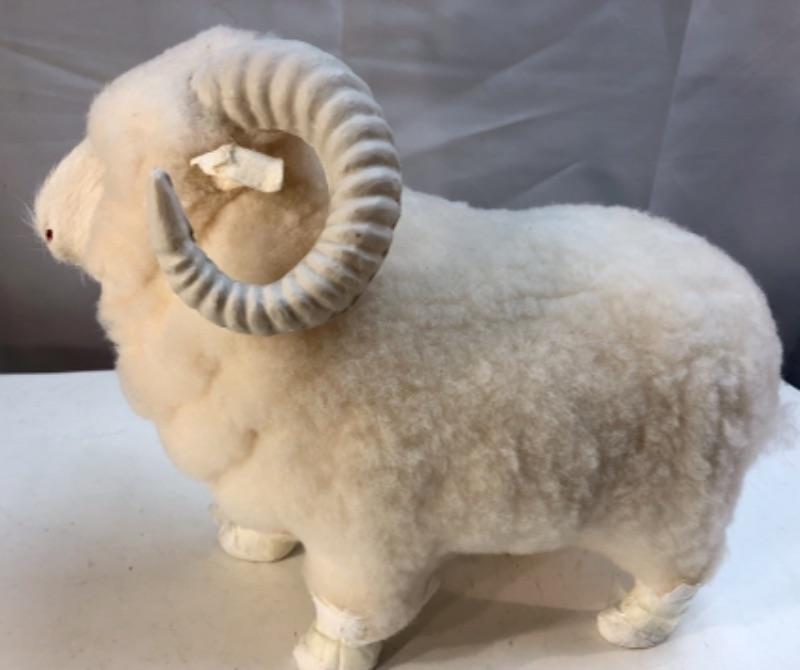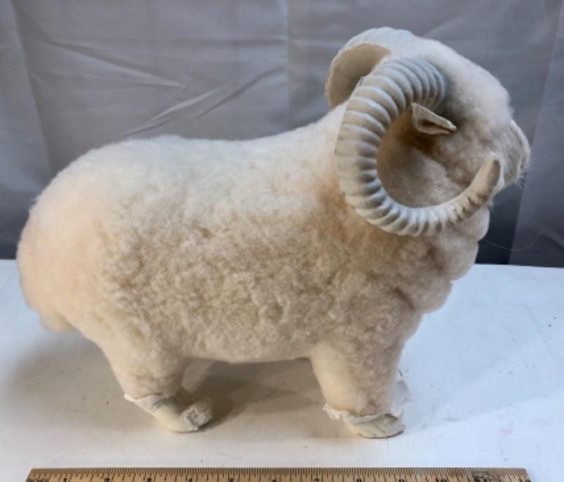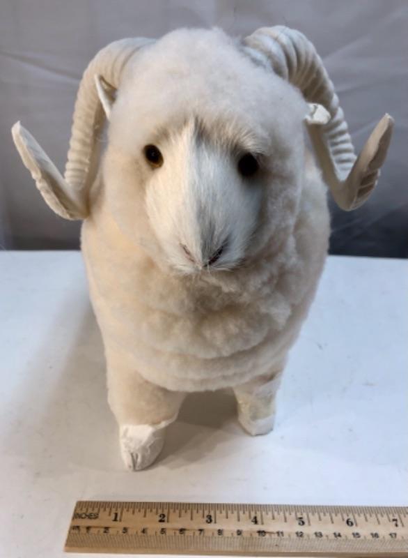 White ram plush animal. Feels like real fleece on the body, and real fur face. Good condition, displays great.