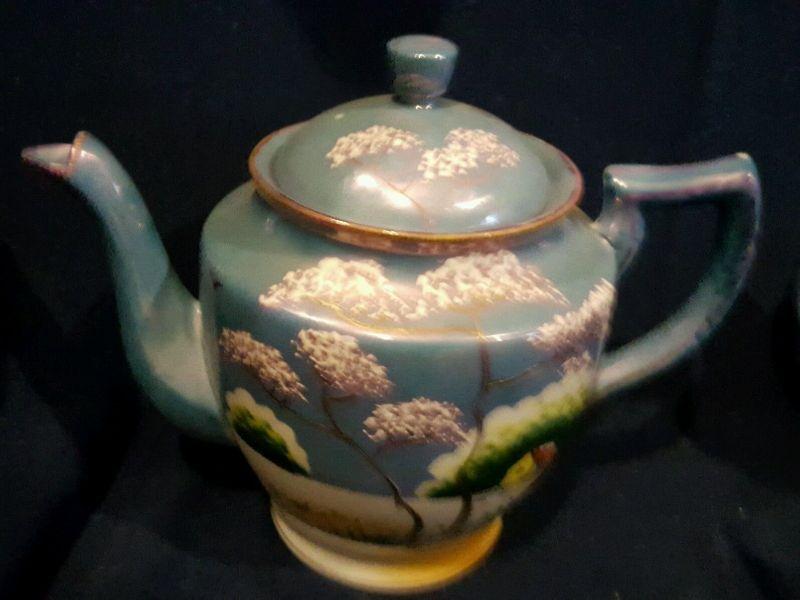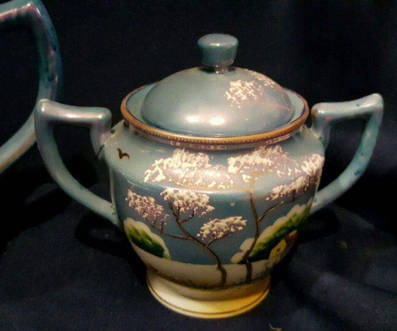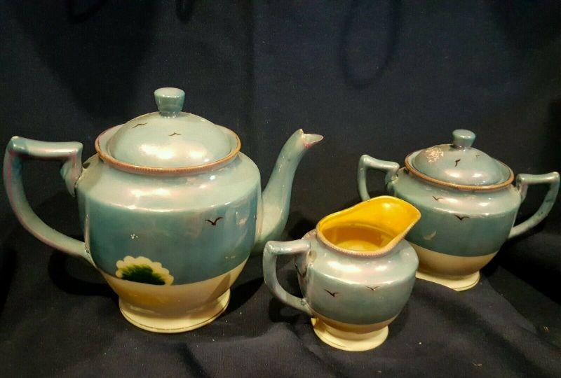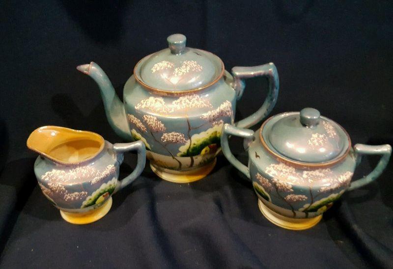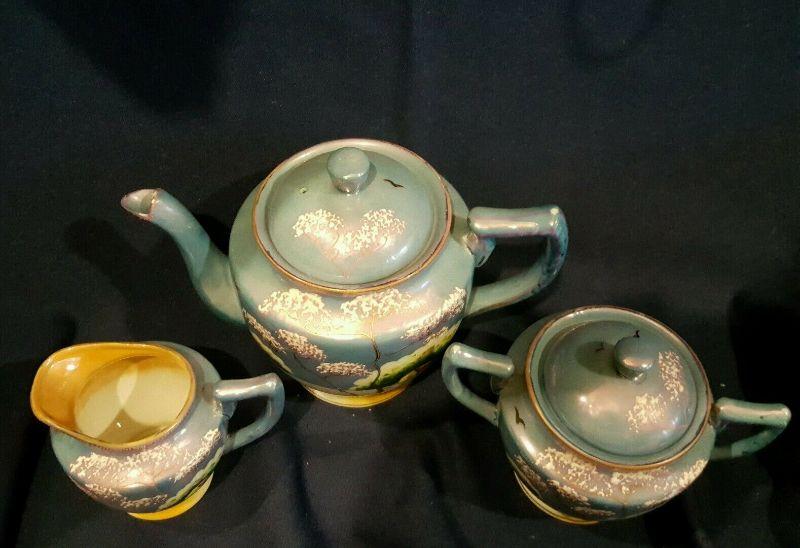 TT Takito Hand Painted Lusterware Teapot, Creamer and Sugar Bowl