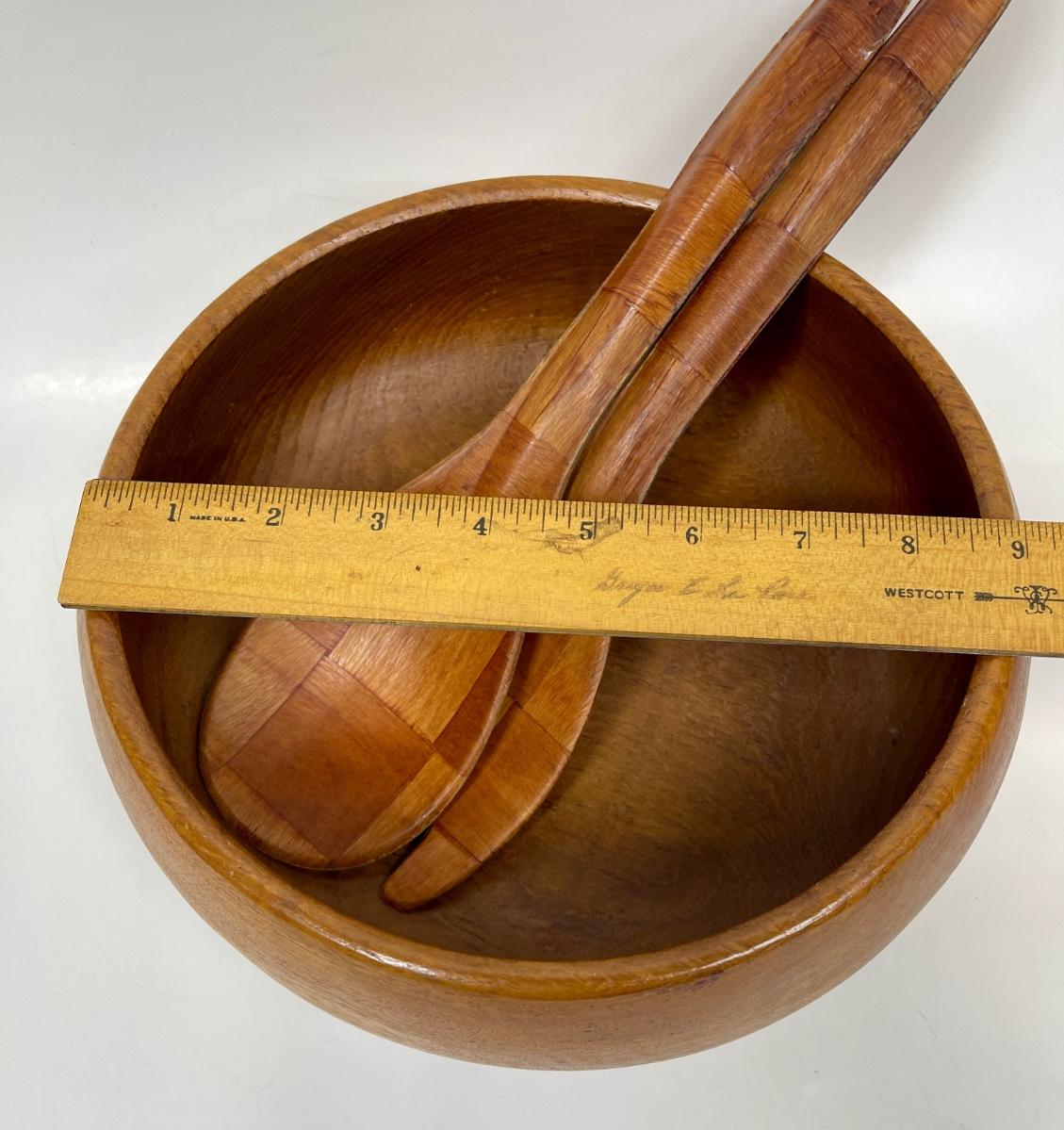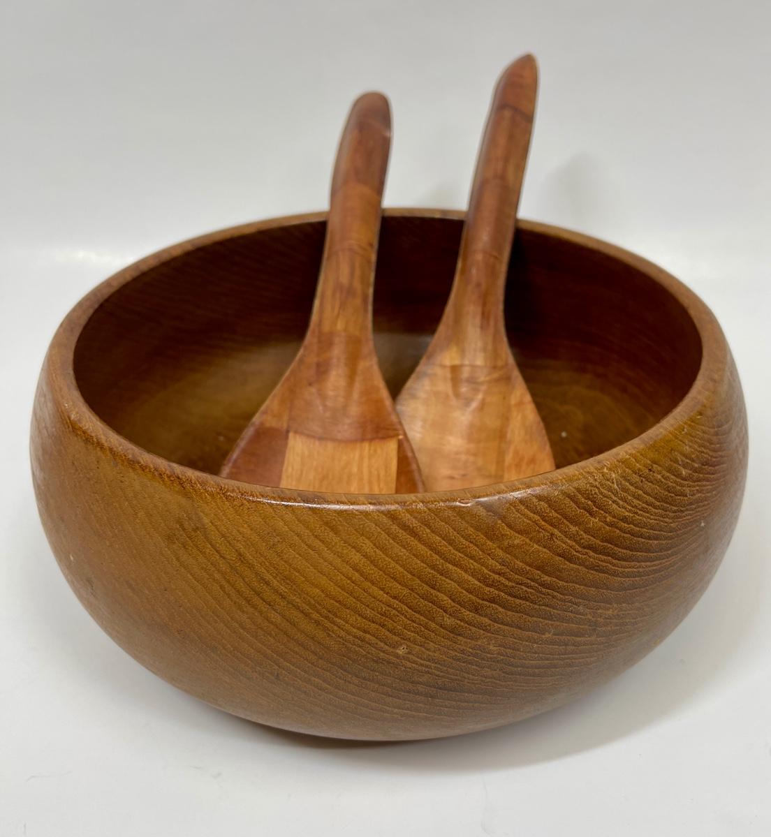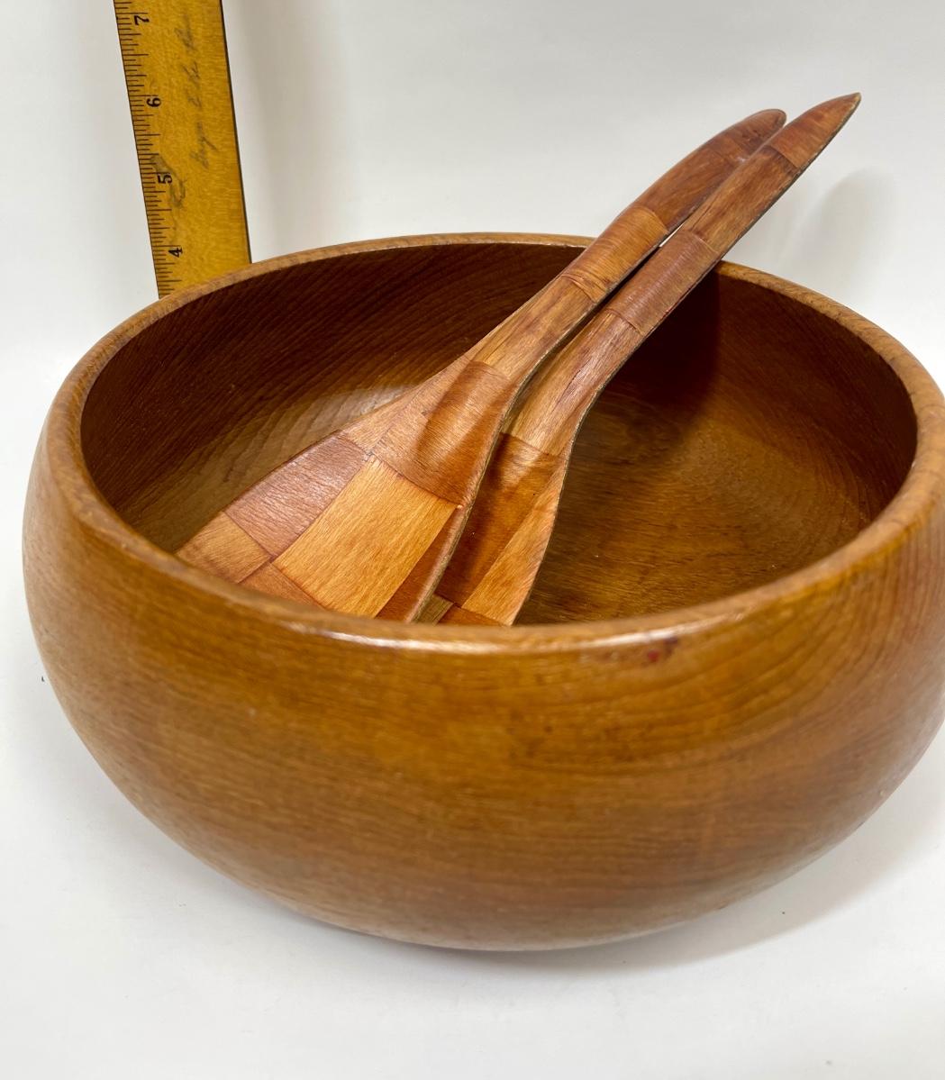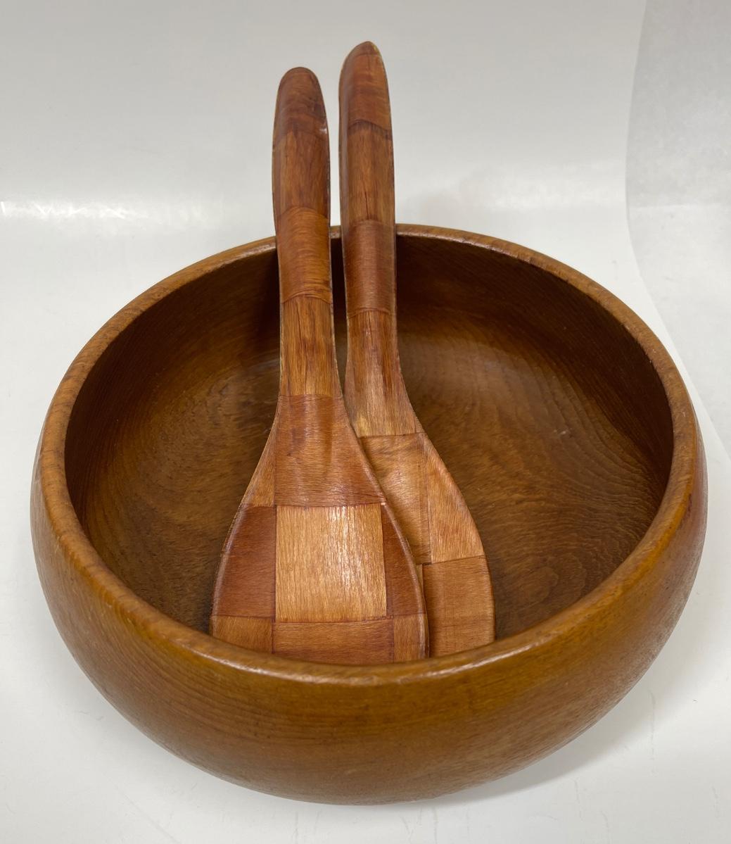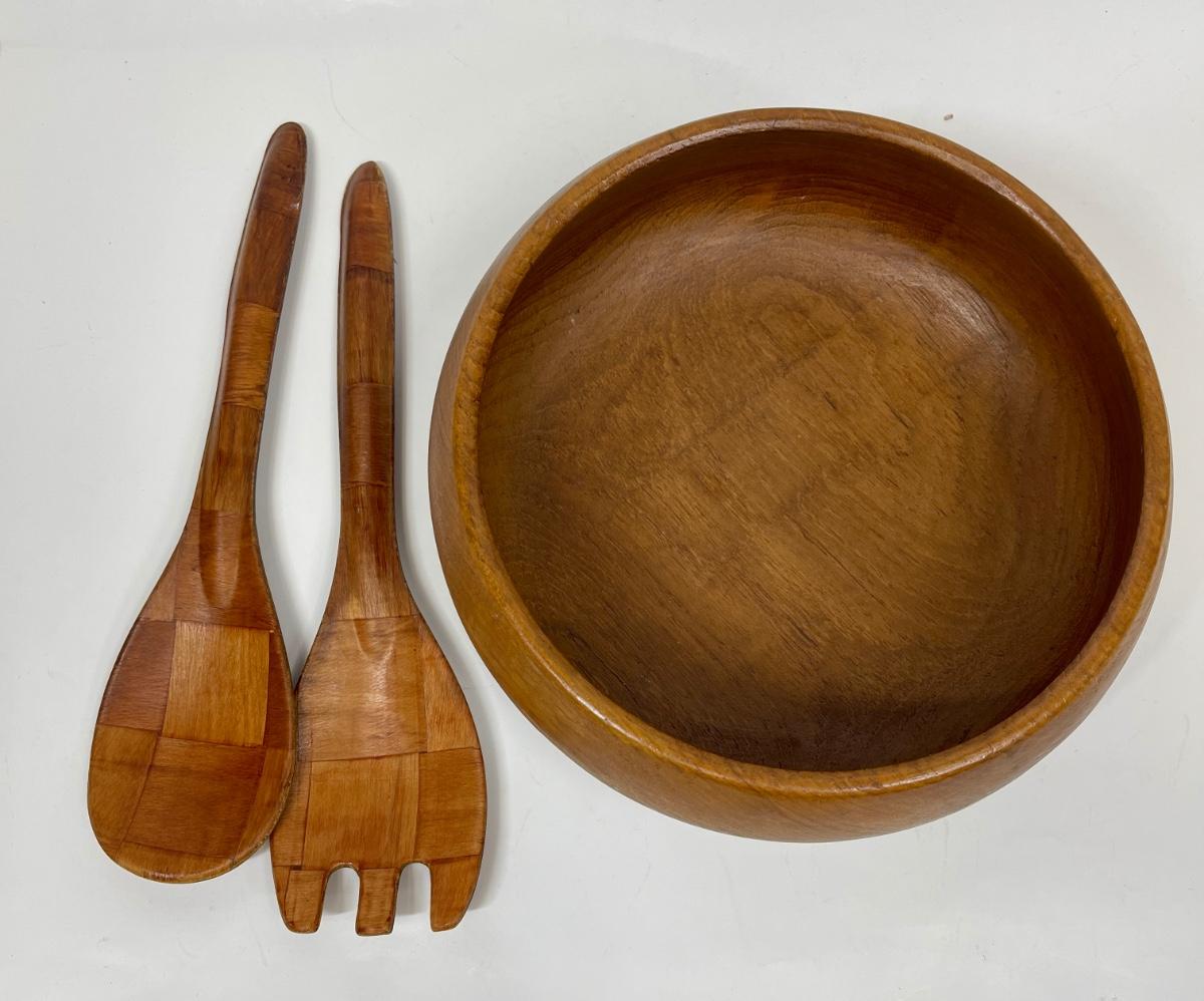 Vintage Wood Serving Bowl with Spoon and Fork