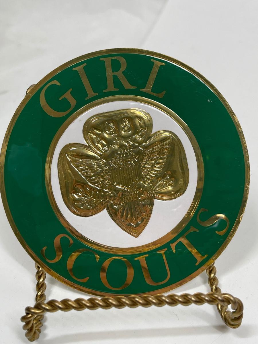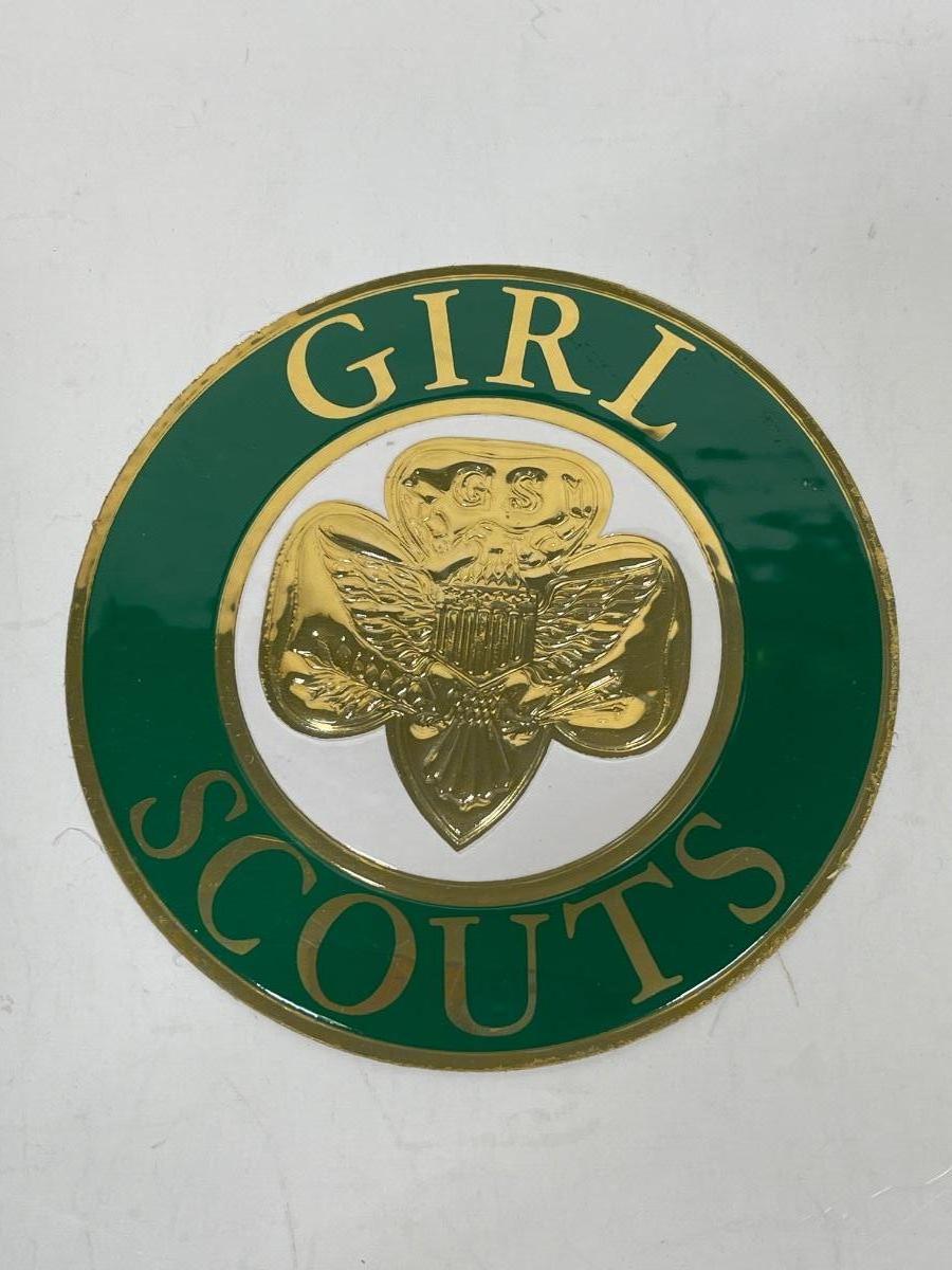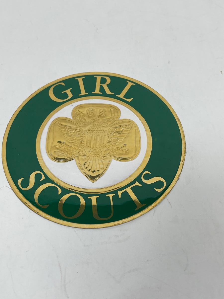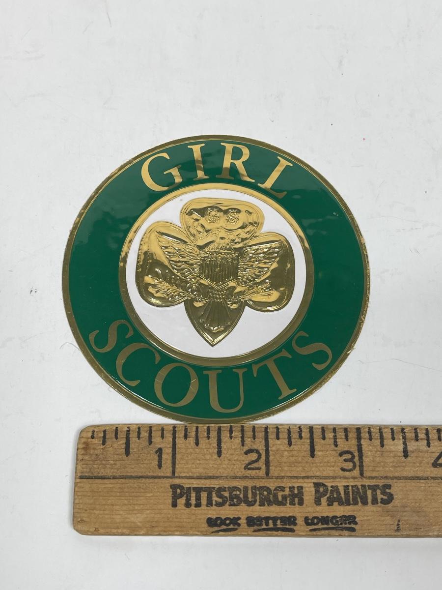 Vintage Girl Scout Emblem Sticker Decal 3.5" Royal-Cal Gold & Green Circle