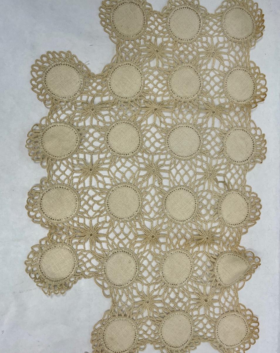 Vintage Lace and Fabric Seat covers in good condition, might be a small stain.