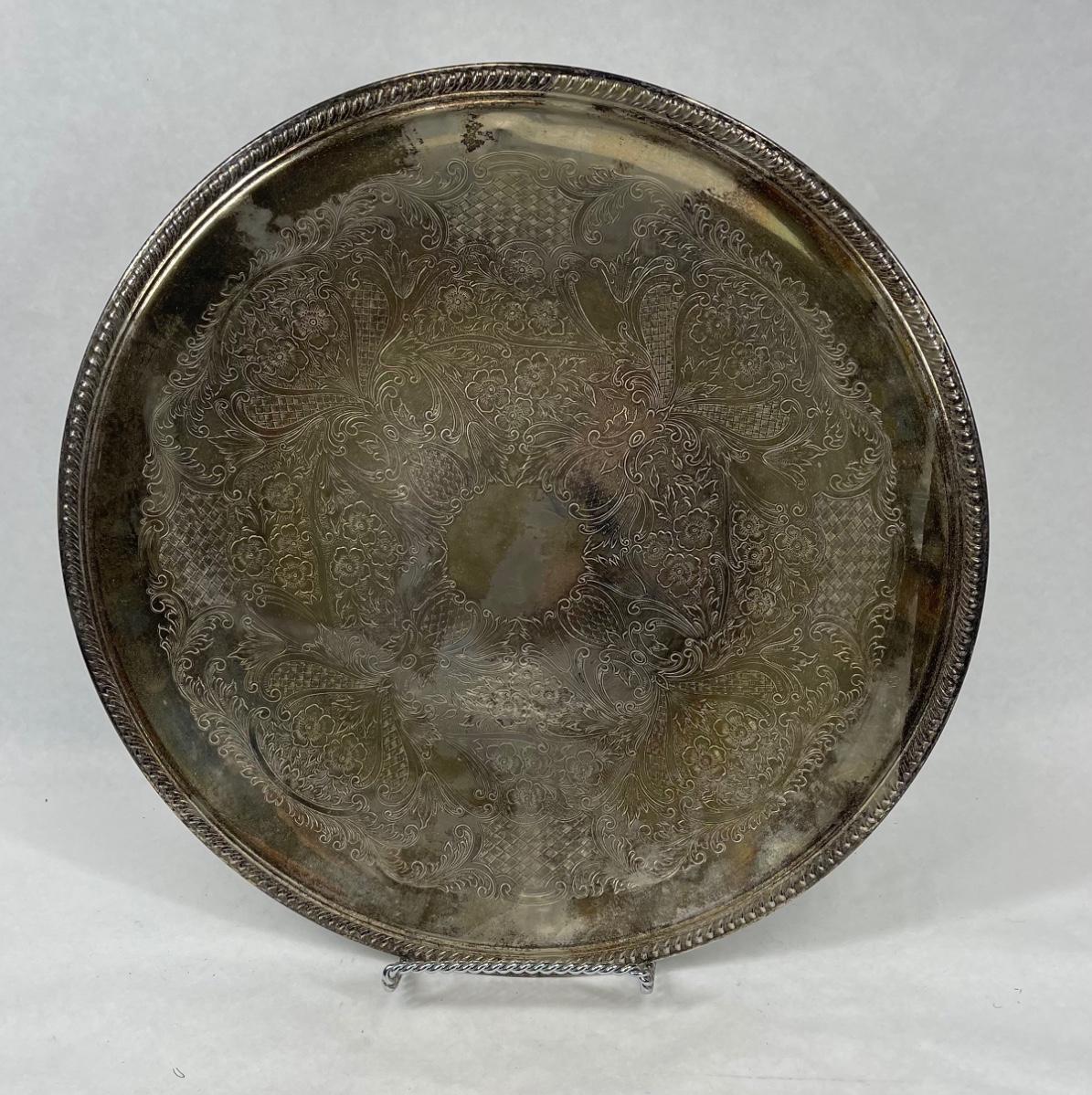 Antique Vintage Large Silver-plate Round Platter MRRS English Silver Mfg. Corp. Made in USA