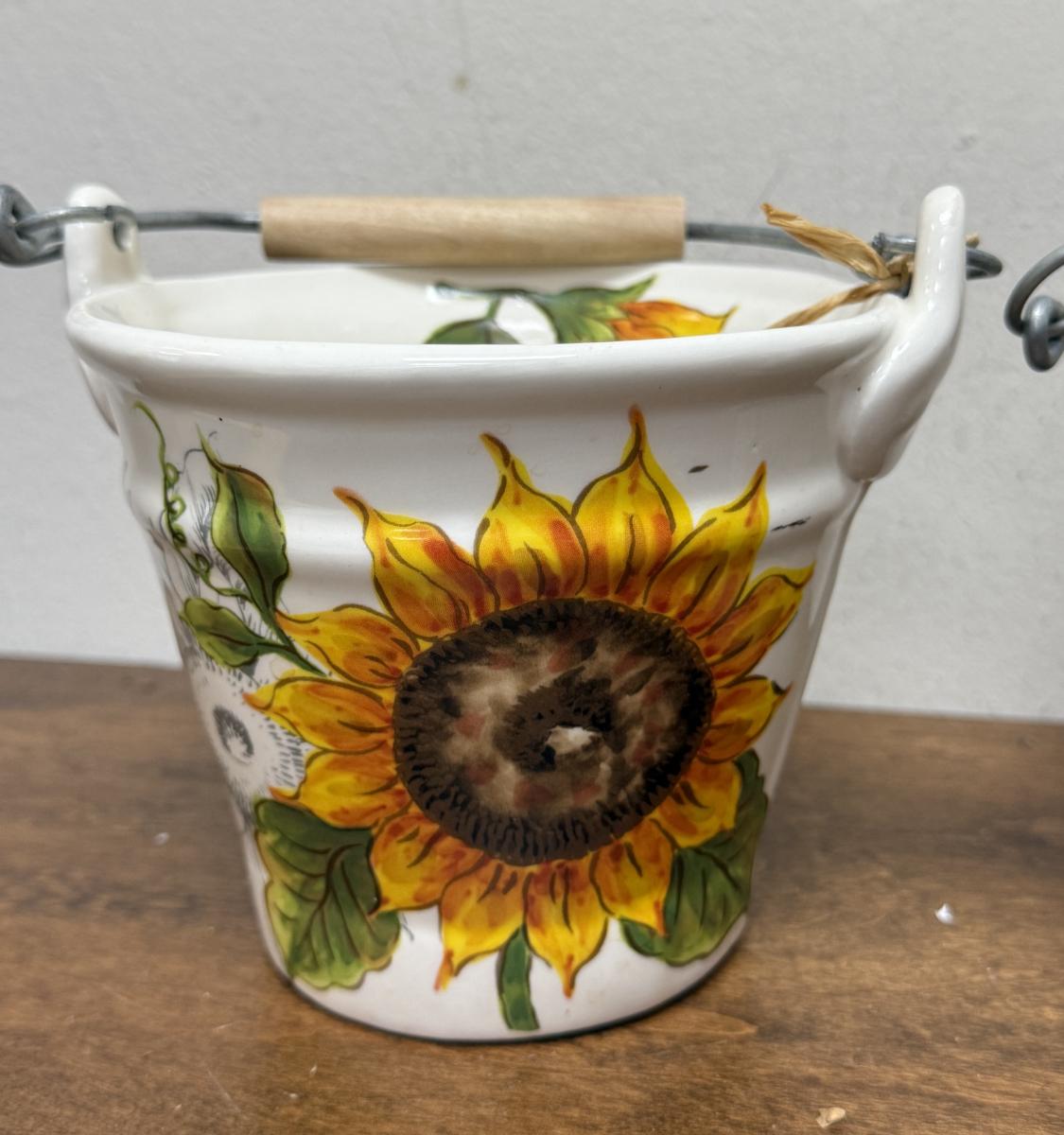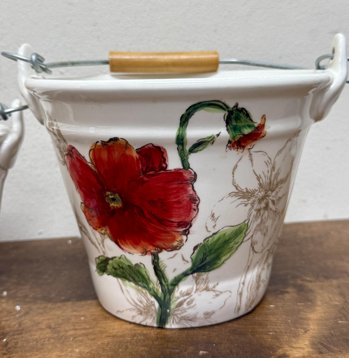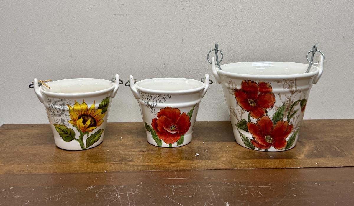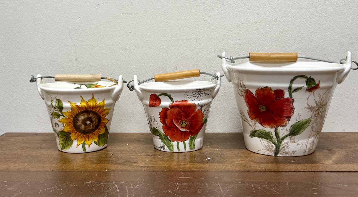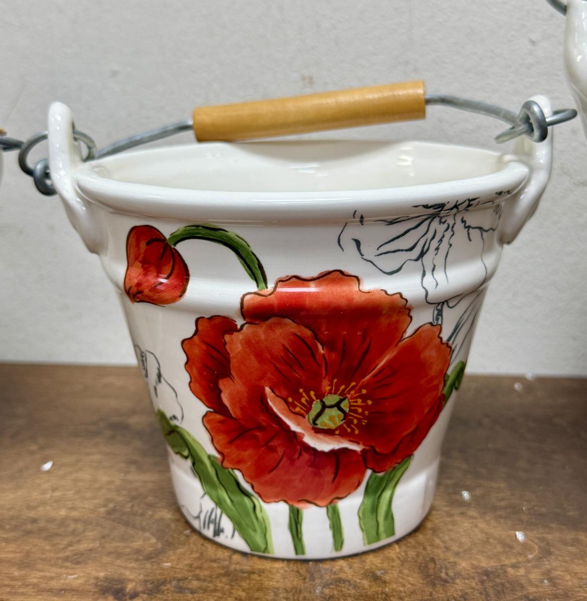 Lot of 3 Maxcere Poppies & Sunflower Ceramic Pail Bucket Planters