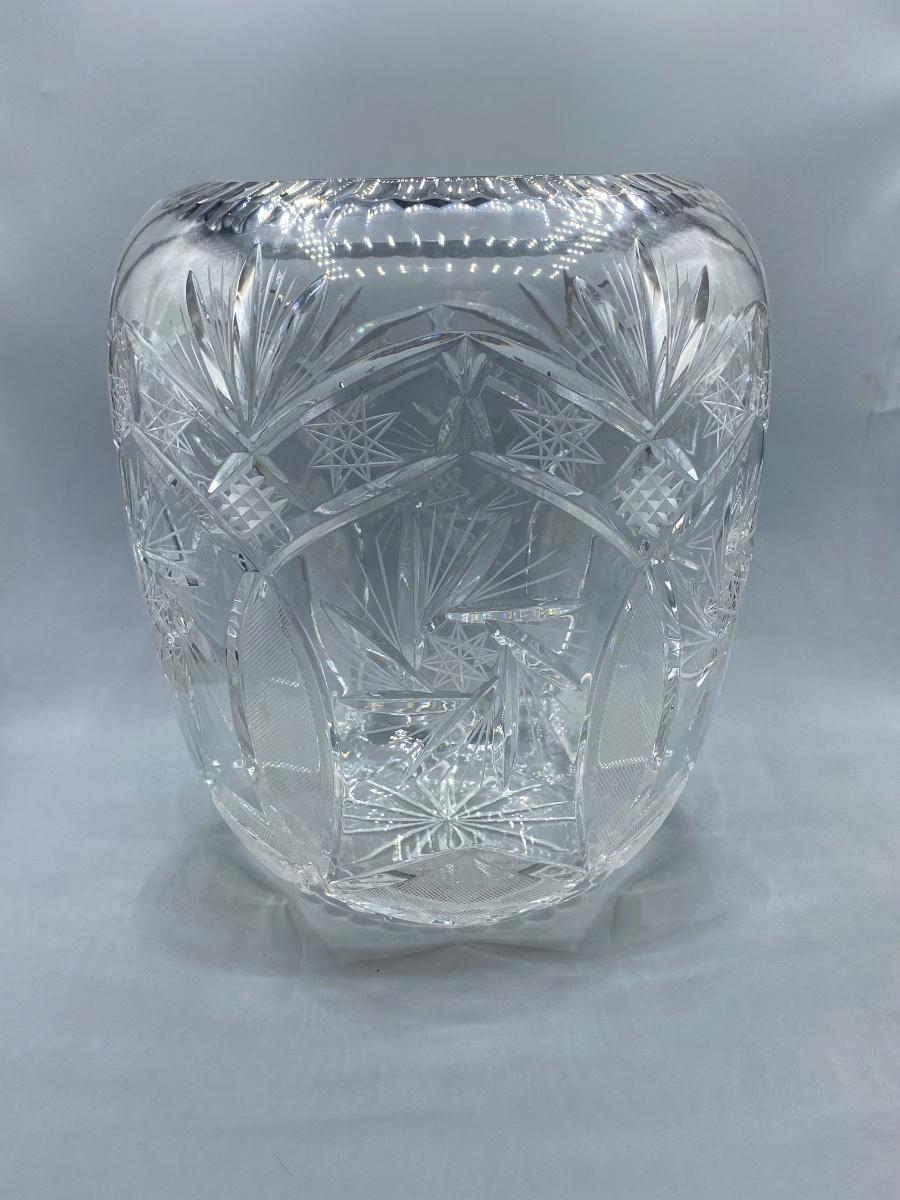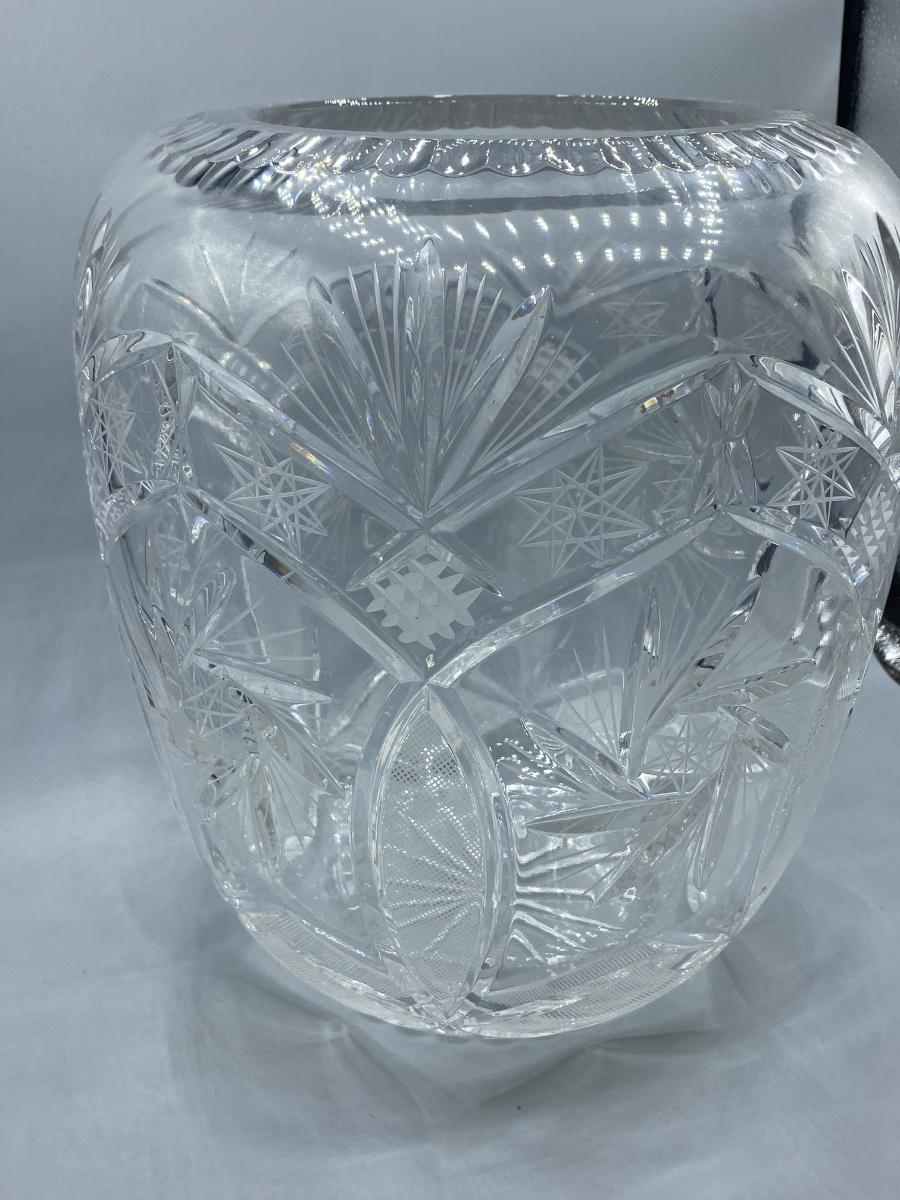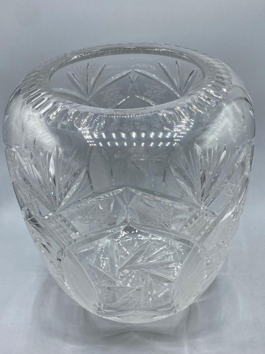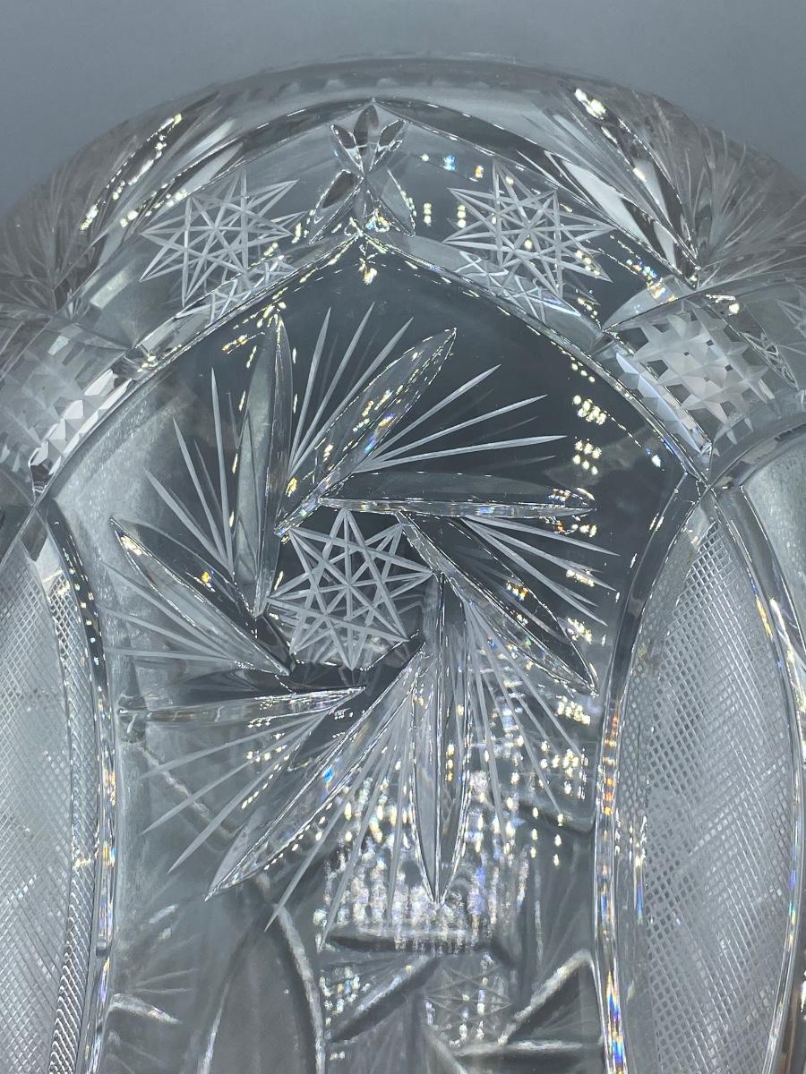 Large Heavy Quality Cut Crystal Flower Vase Pinwheel and Star Pattern