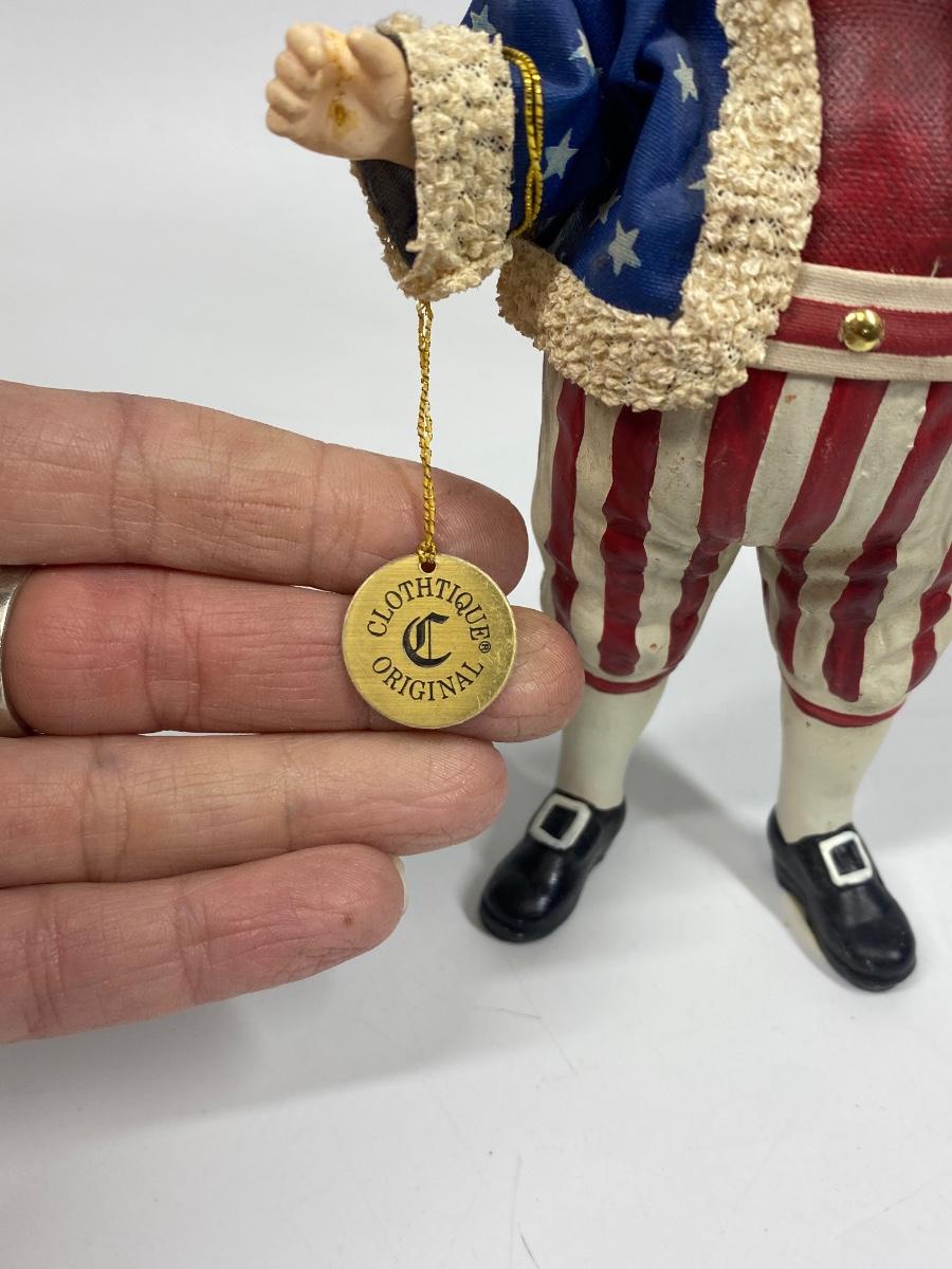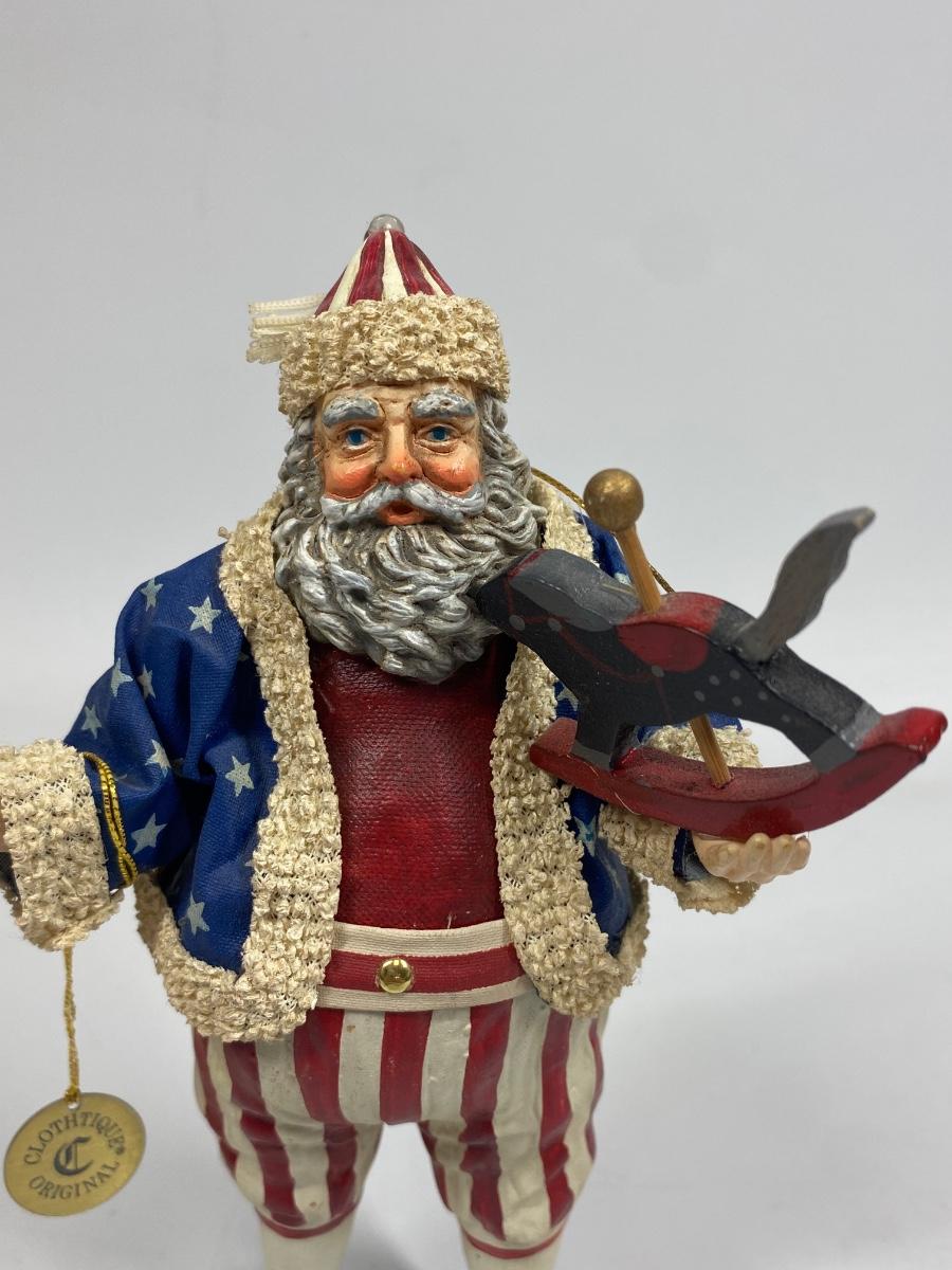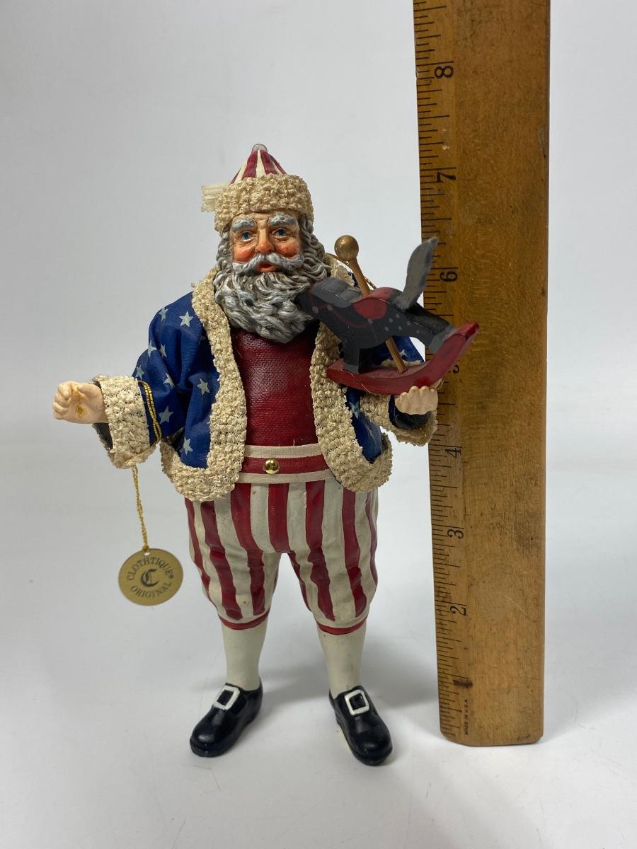 Clothtique Original Americana Christmas Patriotic Santa Claus St. Nick Figurine. Good condition. Has original tag attached. A little over 7" tall.