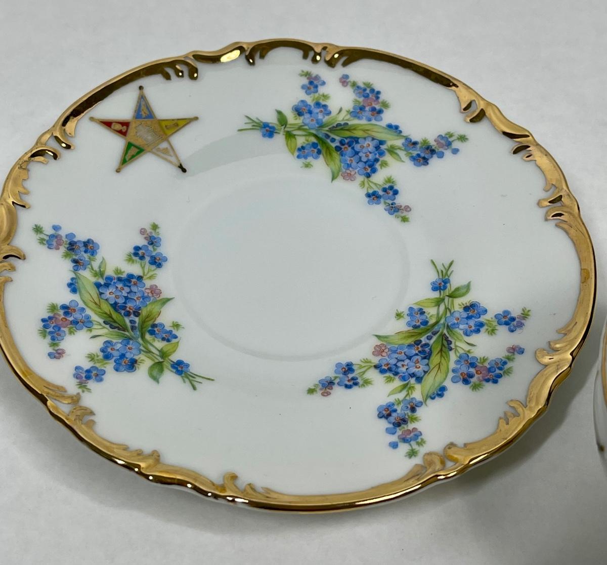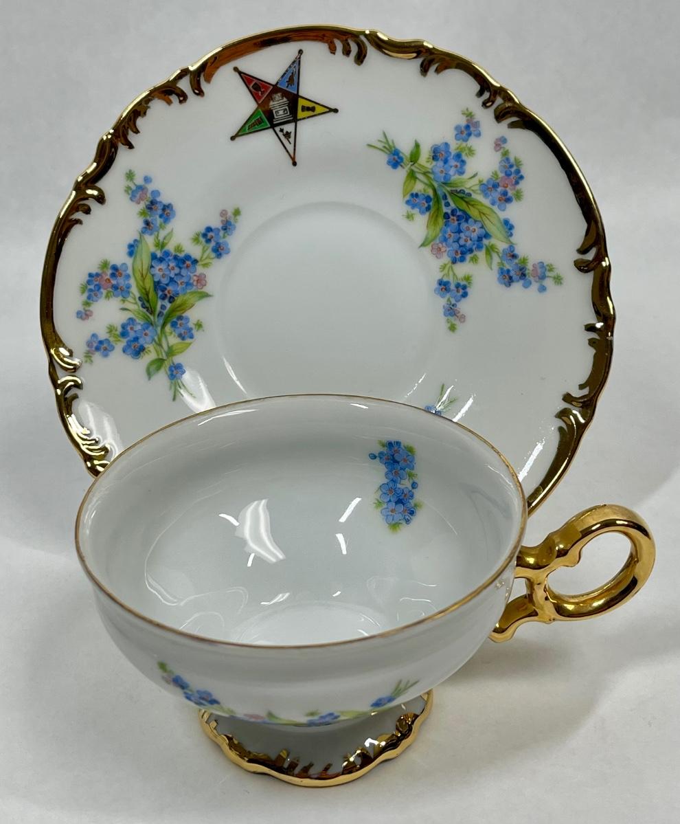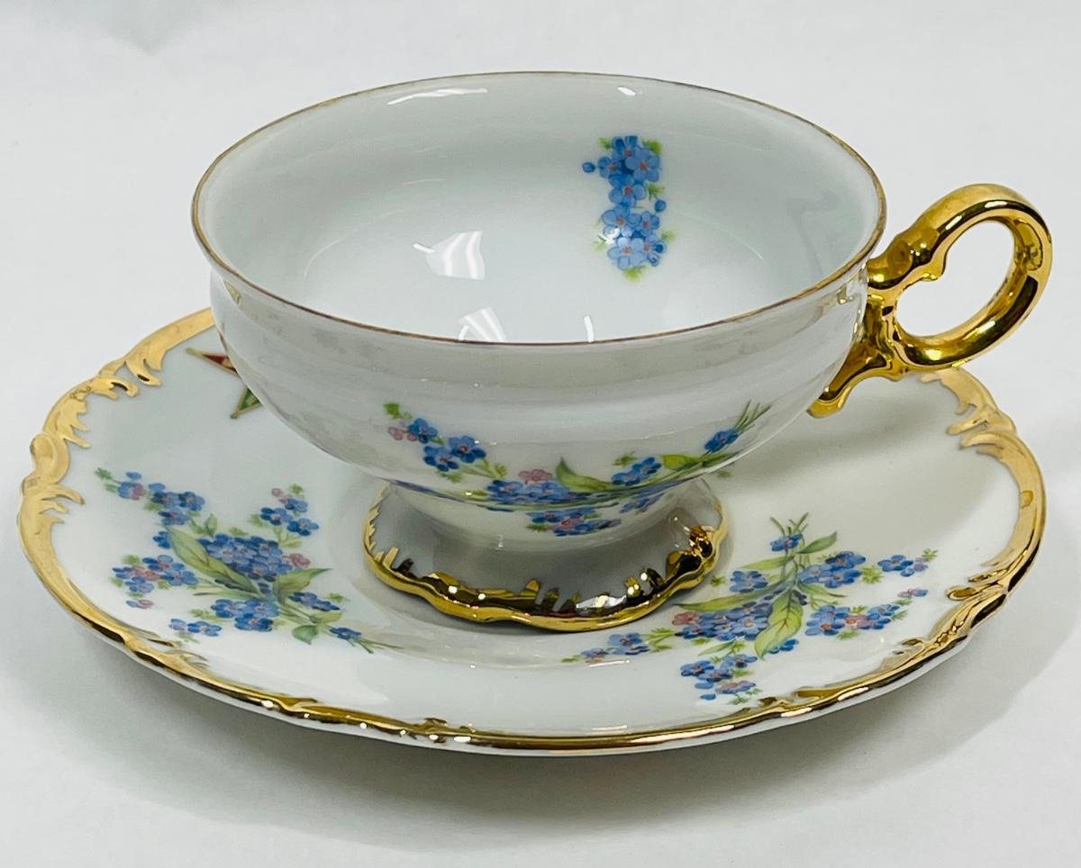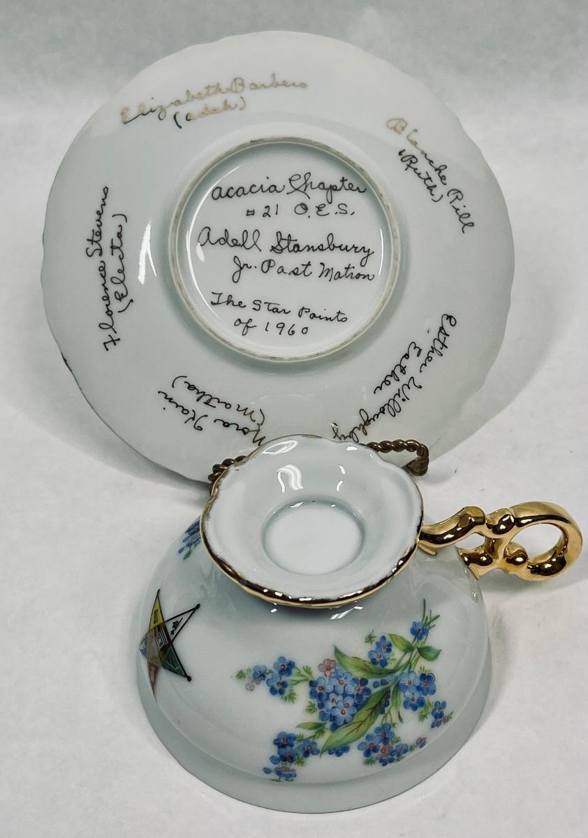 Vintage Teacup and Saucer Blue Flowers signed by meeting members
