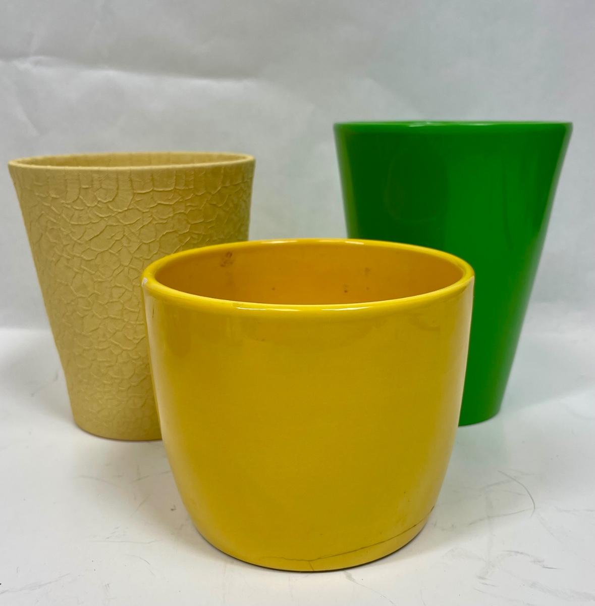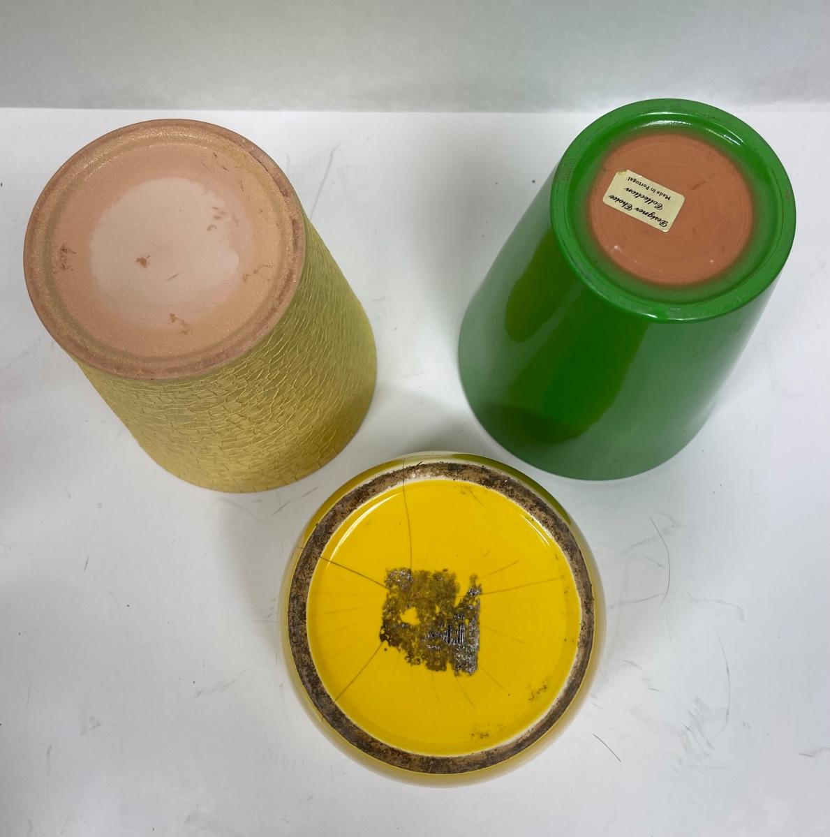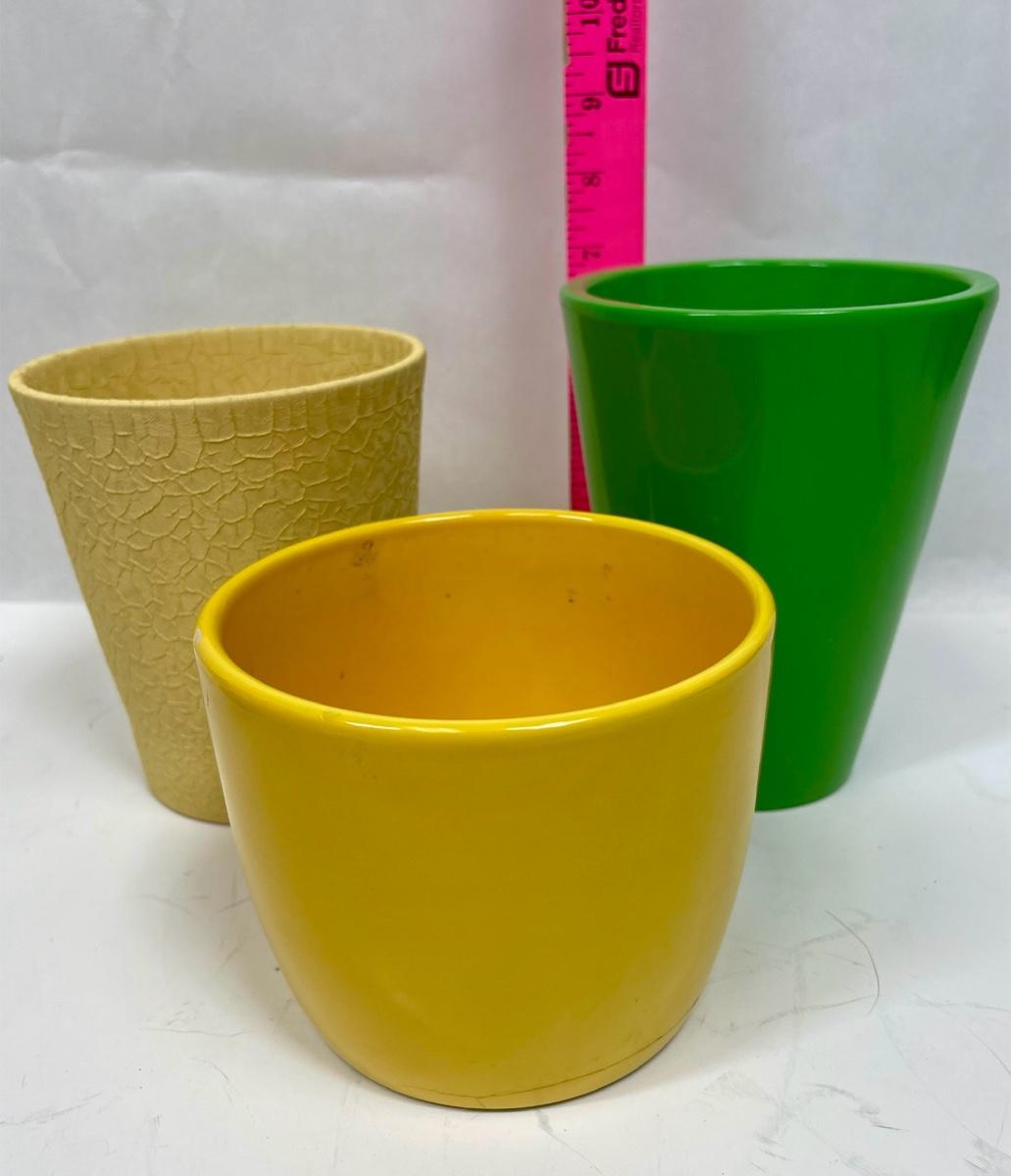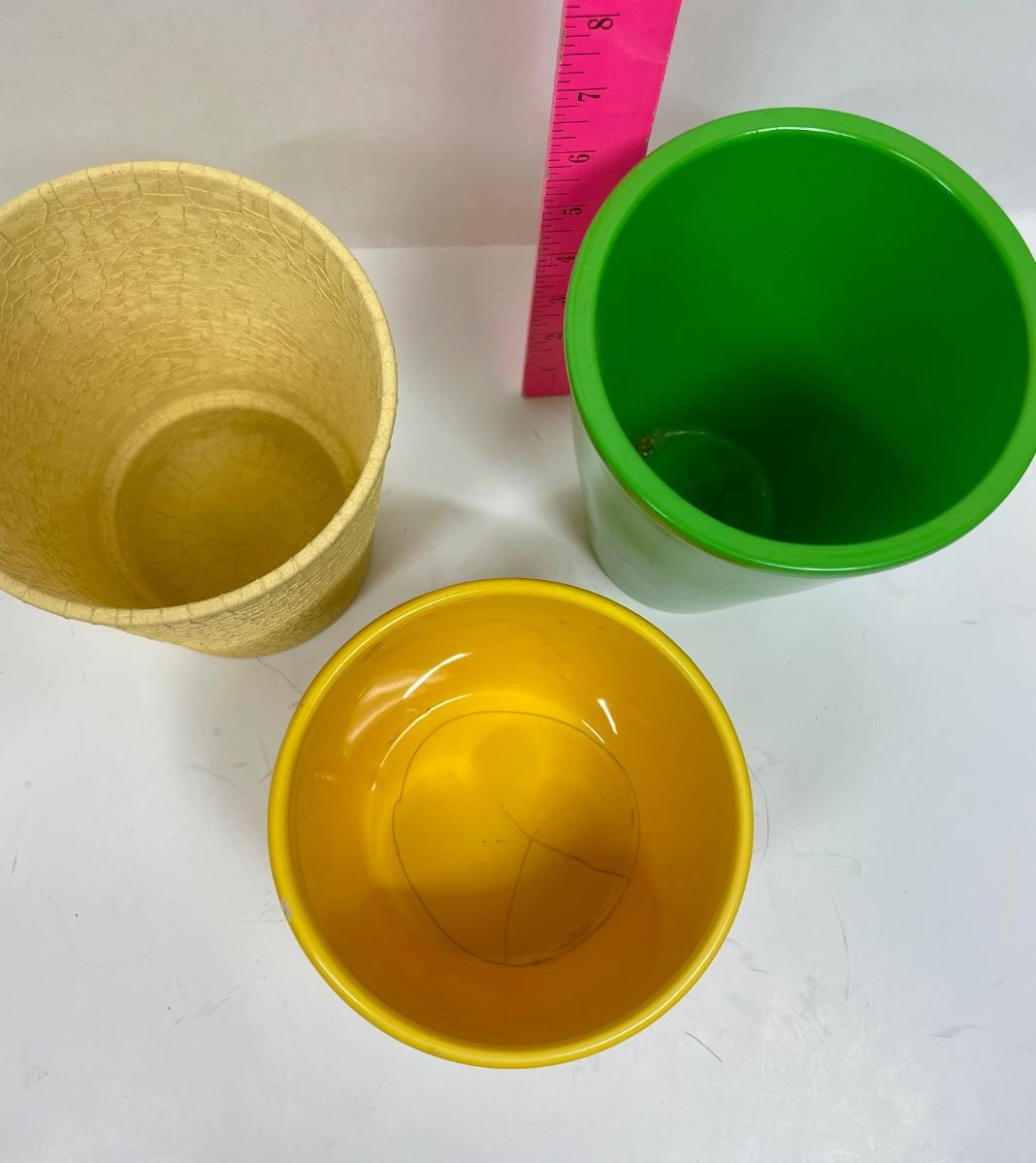 Ceramic Pot Lot - no drainage holes - 3 tall slender pots yellow green