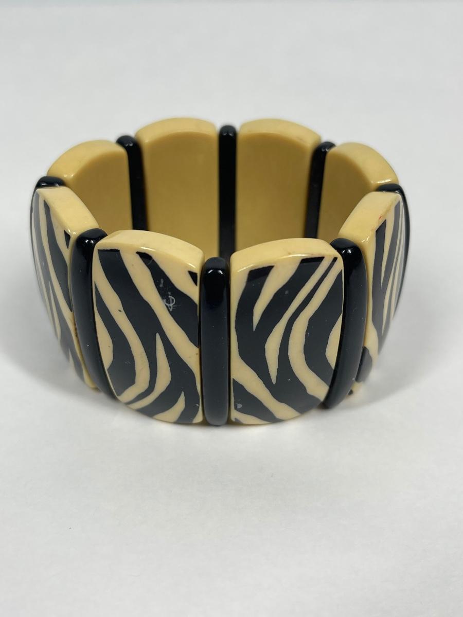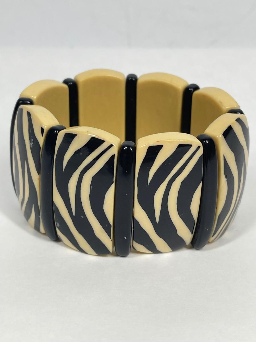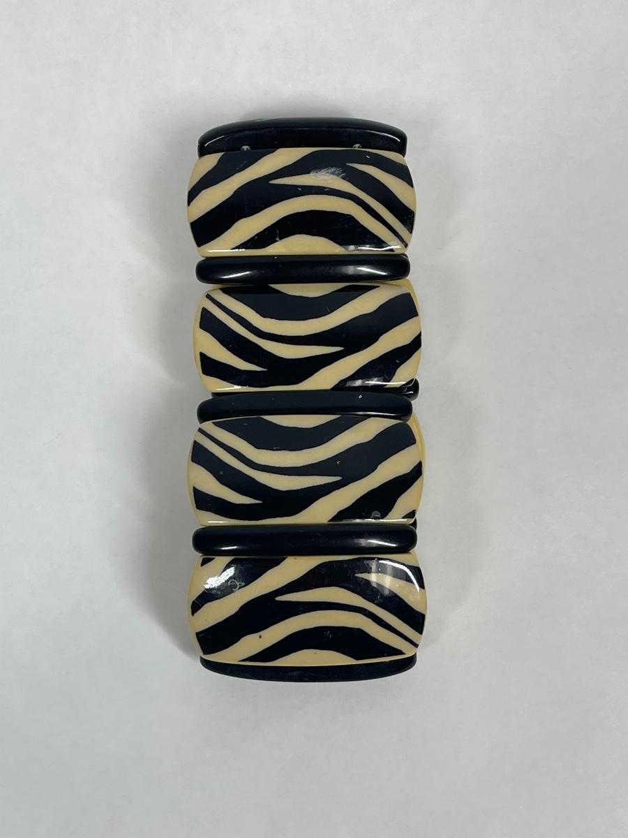 Lucite or Bakelite Plastic Stretch Bangle Bracelet Zebra Print design
