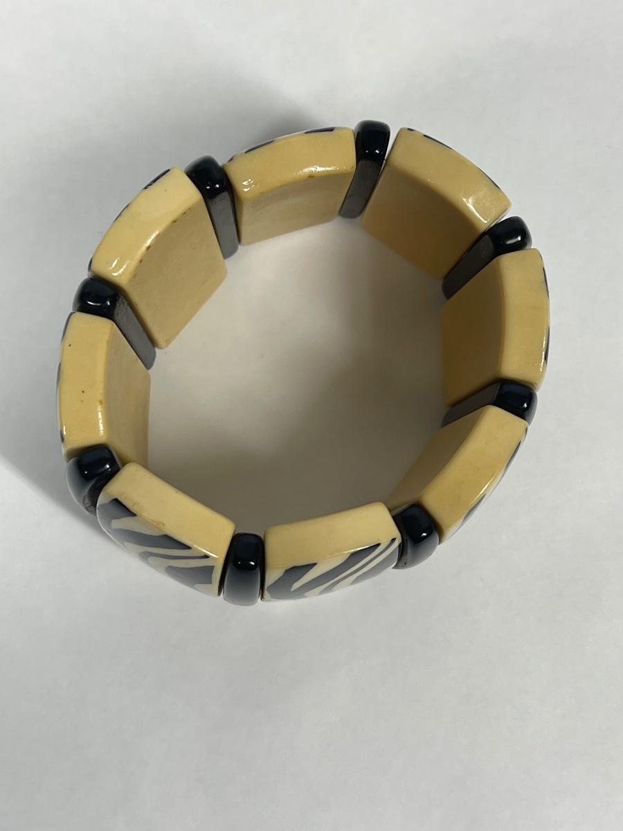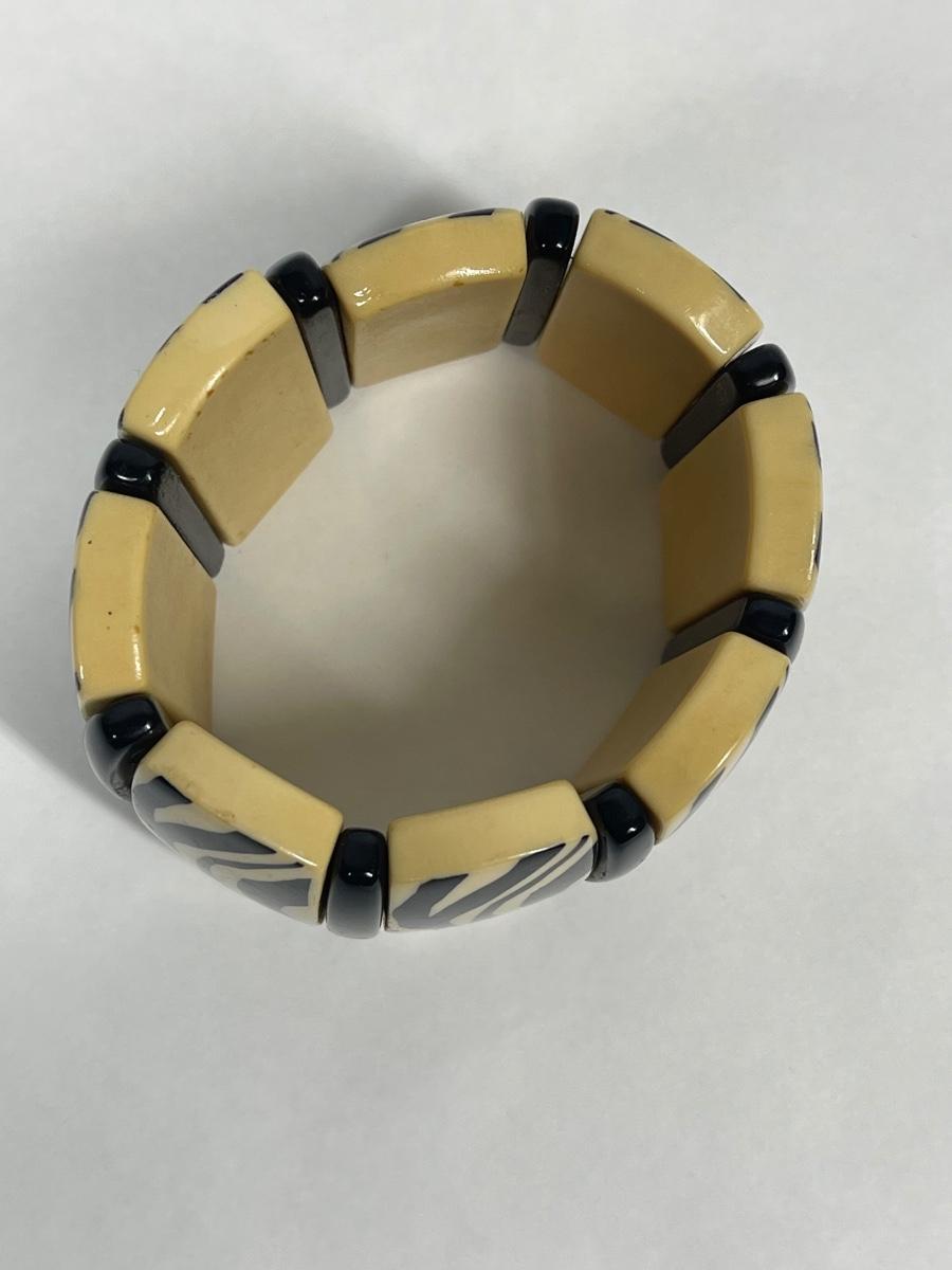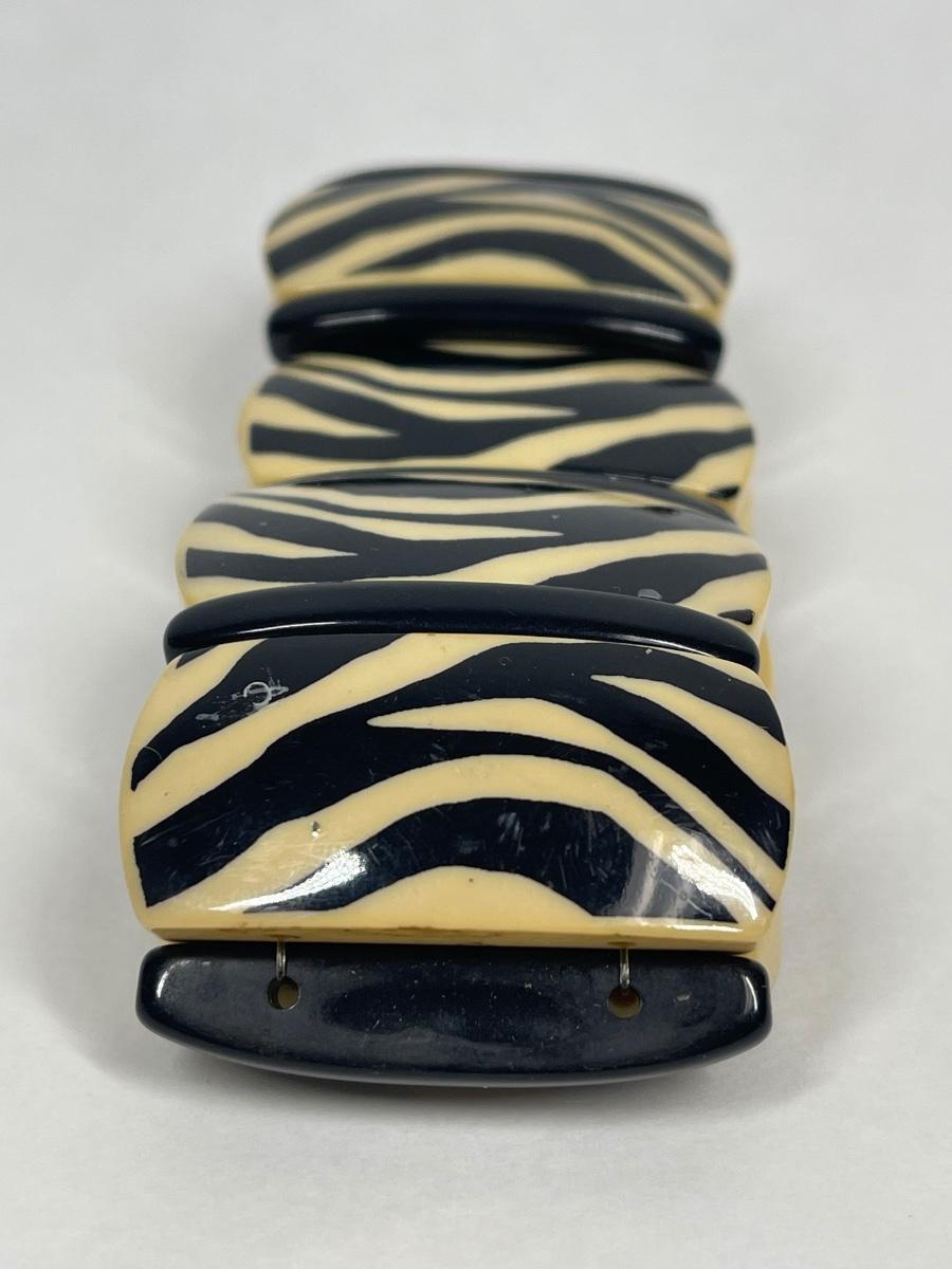 Lucite or Bakelite Plastic Stretch Bangle Bracelet Zebra Print design