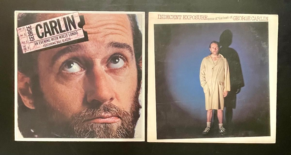2 comedy albums from George Carlin: "George Carlin - An Evening with Wally London Featuring Bill Slaszo" (1975) and "Indecent Exposure" (1978). Both in good condition.