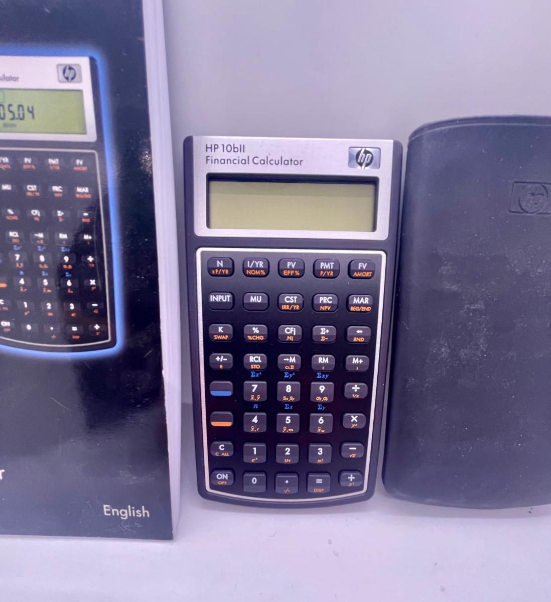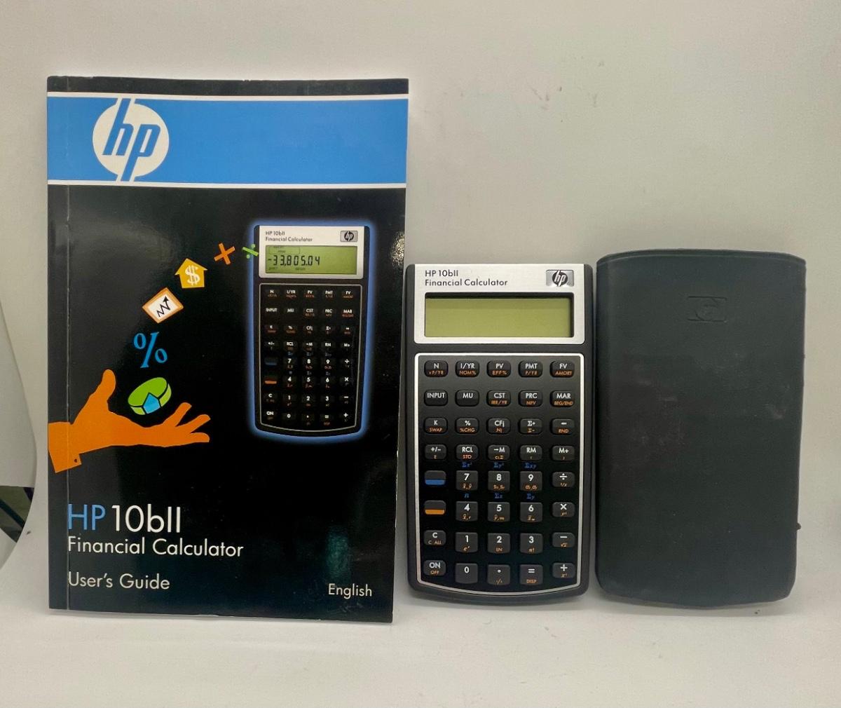 HP 2716570 10bII+ Financial Calculator, 12-Digit LCD. Tested, works as expected. Includes slip-on vinyl soft case and User's Guide book. Over 100 built-in functions including probability distributions. Intuitive keyboard layout with minimal keystrokes required for many common functions. Easy-to-read display with adjustable contrast and on-screen labels. Permitted for use on SAT, PSAT/NMSQT and College Board AP tests.