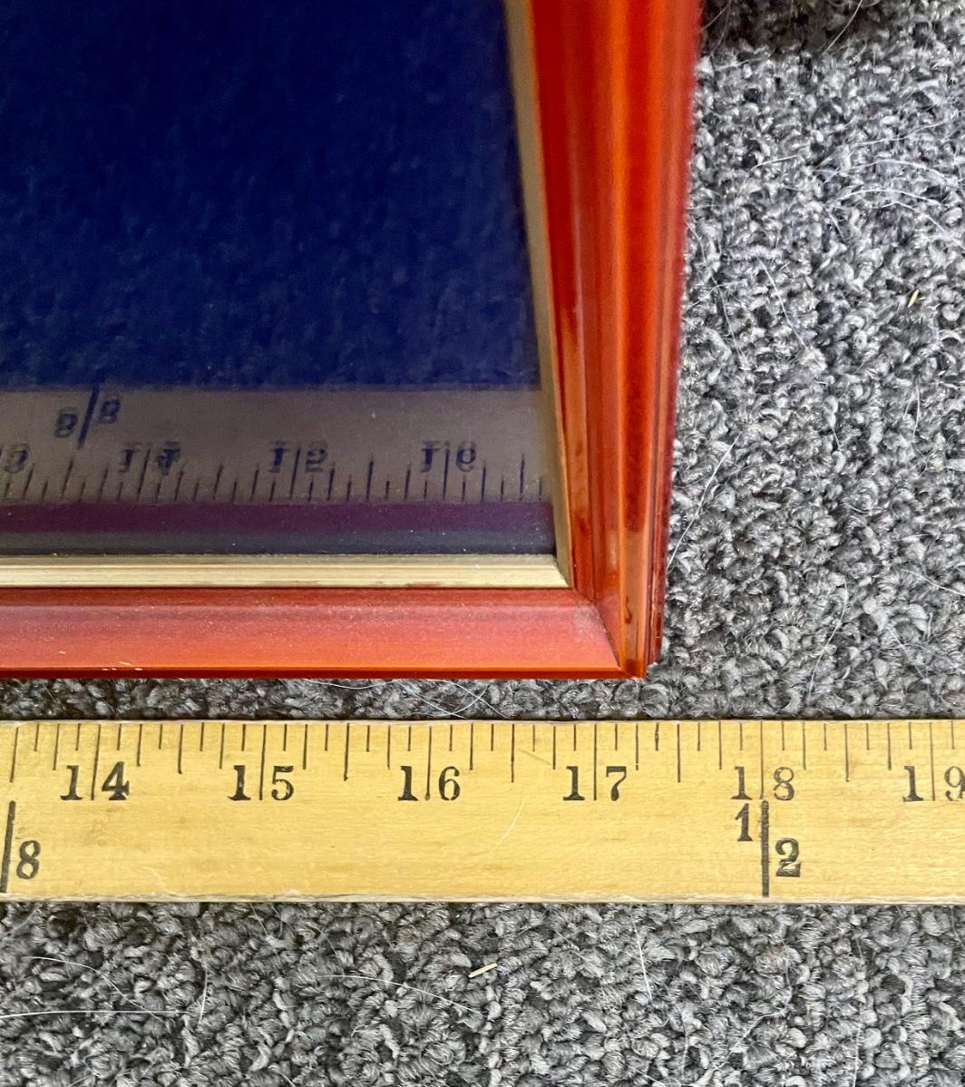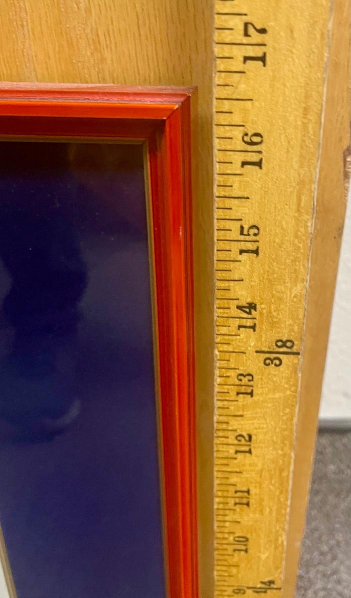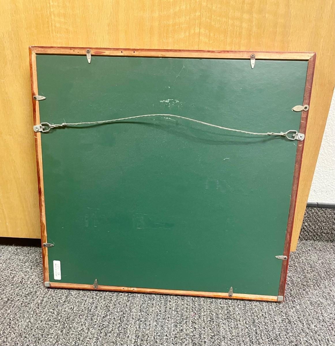 Good condition, striking black and red frame. Approx. 18" x 16".