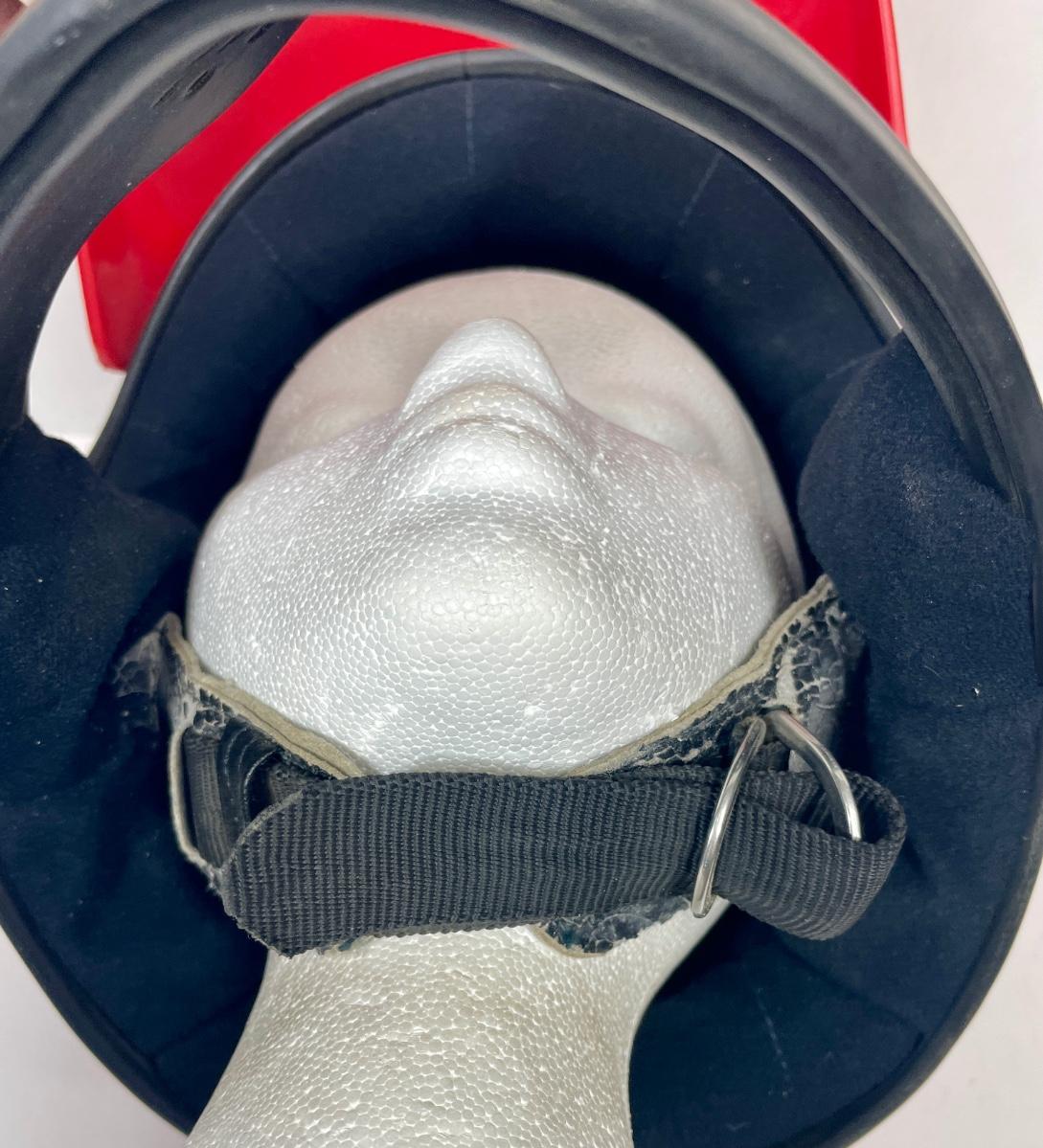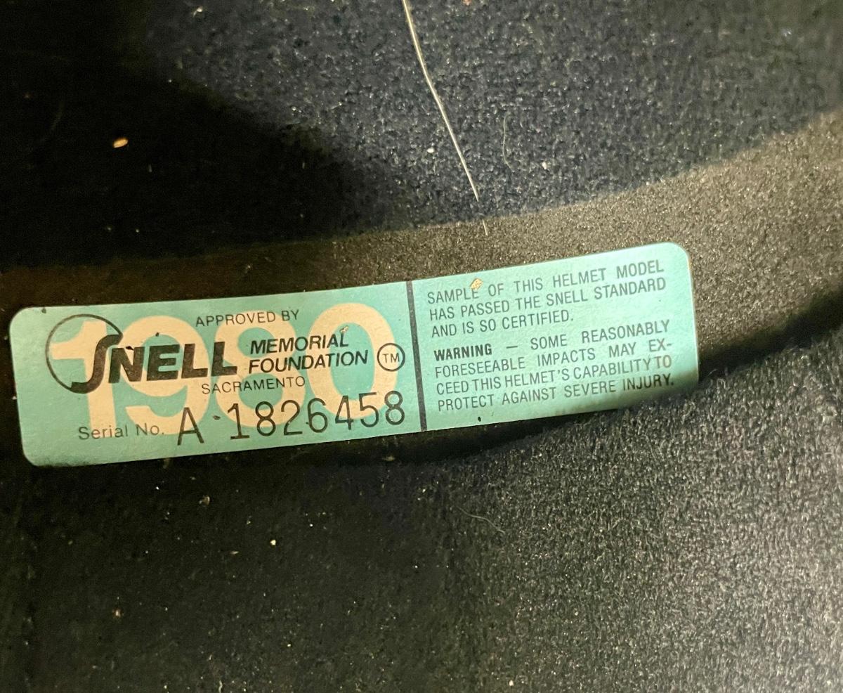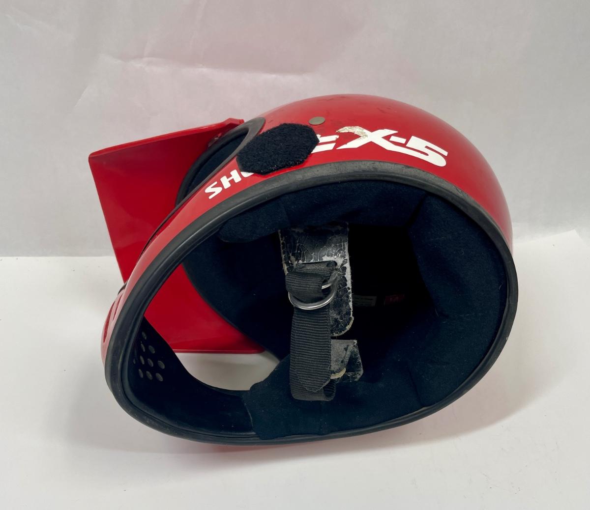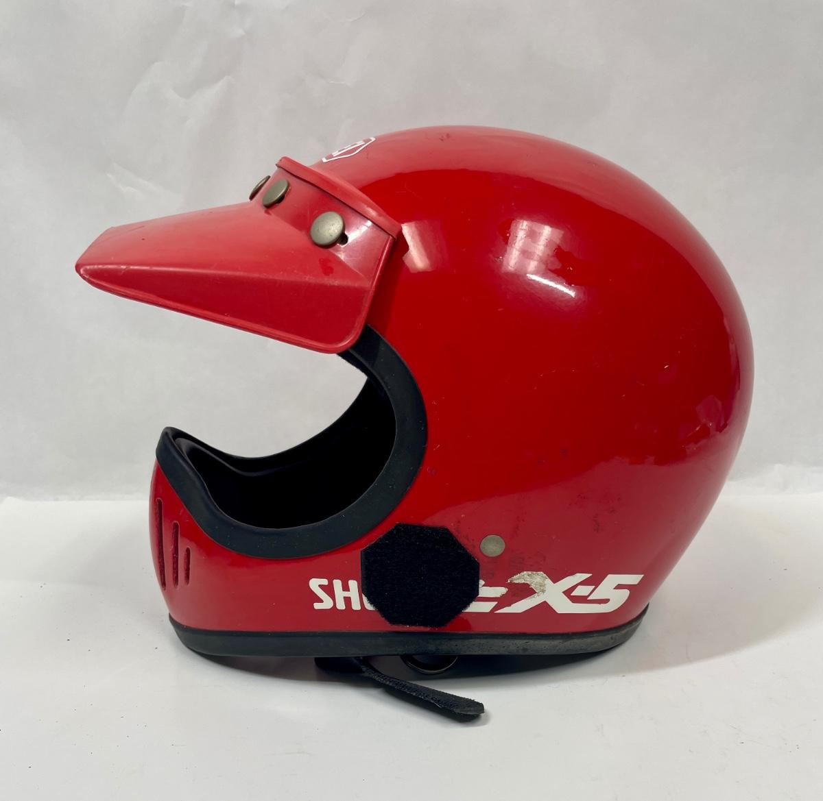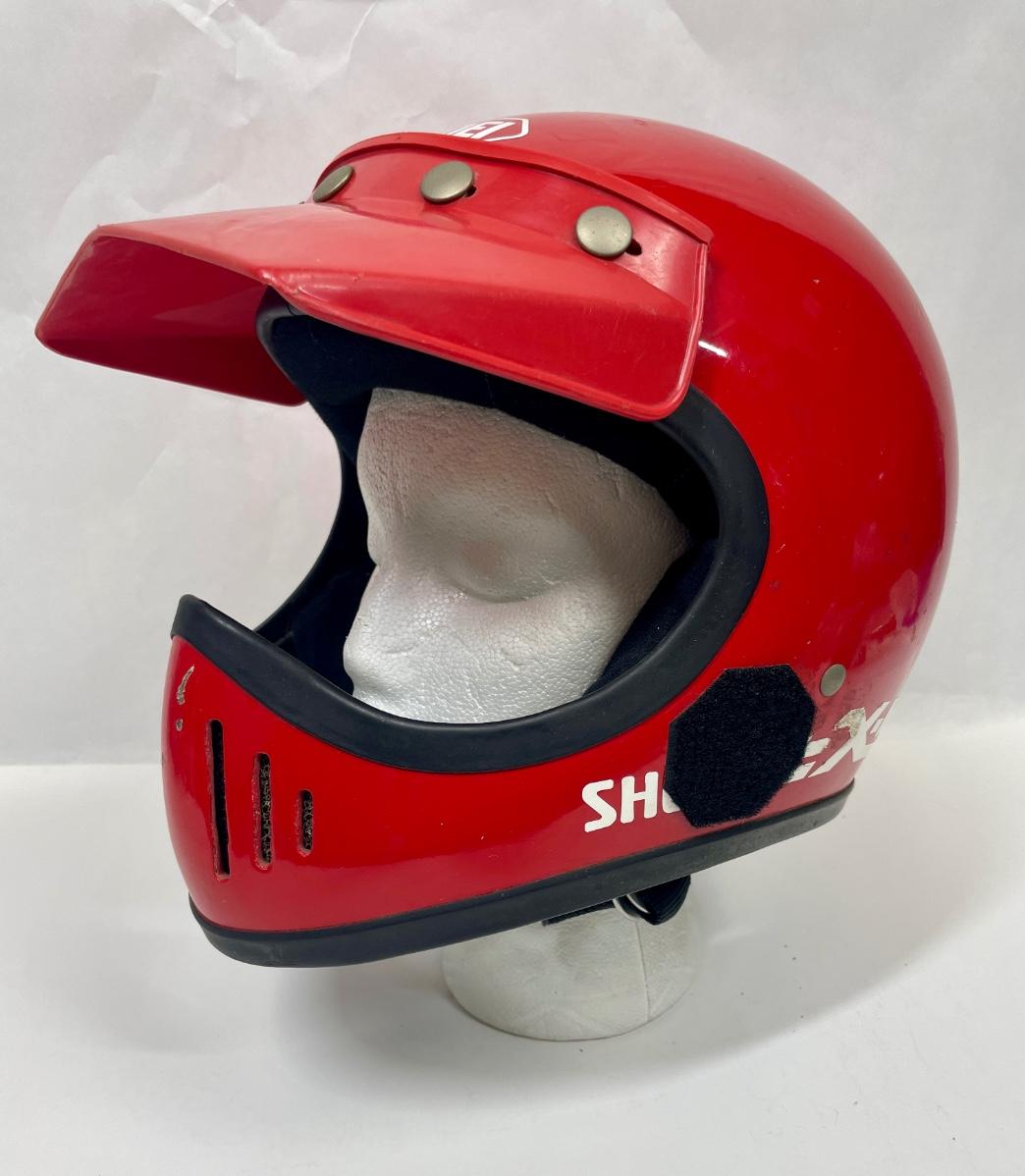 Bright Red. Size Medium (7 1/8 - 7 1/4). Produced in 1984. Good overall condition, some chips in the outer shell from flying sand/rocks. Snap-on plastic sun visor. Chin strap and liner in good condition, see photos.