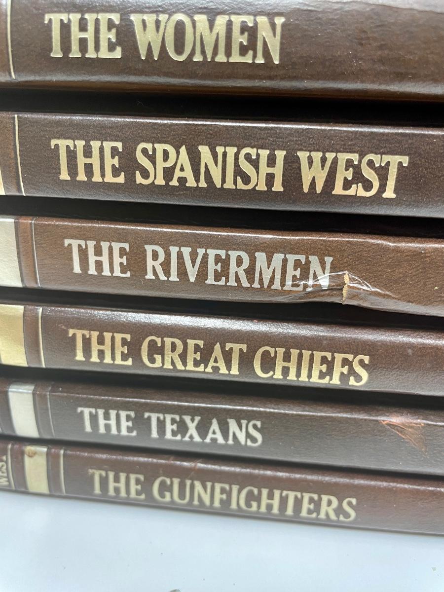 Vintage collection of books that chronicles the west and those who were a part of it. Does not include the Master Index. Titles include: The Gamblers, The Gunfighters, The Loggers, The Great Chiefs, and many more. Outstanding collection of photographs, maps and drawings. Printed between 1973 and 1980. Set is in excellent condition, except for 1 volume (The Rivermen, see photos) that has a ding in the spine, but this did not otherwise affect the book. Note: we will ship via media mail if requested, but the full set weighs over 55 pounds so it could be pricy depending on the distance.