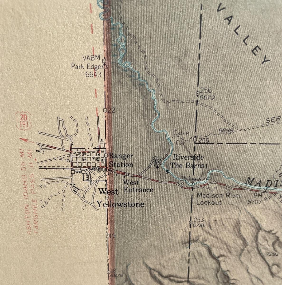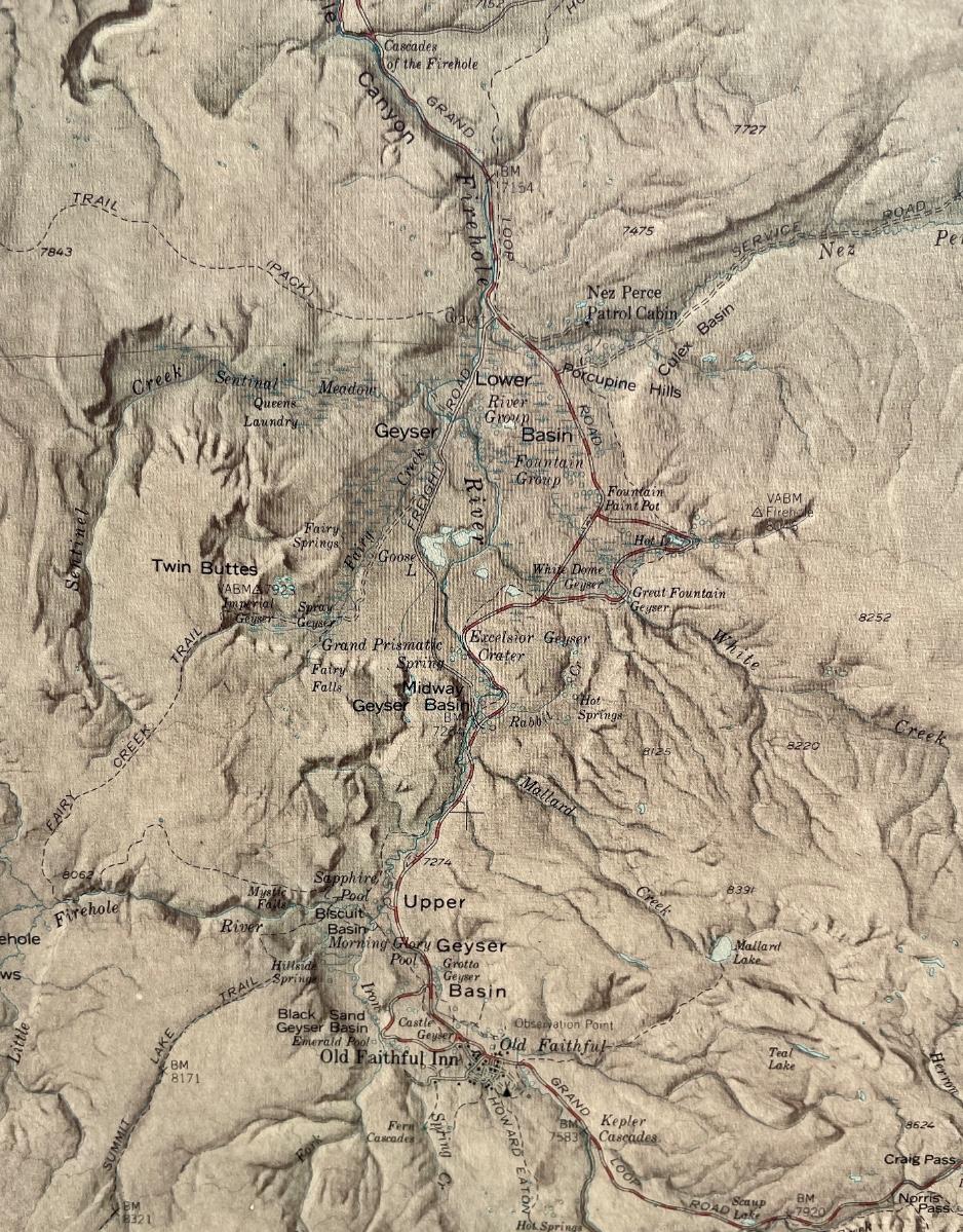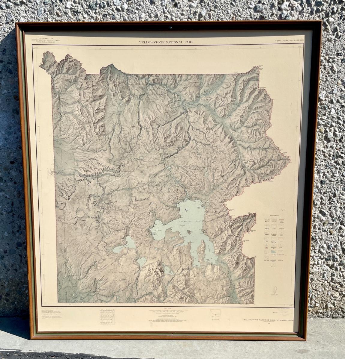 Framed Vintage Multi-Color Map of Yellowstone National Park