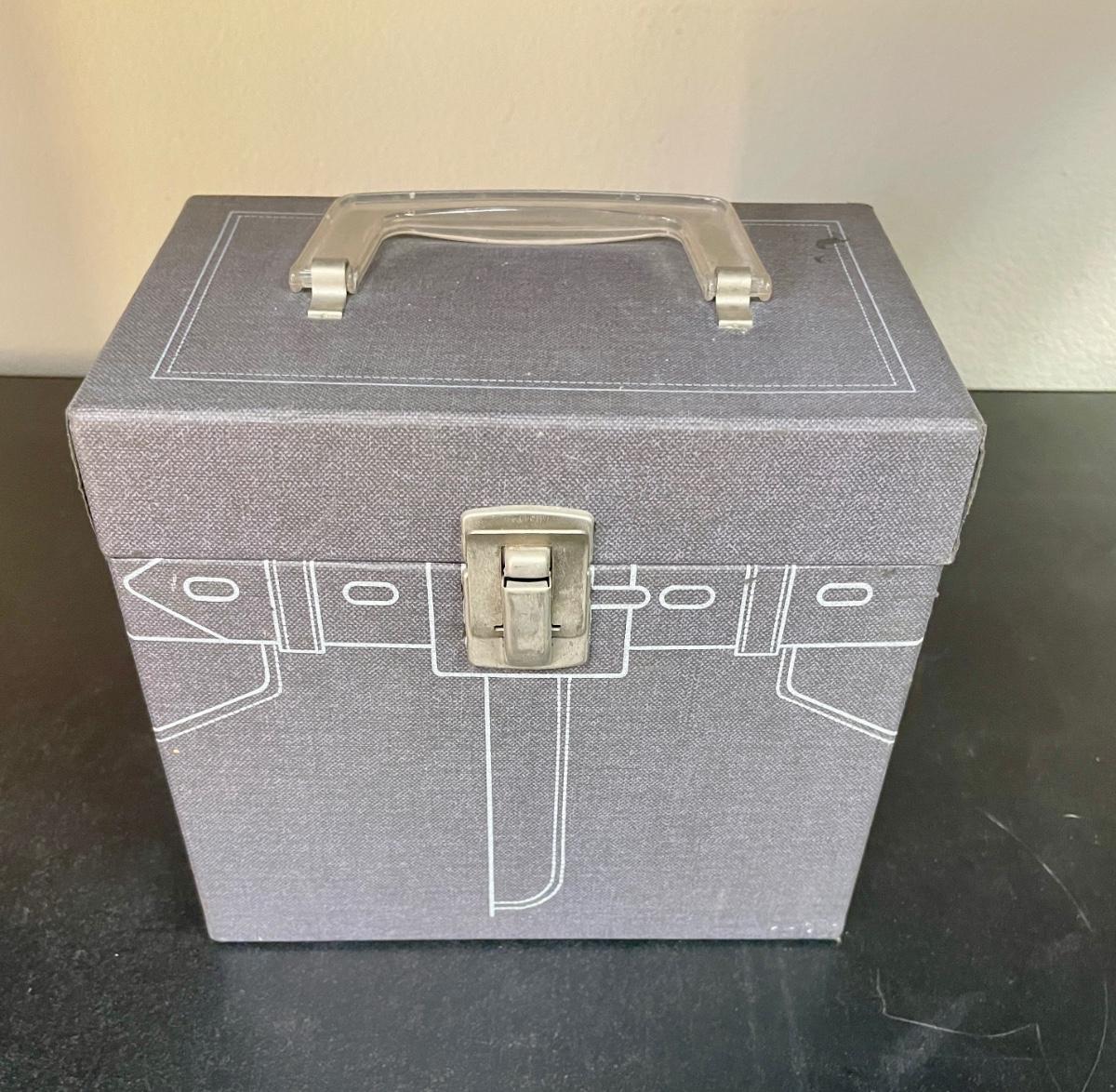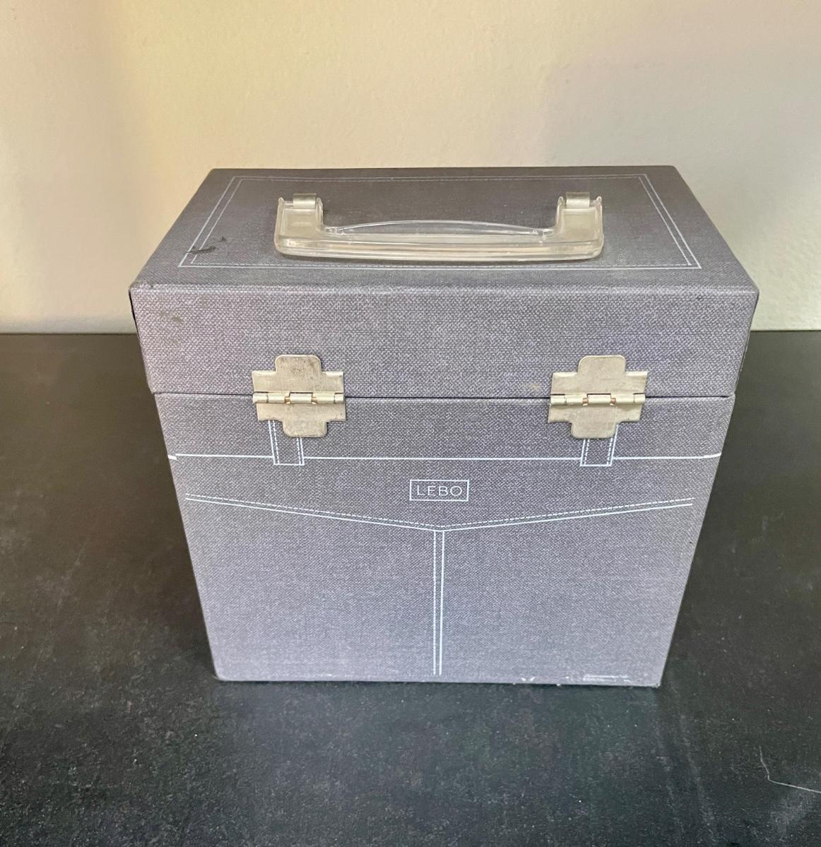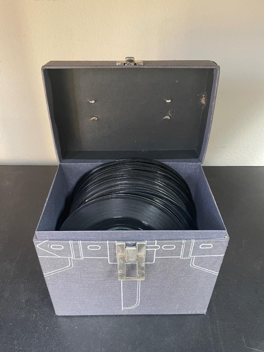 Vintage 45RPM Lebo Denim Blue Record Storage Carry Case with 46 Records