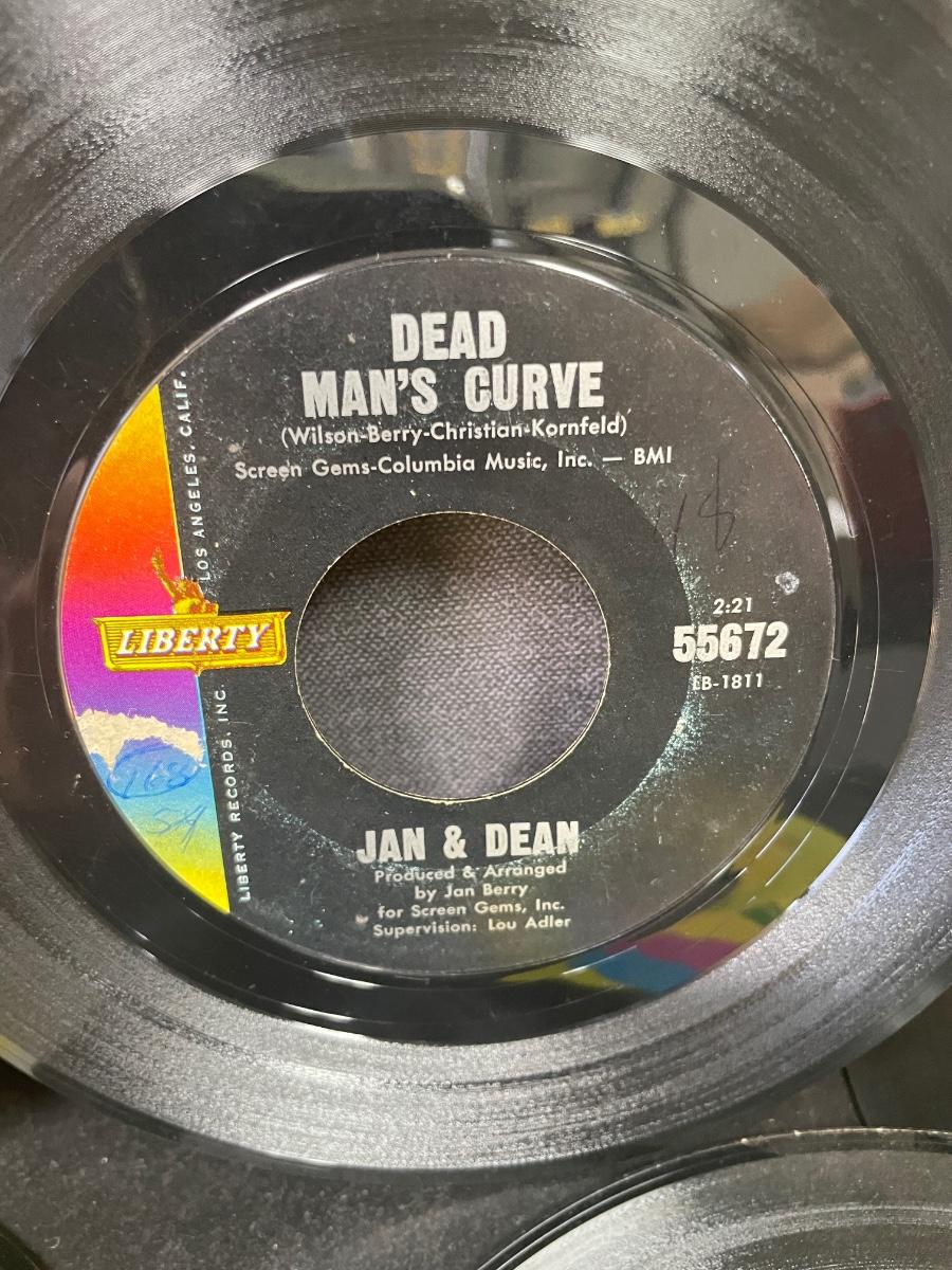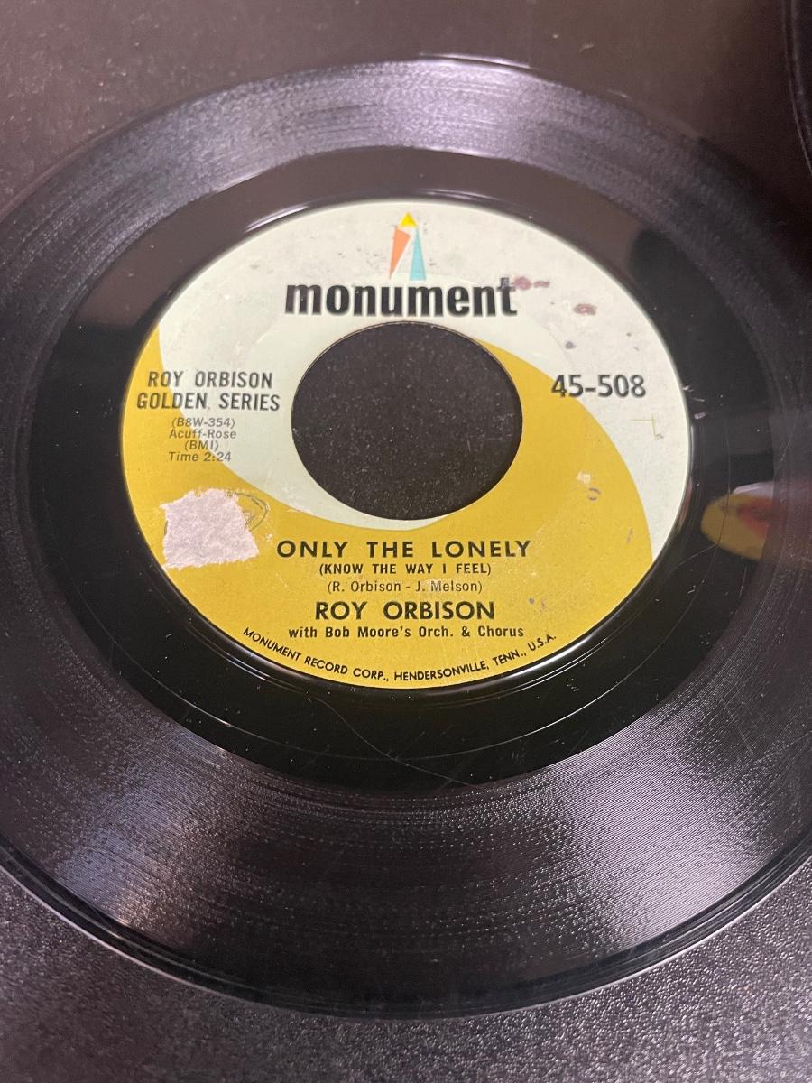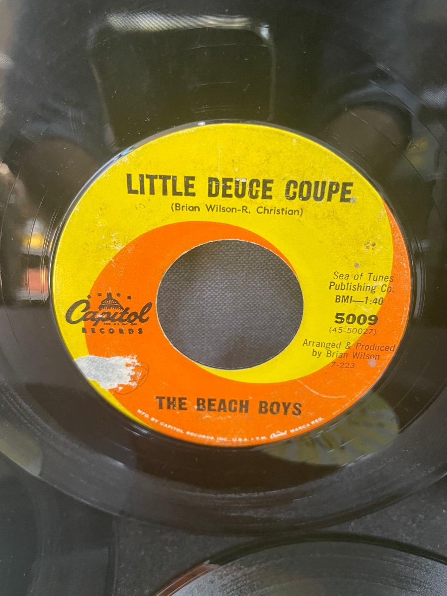 Lebo Denim Blue case is in good condition. Records are in good to fair condition. Examples of records includes: "Only the Lonely" by Roy Orbison on Monument Records, "Little Deuce Coupe" by The Beach Boys on Capitol Records, "(I Can't Get No) Satisfaction" by The Rolling Stones on London Records, "Dead Man's Curve" by Jan & Dean on Liberty Records, "Sweet Caroline" by Neil Diamond on UNI Records, and "The Lion Sleeps Tonight" by the Tokens on RCA Records.