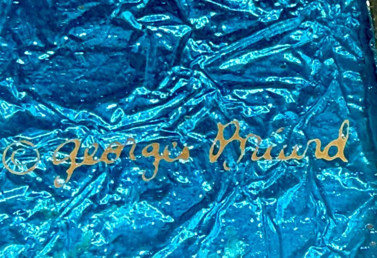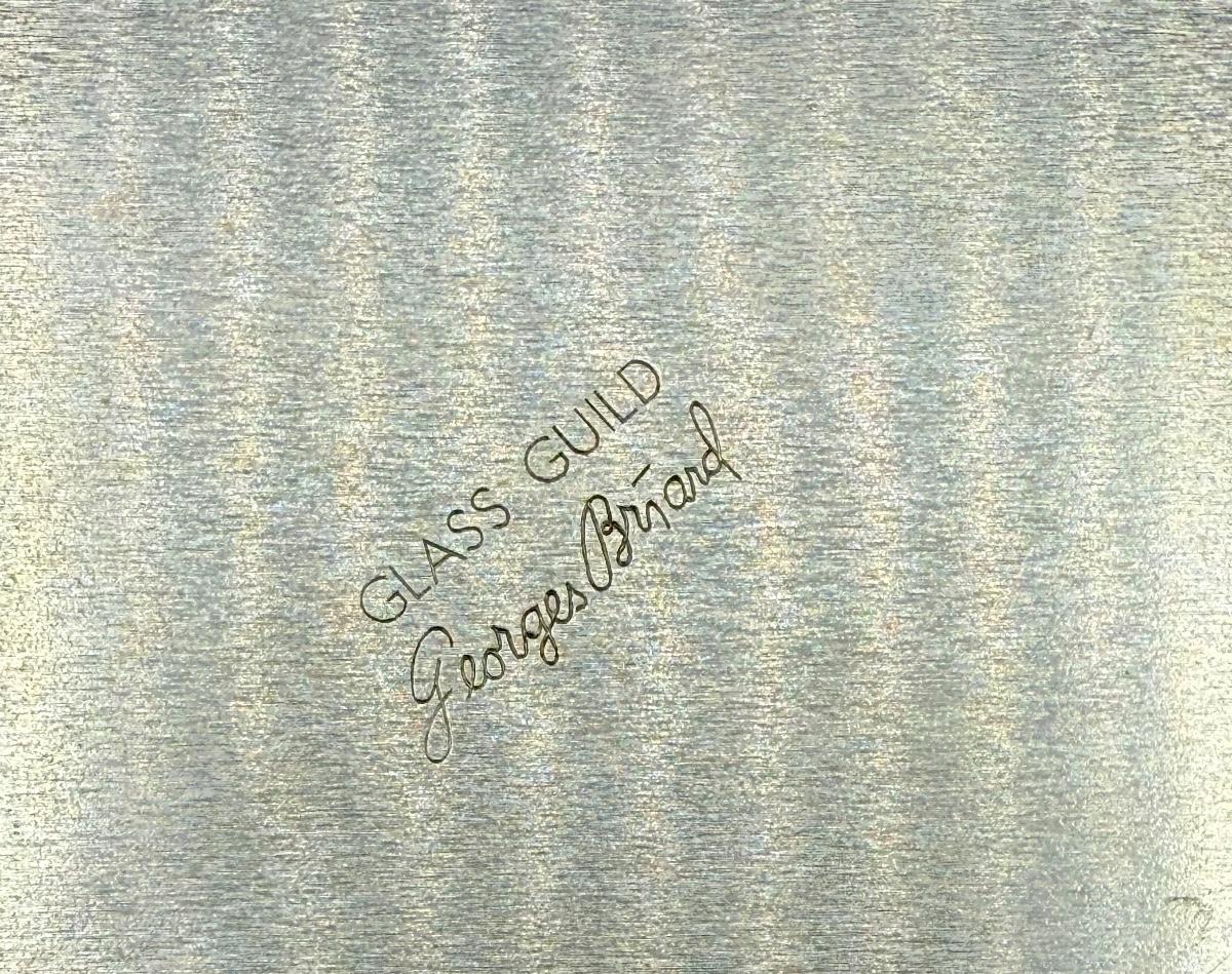Stained glass dish is beautiful. Georges Briard - Stained glass blues and greens, signed in gold script on the from and etched into back.
